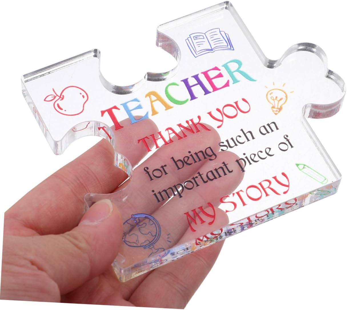 Scelta versatile: ideale per la giornata dell'insegnante, la scelta della laurea e altre occasioni speciali, rendendolo un premuroso e memorabile per gli educatori, fermacarte di apprezzamento dell'insegnante, puzzle di apprezzamento dell'insegnante Decorazioni per la casa/ufficio: queste graziose e trasparenti decorazioni esaltano la bellezza della tua casa o del tuo ufficio, fondendosi perfettamente con libri, piante, orologi, calendari e altri oggetti decorativi, targa di ringraziamento per insegnanti, puzzle per insegnanti con blocchi in acrilico Stampa chiara e attraente: la stampa acrilica su questi blocchi acrilici assicura che il messaggio sia chiaro e visivamente accattivante, rendendolo un pezzo eccezionale, targa acrilica per insegnanti, di puzzle per insegnanti Materiale acrilico: realizzati in acrilico, questi puzzle presentano una superficie liscia, un design leggero e sono costruiti per durare, blocchi di ringraziamento per l'insegnante, puzzle dell'insegnante Materiale acrilico: realizzati in acrilico, questi puzzle offrono una superficie liscia, un design leggero e una durata eccezionale, targa puzzle per insegnanti, blocco per studenti e insegnanti