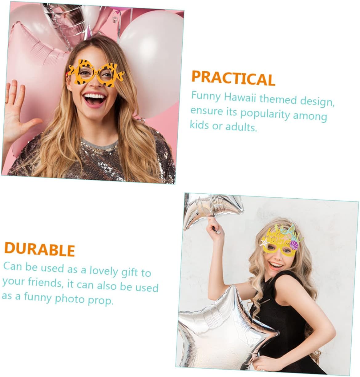 Oggetti di scena per feste: possono essere usati come un grazioso per i tuoi amici, possono anche essere usati come divertenti oggetti di scena per foto, occhiali di scena Articoli per feste: questo prodotto è di ottima fattura, pratico e durevole, occhiali per festival Occhiali da festa: questo prodotto è progettato per essere leggero e portatile, facile da usare e riporre, accessori per foto per feste Accessorio per feste: design divertente a tema hawaiano, che garantisce la popolarità tra bambini e adulti, accessori per foto Occhiali da festa hawaiani: un pratico accessorio per feste che ti donerà un aspetto unico e divertente con un design a tema hawaiiano, molto alla moda e accessori per costumi.