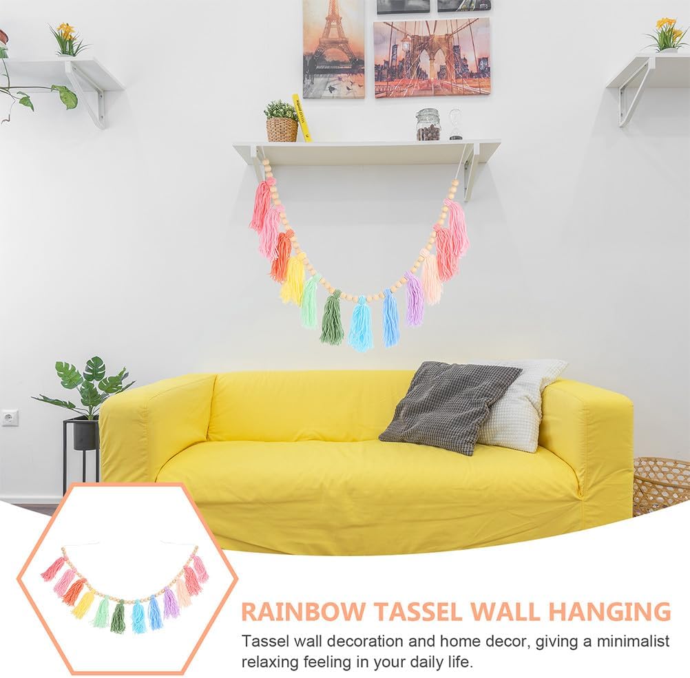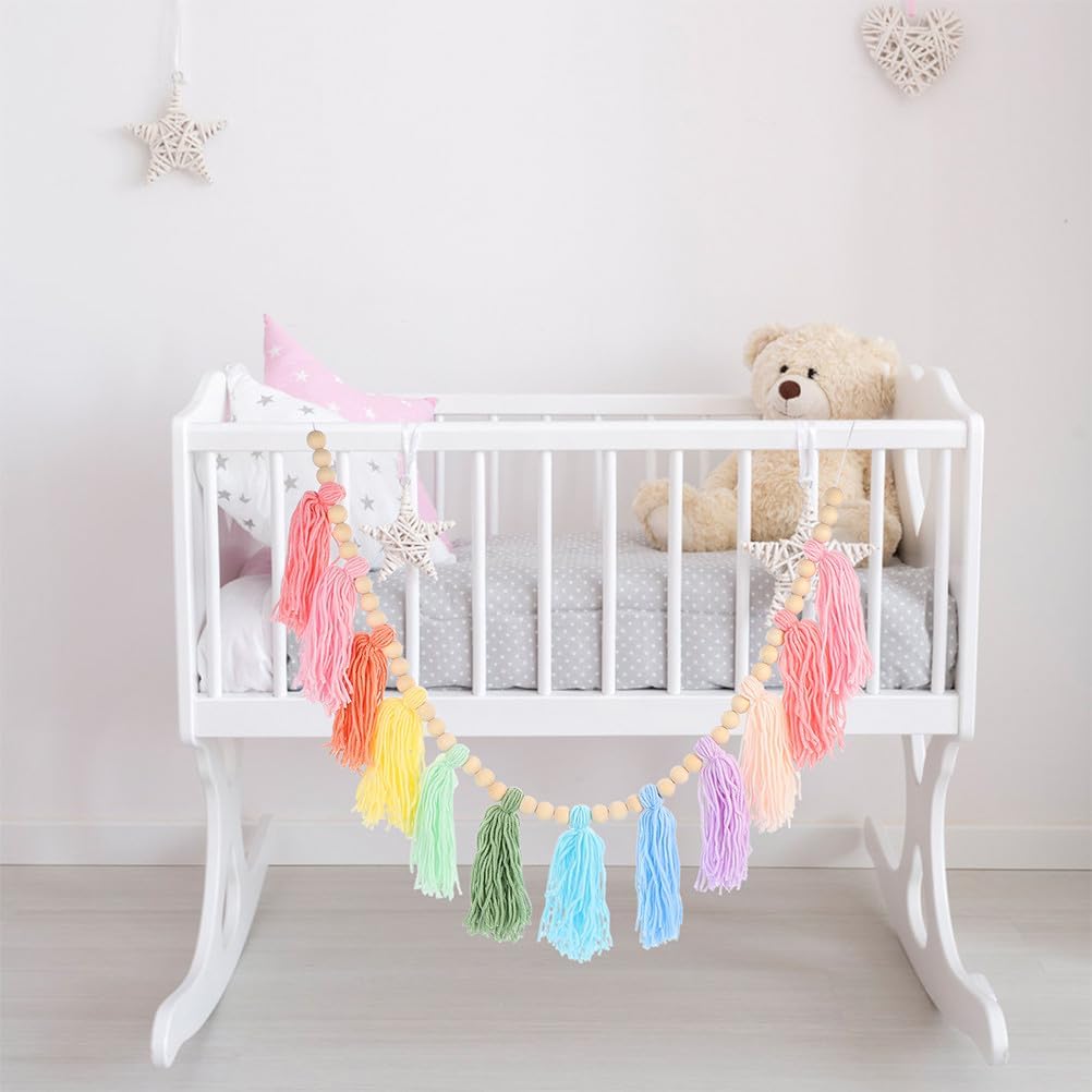 Incantevole accento da parete: questa ghirlanda funge da bellissimo accento da parete, combinando perline di legno pastello e nappe per un tocco decorativo unico Ispirazione arcobaleno: le nappe arcobaleno colorate aggiungono un elemento capriccioso e allegro, adatto per le stanze dei bambini o spazi giocosi Materiali naturali: realizzata con perline di legno naturale e nappe di cotone morbido, questa ghirlanda è elegante e decorativa Rifacimento rapido della stanza: appendere facilmente questa ghirlanda per rinnovare l'aspetto della tua stanza senza bisogno di ridecorazione o strumenti Ideale per tutti gli spazi: sia per un asilo nido, un soggiorno o uno sfondo per feste, questa ghirlanda completa una varietà di stili e temi interni