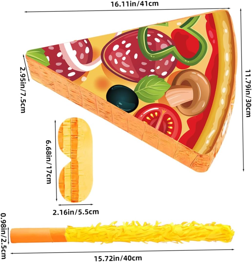 Applicazione: adatta per feste di compleanno, eventi a tema o come pezzo decorativo nella tua casa, questa pignata offre opzioni di utilizzo versatili, pignata cinque maggio, decorazione per feste di pizza coriandoli Adatto per celebrazioni: che si tratti di un compleanno, un cinque maggio o uno scolaro, questa pinata è una festa e giocosa a qualsiasi riunione, decorazione per pizza cinque maggio, decorazione per feste di cibo Design del porto: una comoda apertura per aggiungere dolci, coriandoli o giocattoli, che rende piacevole per gli ospiti della festa, giochi di festa della pizza, decorazione di coriandoli di fetta di pizza Set completo: include una benda per gli occhi e un bastone, che un ulteriore di emozione per i turni per cercare di rompere la pinata, pignata 3D con bastone, decorazione per feste di cibo Accessorio fotografico: usa questa pignata come accessorio fotografico per catturare il divertimento e durante la tua festa o come decorazione a tema cibo, giochi di festa a tema pasto
