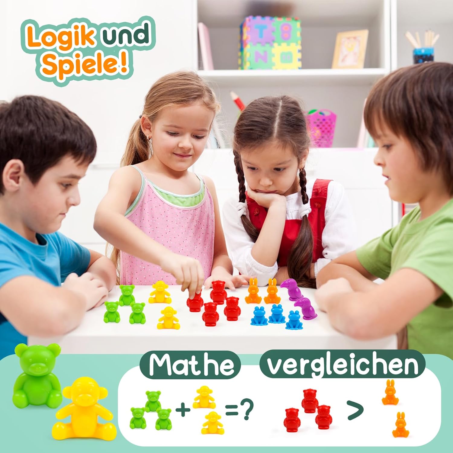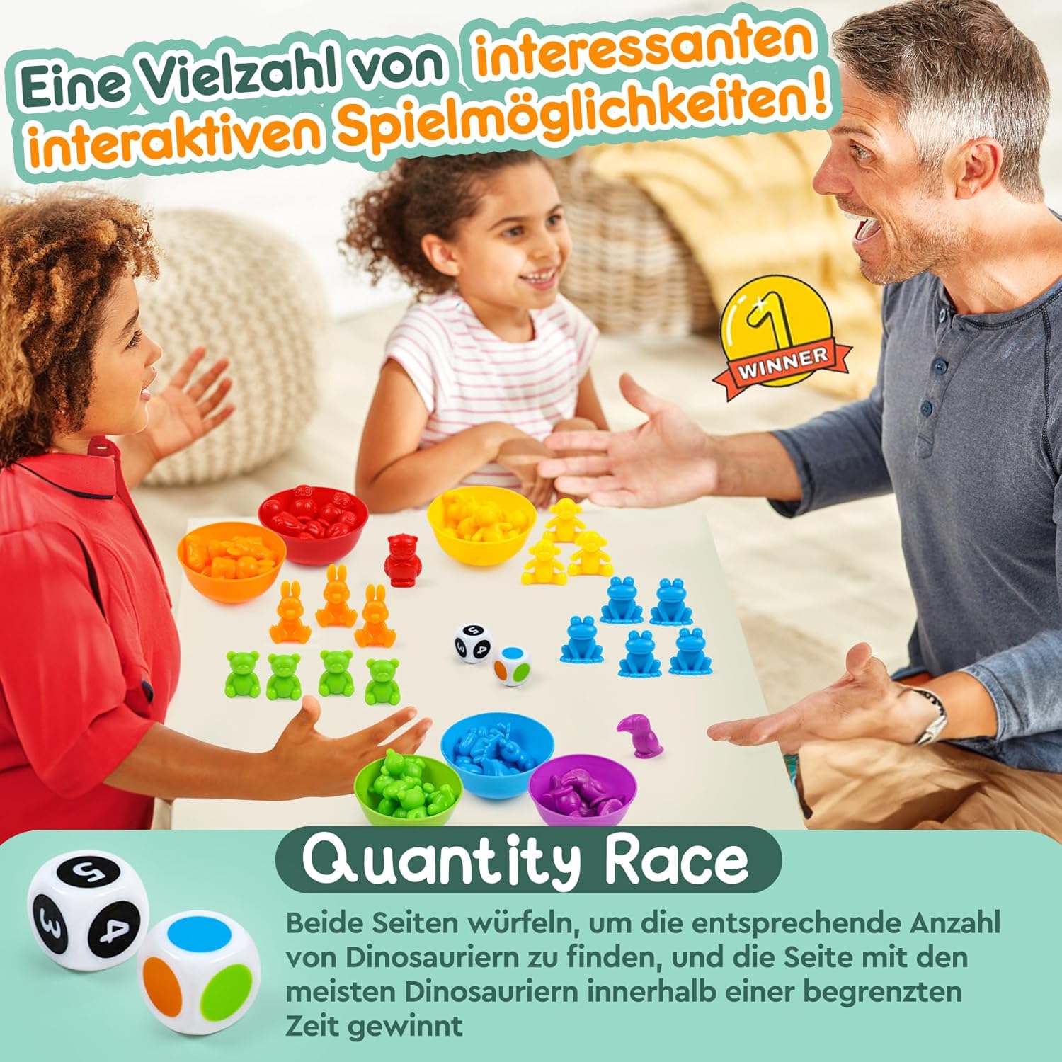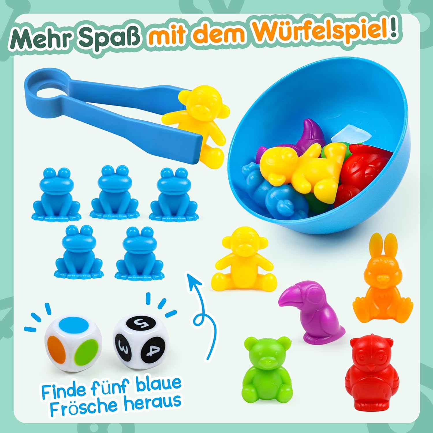 ANIMALI CLASSIFICATI PER COLORE: la nostra collezione di giocattoli comprende sei animali colorati. Ogni animale rappresenta un colore diverso e aiuta i bambini nel riconoscimento dei colori e nell'apprendimento. Questo set contiene sei ciotole giocattolo, ciascuna corrispondente a uno dei sei colori degli animali. I bambini possono ordinare gli animali per colore e metterli nelle ciotole corrispondenti per sviluppare il pensiero logico e la coordinazione. GIOCATTOLI MONTESSORI: Giocando con i giocattoli classificati per colore, i bambini non solo possono divertirsi ma anche sviluppare le loro capacità cognitive. Impari a riconoscere, ordinare e confrontare i colori, il che migliora la tua percezione e comprensione dei colori. IMPARA LE ABILITÀ MOTORIE FINE: per rendere il gioco ancora più interattivo, nel set sono incluse due pinzette. Con le pinzette i bambini possono afferrare i dinosauri e metterli nella ciotola giusta. Ciò promuove le capacità motorie e la coordinazione occhio-mano. MATERIALI DI ALTA QUALITÀ: I nostri giocattoli montessori dai 3 anni in su sono realizzati in plastica atossica e di alta qualità. Sono sicuri e durevoli in modo che i bambini possano goderseli a lungo. I giocattoli sono facili da pulire e possono essere utilizzati sia all'interno che all'esterno. REGALO PERFETTO: questo giocattolo montessori è ideale per i bambini in età prescolare per migliorare il riconoscimento dei colori e le capacità motorie in modo giocoso. Ordina oggi e rendi l'apprendimento colorato ed emozionante!