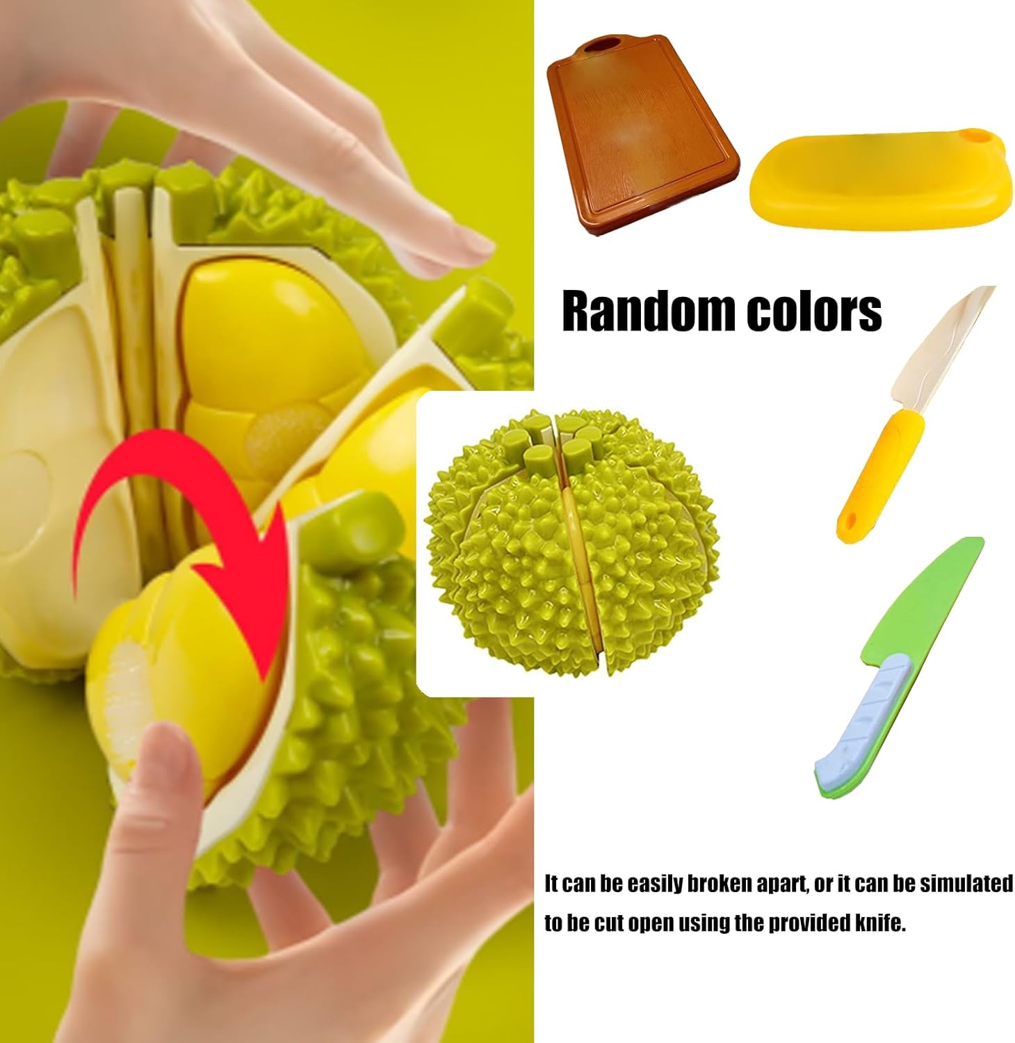 Ideale per cucine domestiche, dimostrazioni in classe o interazioni di gioco, il giocattolo multiuso incoraggia la narrazione collaborativa e simulazioni pratiche di abilità di vita Progettato con segmenti staccabili e motivi di colori vivaci, il giocattolo vegetale offre un facile montaggio per ordinamento sicuro, impilamento e attività di gioco di ruolo fantasiose Questo realistico giocattolo da cucina a forma di durian migliora il gioco di finta con caratteristiche di sbucciatura e affettatura, promuovendo la creatività e le abilità motorie nei bambini dai 3 anni in su attraverso il gioco educativo interattivo Perfetto per bambini in età prescolare e asili che amano imparare le mani, questo giocattolo di smistamento stimola lo sviluppo cognitivo mentre insegna il riconoscimento alimentare e la cooperazione sociale La sua costruzione sicura per i bambini soddisfa gli standard internazionali dei giocattoli, mentre le superfici ruvide e il colore contrastante ispirano l'esplorazione sensoriale e le capacità di differenziazione del colore nei primi studenti