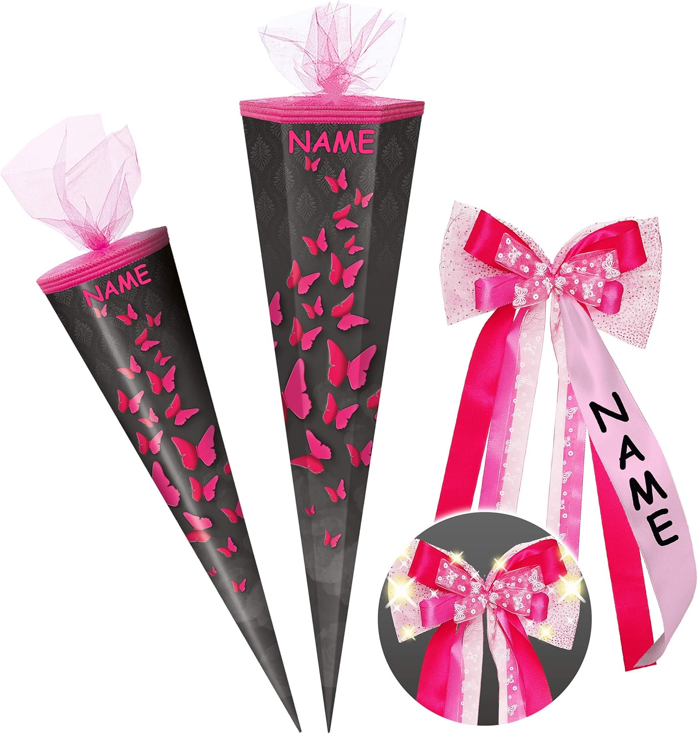 fantastico set _____ con fantastici SUONO ed effetti di rumore! ____ (quando si preme un pulsante si sentono i tipici rumori dei cavalli e dei nitriti - per un certo tempo)!! __ stabile e di alta qualità - cono scolastico - lungo 70 cm - con polsino in organza e tulle - forma: ROTONDO ___ motivo: "Cavallo - Horse Club" + 5 coni scolastici extra in un colorato mix di colori da appendere o decorare Il nome verrà inviato - AUTOMATICAMENTE entro 4 ore - per favore NON inviare un messaggio in anticipo ___ made in Germany! __ Materiale: cartone rivestito e di alta qualità - SUPER stabile! - idrorepellente! __ fantastici colori di stampa!_____ OPZIONALE è disponibile una punta in plastica abbinata, trasparente e stabile da attaccare (questo rende la punta del cono scolastico molto stabile e stabile) ---- (questo articolo deve essere ordinato EXTRA al cono scolastico) come idea: un fiocco personalizzato con il vostro primo NOME DESIDERATO - aggiungete semplicemente l'articolo "Fiocco con il nome desiderato" nel carrello come extra, il nome verrà poi realizzato per abbinarlo al fiocco per abbinarlo ai coni scolastici / Sacchetti regalo ___ ci sono anche piccoli Sacchetti da 10 cm come decorazione da appendere, targhette per il nome, decorazioni per la tavola, zaini per la scuola con steli per composizioni floreali, motivi sparsi, ghirlande e articoli per feste