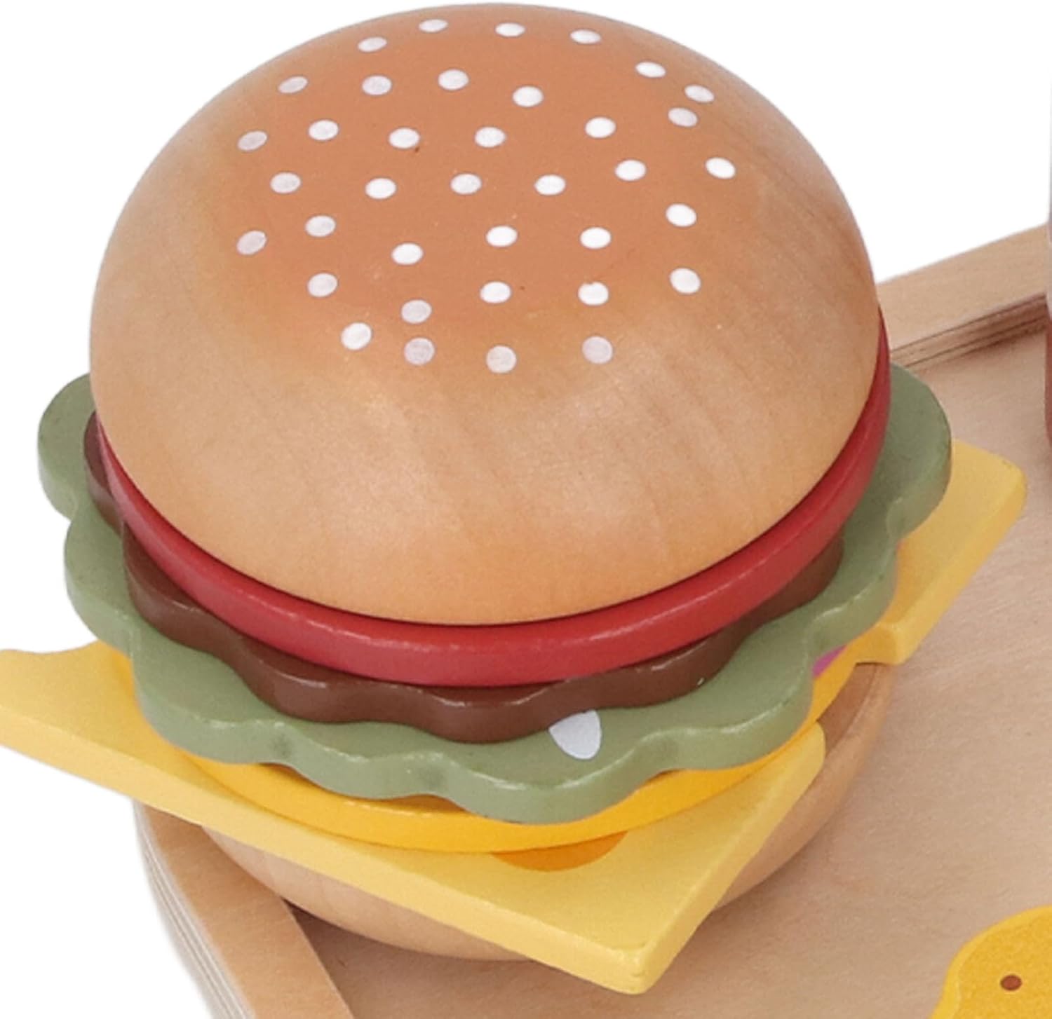 Design eccezionale: questo set di giocattoli per bambini per bambini comprende un vassoio, 2 panini di pane, 1 tortino di manzo, lattuga, formaggio, pomodoro, cipolla, condimenti, 8 patatine fritte, un drink, 1 gamba di pollo, 2 pepite di pollo, un menu, una borsa per patatine francese, ketchup e un peperoncino. Divertimento infinito: il nostro set di giocattoli per fast food in legno è ottimo per il gioco di ruolo, le attività interne ed esterne, i giocattoli sensoriali, lo sviluppo precoce, i giocattoli per bambini e i giocattoli di apprendimento educativo per i bambini. Esperienza di apprendimento: questo set di giocattoli per hamburger di fast food offre un'esperienza di gioco e di apprendimento che promuove la coordinazione per gli occhi a mano, le capacità espressive e il pensiero fantasioso per i bambini. Gameplay coinvolgente: il nostro set di giocattoli da cucina in legno garantisce ore di divertimento immersivo, incoraggiando l'interazione di Paren Child e promuovendo la comunicazione emotiva in un ambiente giocoso. Materiali premium: realizzato con materiali sicuri, il nostro set di giocattoli per fast food è progettato per resistere a lunghe ore di gioco, garantendo un'esperienza di gioco realistica e coinvolgente per i bambini.