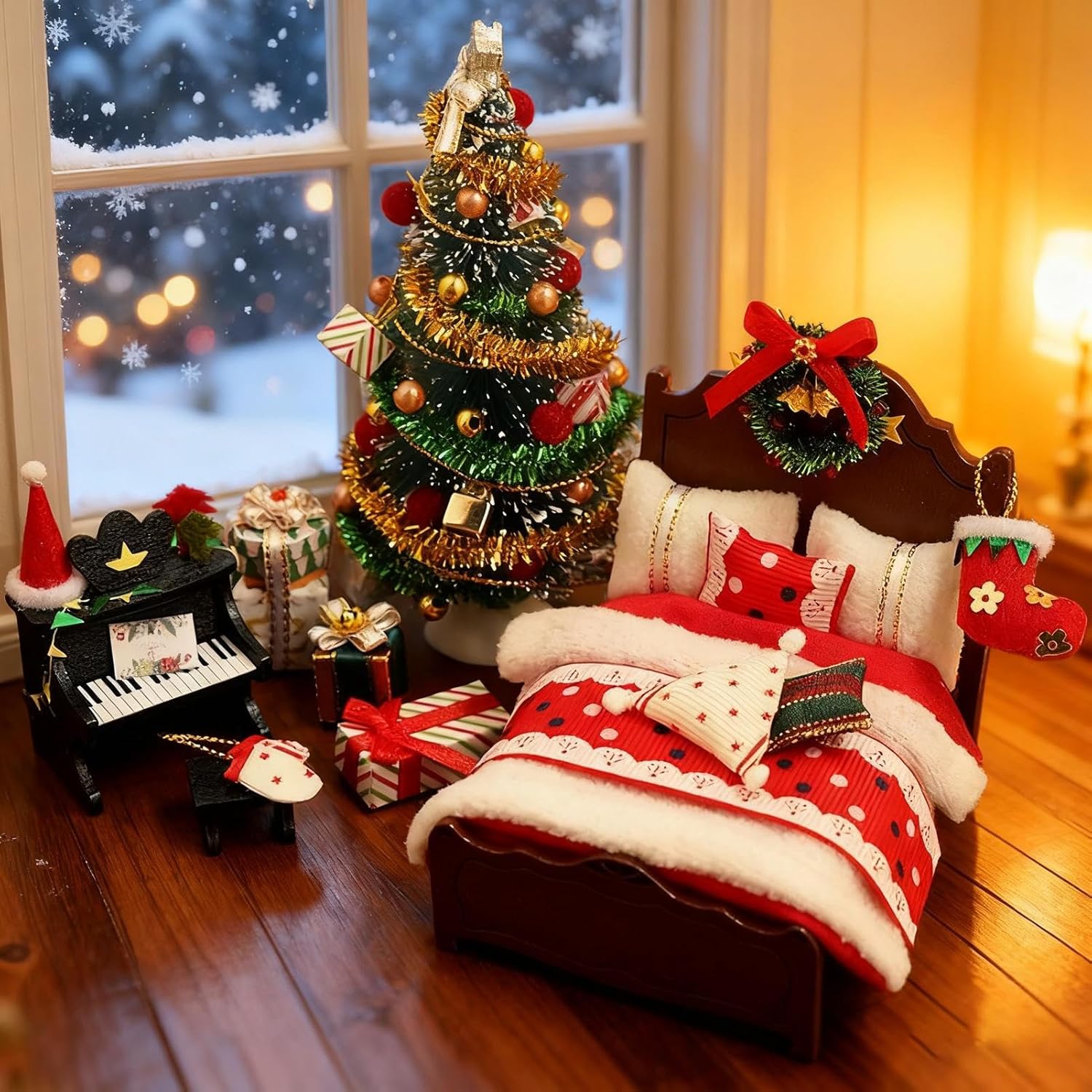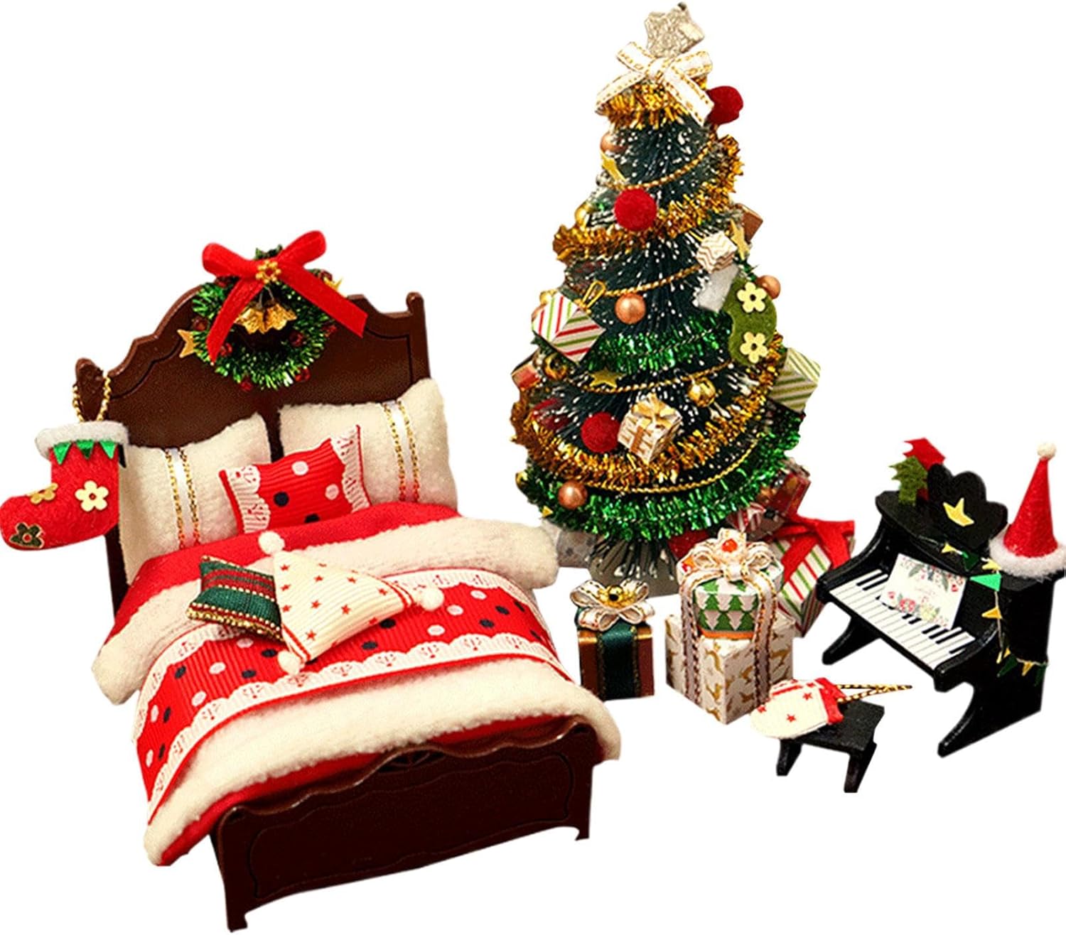Dettagli Festivi Miniaturizzati: La presenza del letto, 'albero di Natale, del pianoforte e di vari crea un ambiente coinvolgente per celebrare la stagione, promuovendo il divertimento interattivo durante le attività a tema natalizio Decorazione Incantevole per Case: I dettagli scolpiti contribuiscono a un'ambientazione natalizia profondamente romantica, permettendo di creare con facilità scene tematiche festive per case e bambine dal fascino irresistibile Semplicità d'impiego: La struttura ben organizzata e istruzioni con illustrazioni colorate garantisce una costruzione senza intoppi, creando sessioni di gioco stagionali interattive e divertenti per un'esperienza natalizia coinvolgente per i piccoli utenti Regalo Straordinario: I decorazioni natalizi casa e bambole ispirano avventure fantastiche per l'infanzia, rafforzando i legami familiari e amicali aggiungendo un tocco di allegria a ogni riunione o celebrazione Materiale Resistente: Gli e i mobili per case e bambole natalizi sono realizzati con materiali robusti che prevengono e deformazioni, ideali per un uso ripetuto in scenari creativi a tema festivo, favorendo un divertimento senza preoccupazioni durante il gioco simbolico e le narrazioni immersive