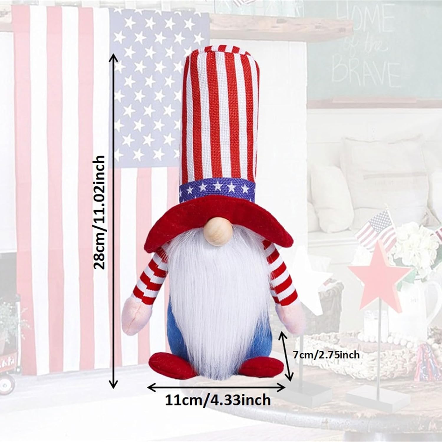 Abbraccia l'indipendenza con questa bambola, per durare e per aggiungere tocchi unici al tuo spazio Festeggia la giornata patriottica con queste straordinarie decorazioni per bambole, con un motivo unico e dettagli raffinati Realizzata in tessuto, questa bambola gnomi non è solo solida ma anche morbida e confortevole Per persone interessate alla cultura statunitense, questa bambola aggiunge un tocco di stile a qualsiasi arredamento Mostra questa accattivante bambola sul tuo scaffale o scrivania per aggiungere un tocco unico alla tua stanza
