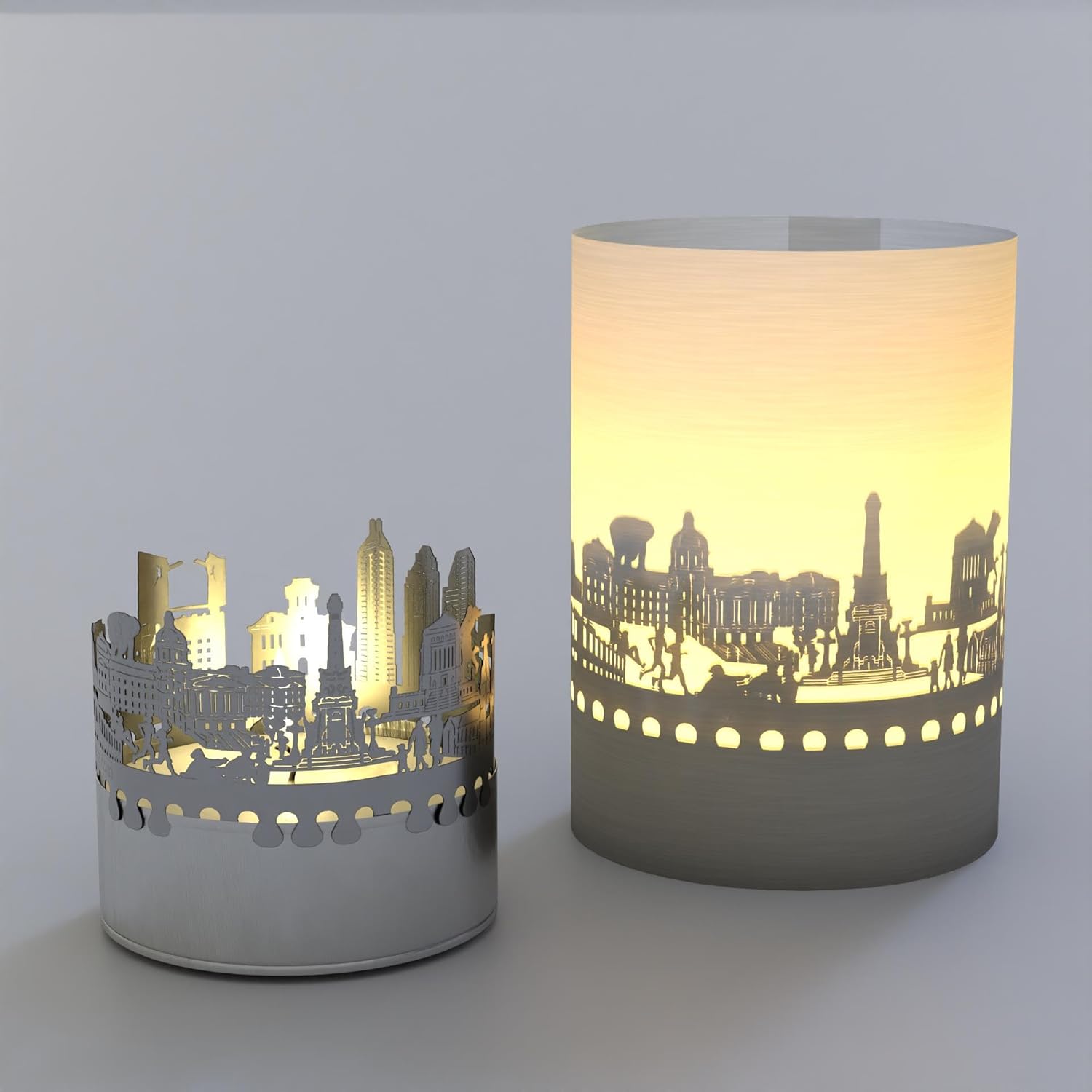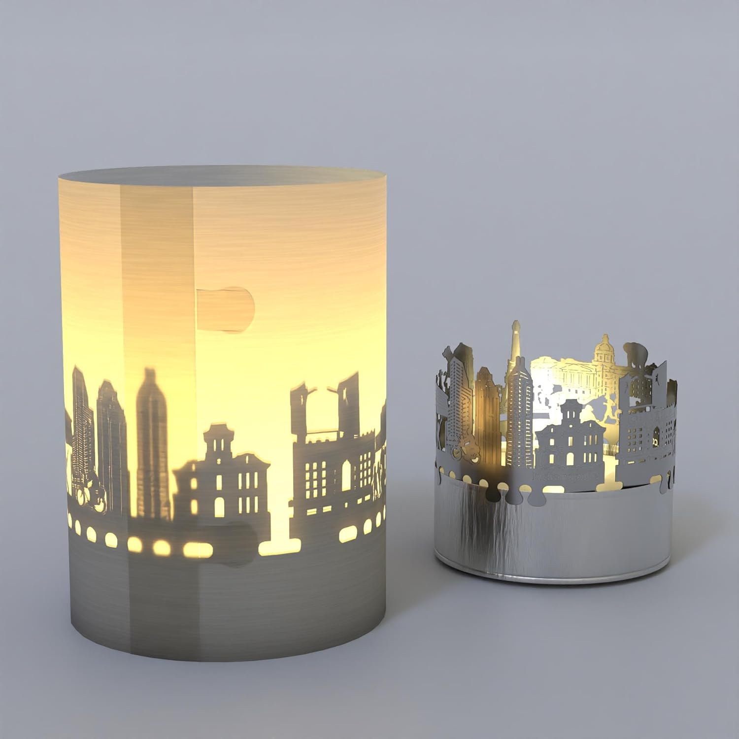 Illumina Indianapolis a lume di candela e proietta lo skyline magico nella stanza. Idea regalo creativa e souvenir per gli amanti di Indianapolis, perfetto per tutte le occasioni. Silhouette in filigrana con dettagli curati. Mostra importanti attrazioni come il Monument Circle e il Museo dell'Arte di Indianapolis. Bel regalo con un tocco magico. Silhouette in acciaio inossidabile di alta Include lumino e schermo di proiezione per un impressionante gioco di ombre. Piccolo regalo o ricordo per gli appassionati di Indianapolis. Produzione ecologica e sociale all'interno dell'UE. Utilizzo di materiali riciclati e collaborazione con le organizzazioni sociali. Prodotto ecologico e sostenibile. Consegna rapida e semplice. La soddisfazione del cliente è importante per noi. Siamo a vostra disposizione per qualsiasi domanda. Gioia del prodotto per clienti e destinatari.