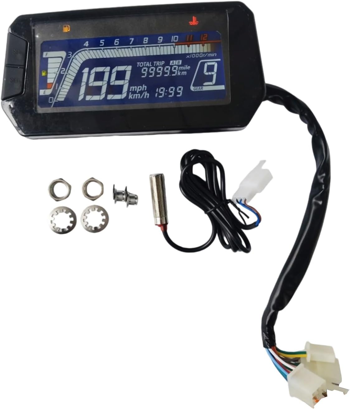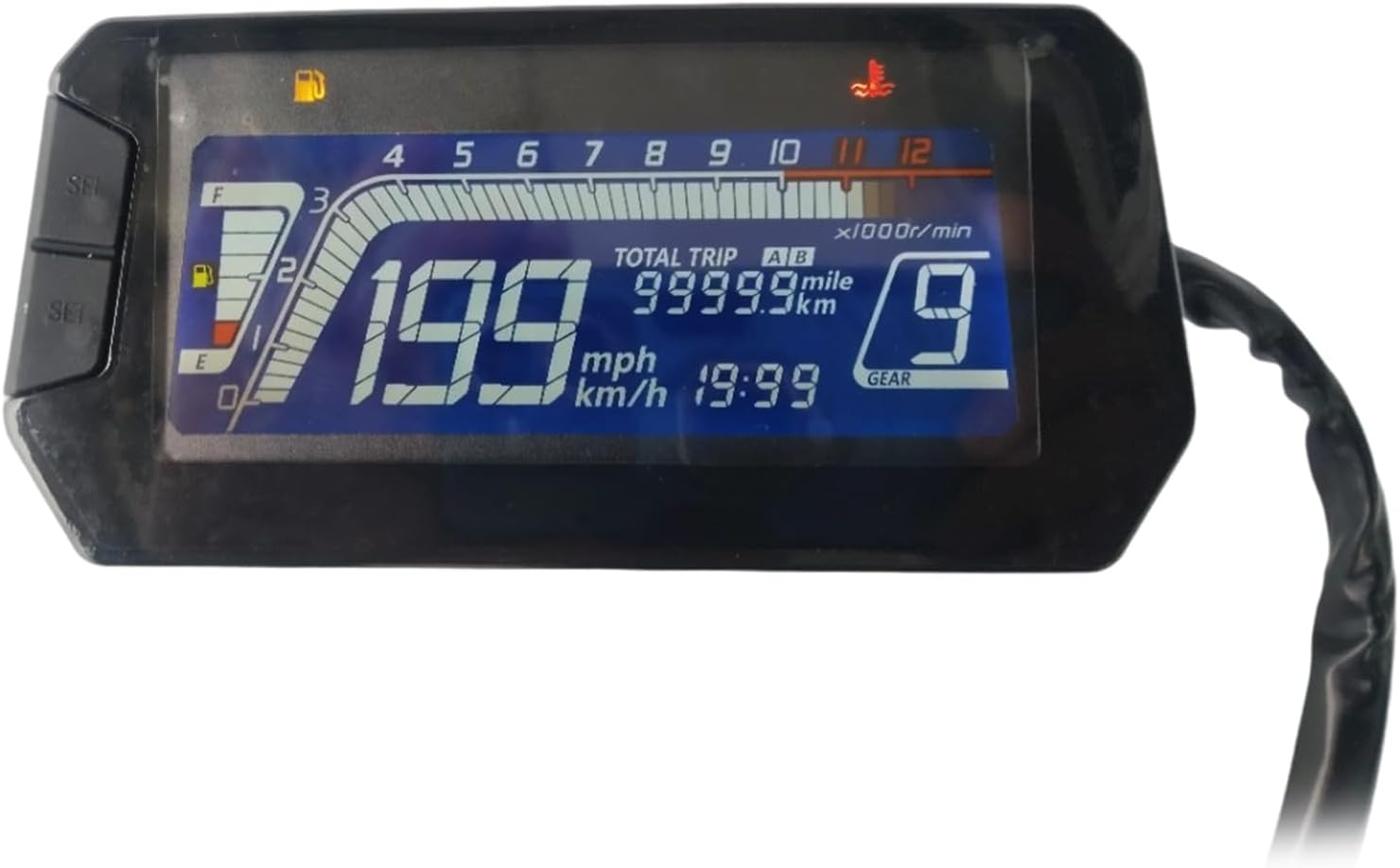 Ideale per appassionati che cercano la personalizzazione attraverso aggiornamenti e per i motociclisti che danno priorità alle alte prestazioni e alla sicurezza con informazioni precise sul veicolo Perfetto per spostamenti in città con monitoraggio della velocità in reale guida o per viaggi a lunga con chilometraggio e monitoraggio dei carburanti pianificazione efficiente Costruito con materiali impermeabili e resistenti, questo indicatore garantisce durata in condizioni meteorologiche avverse, rendendolo un compagno stabile per ogni corsa Questo design multifunzionale un tachimetro, un contachilometri, indicatori carburante e termometri, soddisfacendo tutte le esigenze essenziali dei ciclisti Migliora la tua esperienza guida con i nostri indicatori LCD digitali per dotati un display risoluzione che fornisce dati chiari velocità, RPM e viaggio per le migliori prestazioni