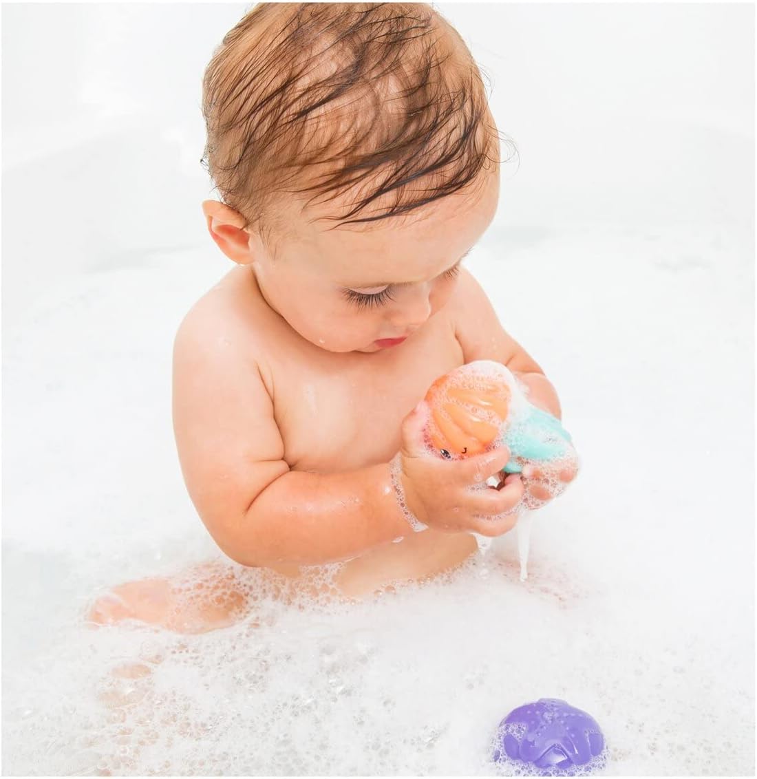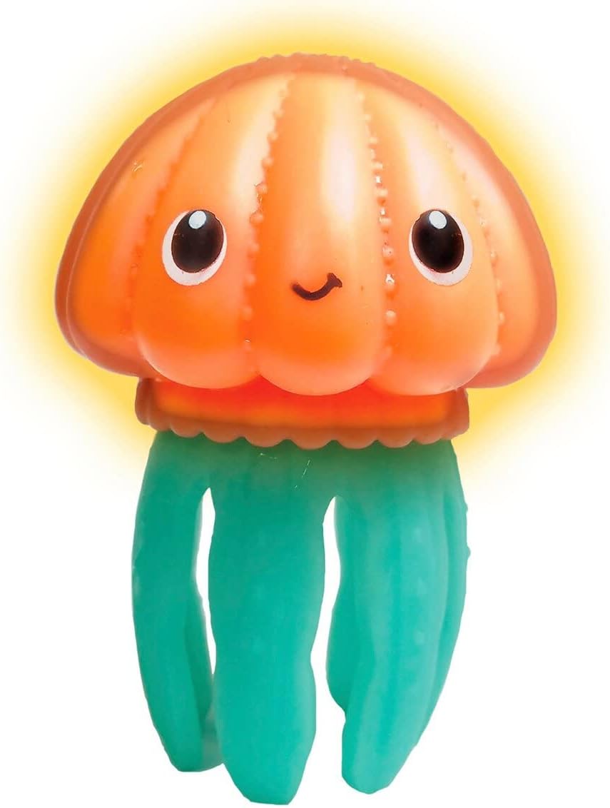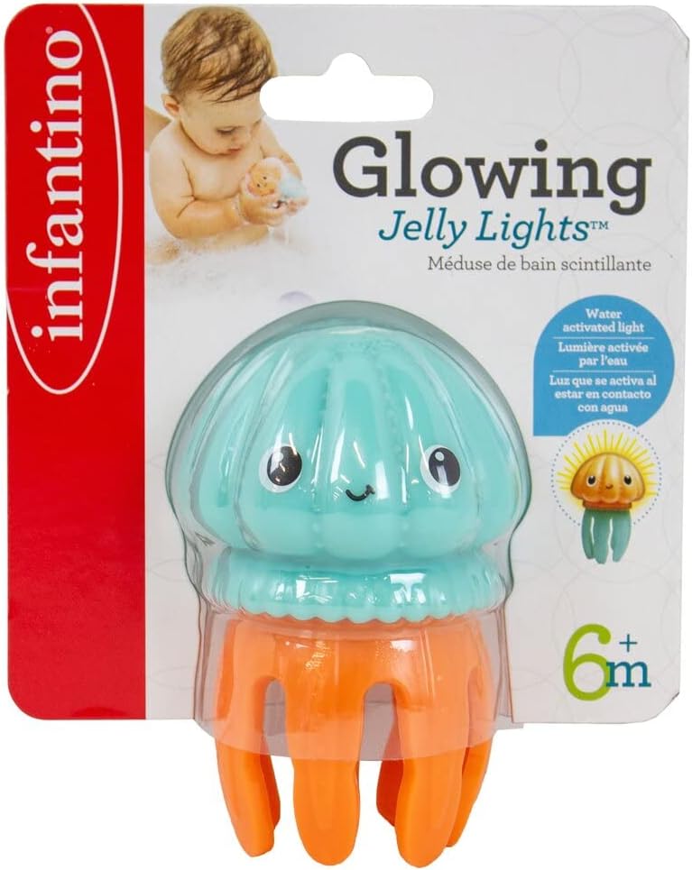 INCREDIBILE ESPERIENZA SENSORIALE - Il giocattolo da bagno Infantino Glowing Jelly Light offre ai bambini un'esperienza sensoriale coinvolgente con le sue meduse galleggianti e strutturate che si illuminano al contatto con l'acqua. DIVERTIMENTO LUMINOSO - I corpi luminosi e illuminati delle meduse creano un'atmosfera magica nella vasca da bagno, arricchendo il momento del bagno e rendendolo più piacevole per i bambini. TENTACOLI STRUTTURATI - Tentacoli di medusa morbidi e strutturati si muovono e scorrono nell'acqua, aggiungendo una dimensione extra al gioco sensoriale e incoraggiando l'esplorazione tattile. COMODO FUNZIONAMENTO A BATTERIA - Con le batterie incluse, questo giocattolo da bagno è subito pronto per l'uso, rendendolo un'opzione senza problemi per i genitori. Adatto a bambini dai 6 mesi in su. REGALO IDEALE PER NEONATI - Questo giocattolo da bagno è un regalo eccellente per neonati e bambini piccoli, fornendo benefici sia di intrattenimento che di sviluppo sensoriale durante il bagno.