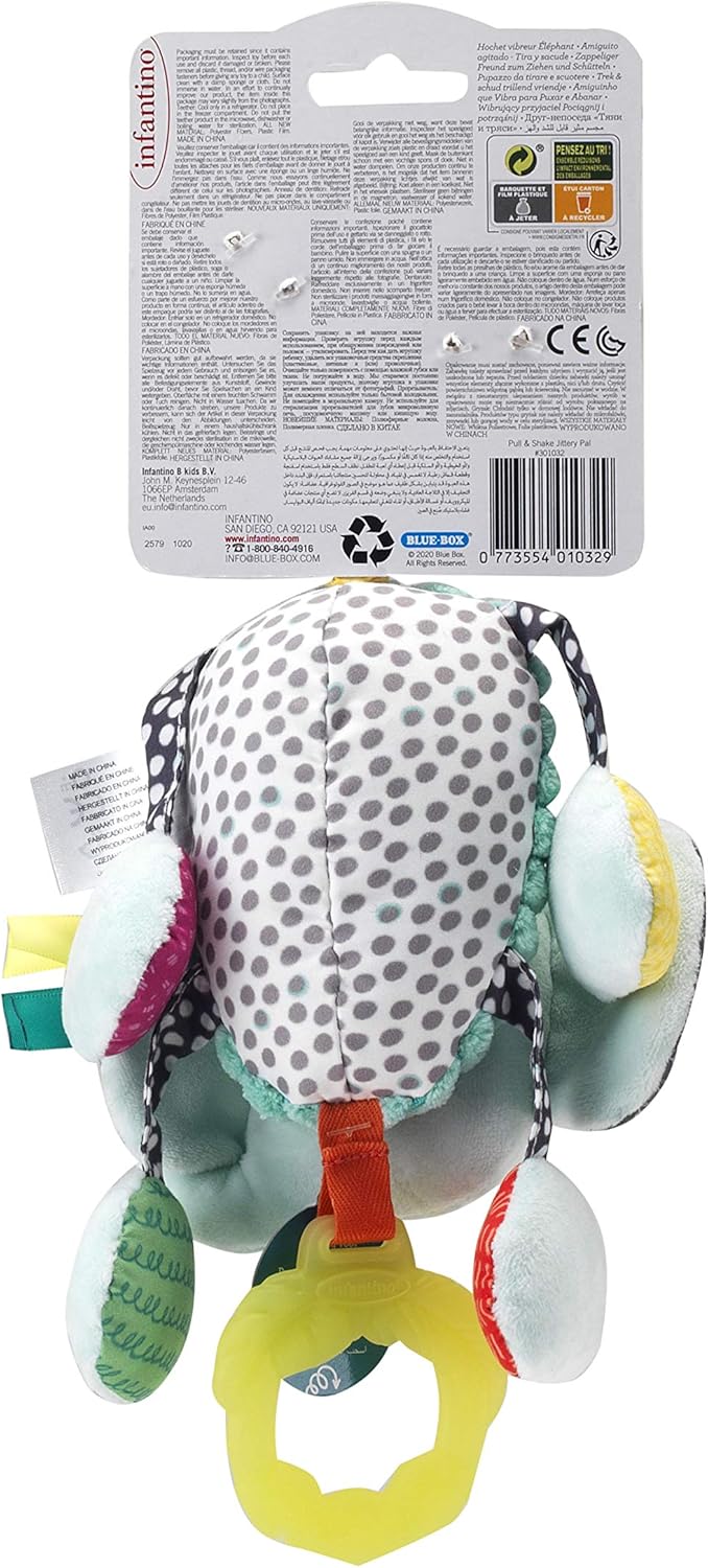 Le piccole mani e le menti curiose adoreranno esplorare con questo amico nervoso I tessuti in peluche multistrato di alta qualità favoriscono l'esplorazione tattile, lo sviluppo visivo e grossolano del motore Si attacca facilmente a seggiolini auto, passeggini e palestre Massaggiagengive morbide senza BPA Adatto fin dalla nascita