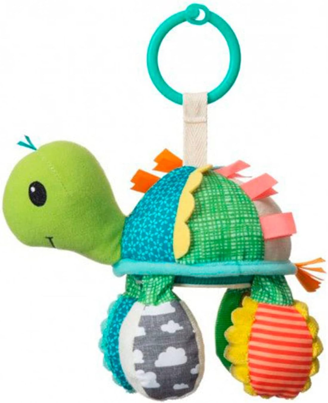 Texture interessanti da scoprire e scoprire Tessuto increspato nelle sue pinne Può essere facilmente attaccato ai seggiolini auto e al passeggino Senza BPA e resistente