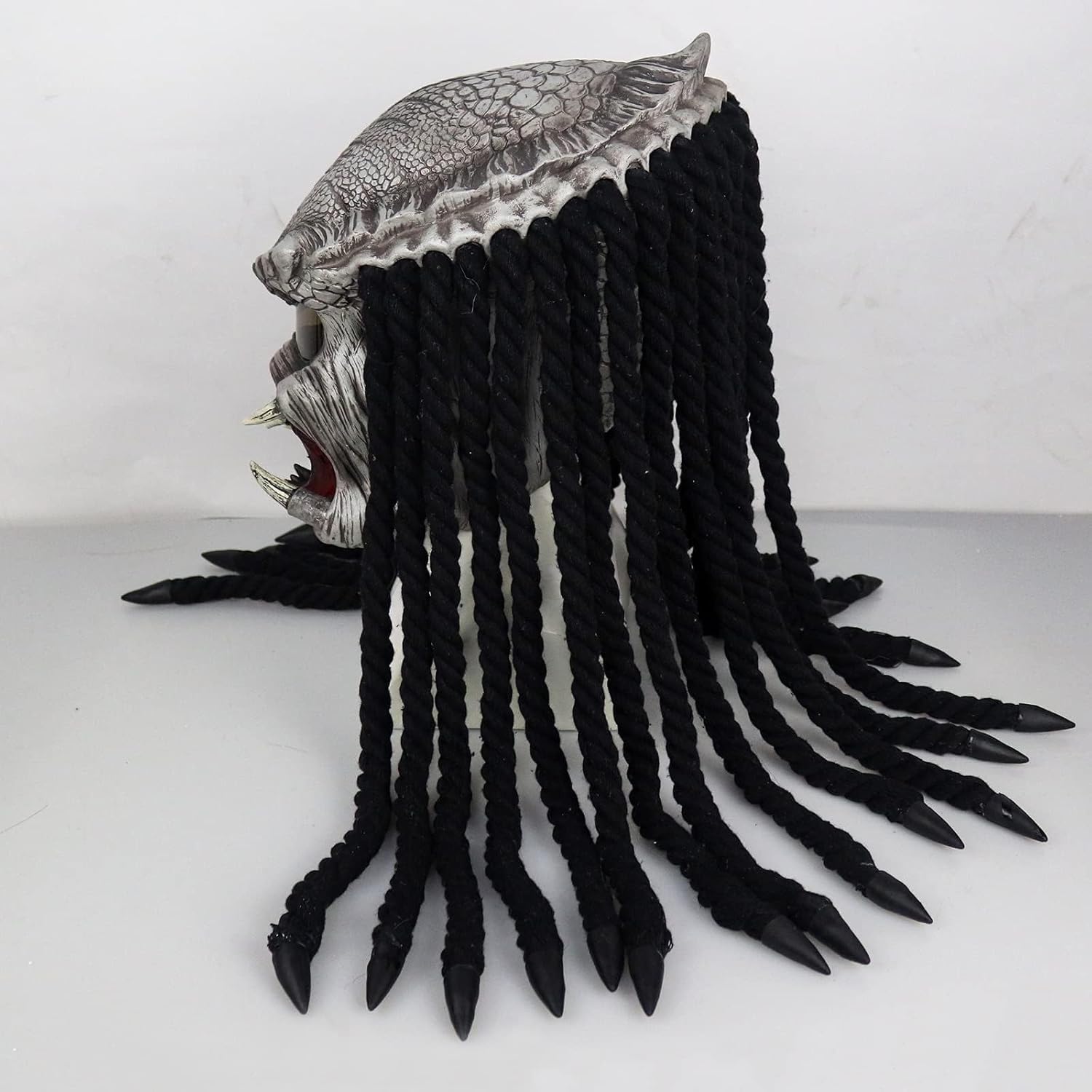 Infinity Gauntlet Maschera da predatore cacciatore della giungla alieno Cyberpunk con capelli di dreads testa intera casco in lattice Halloween Cosplay maschera accessori per adulti bambini