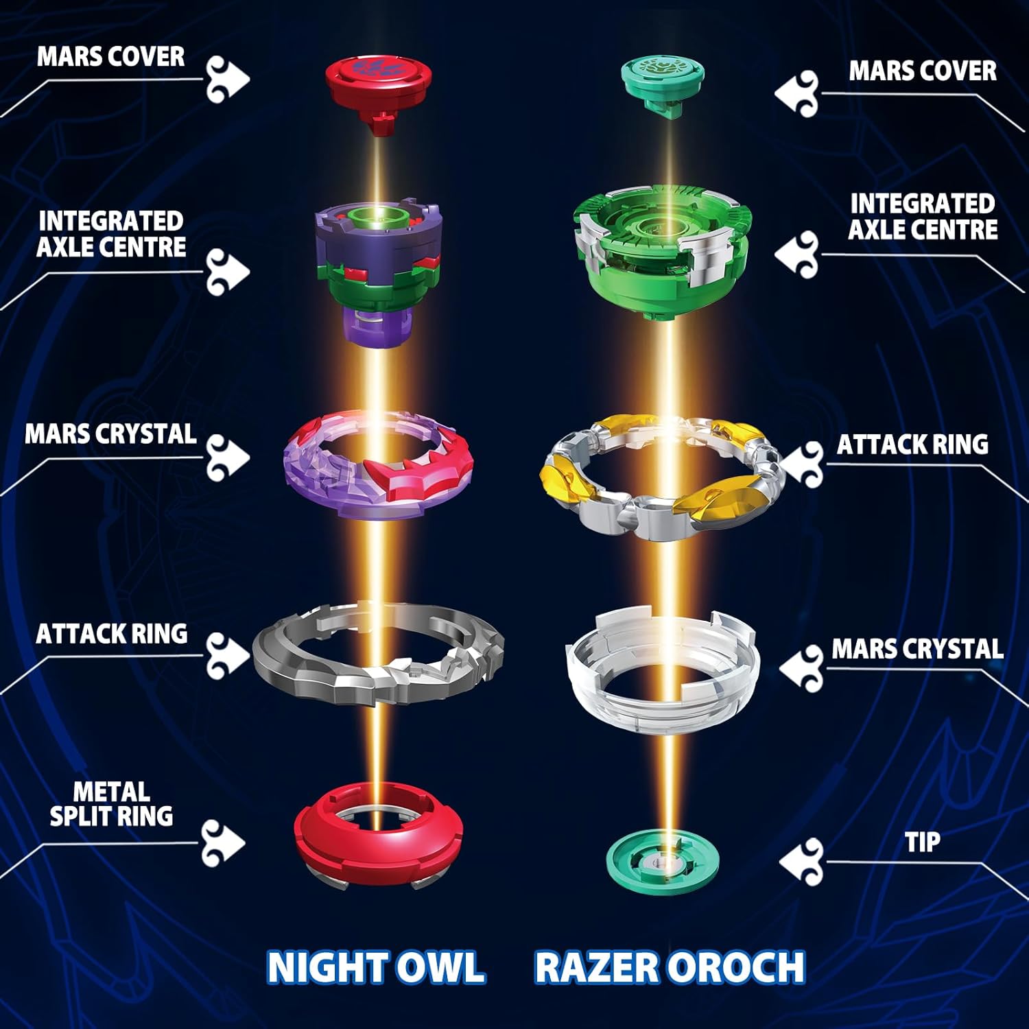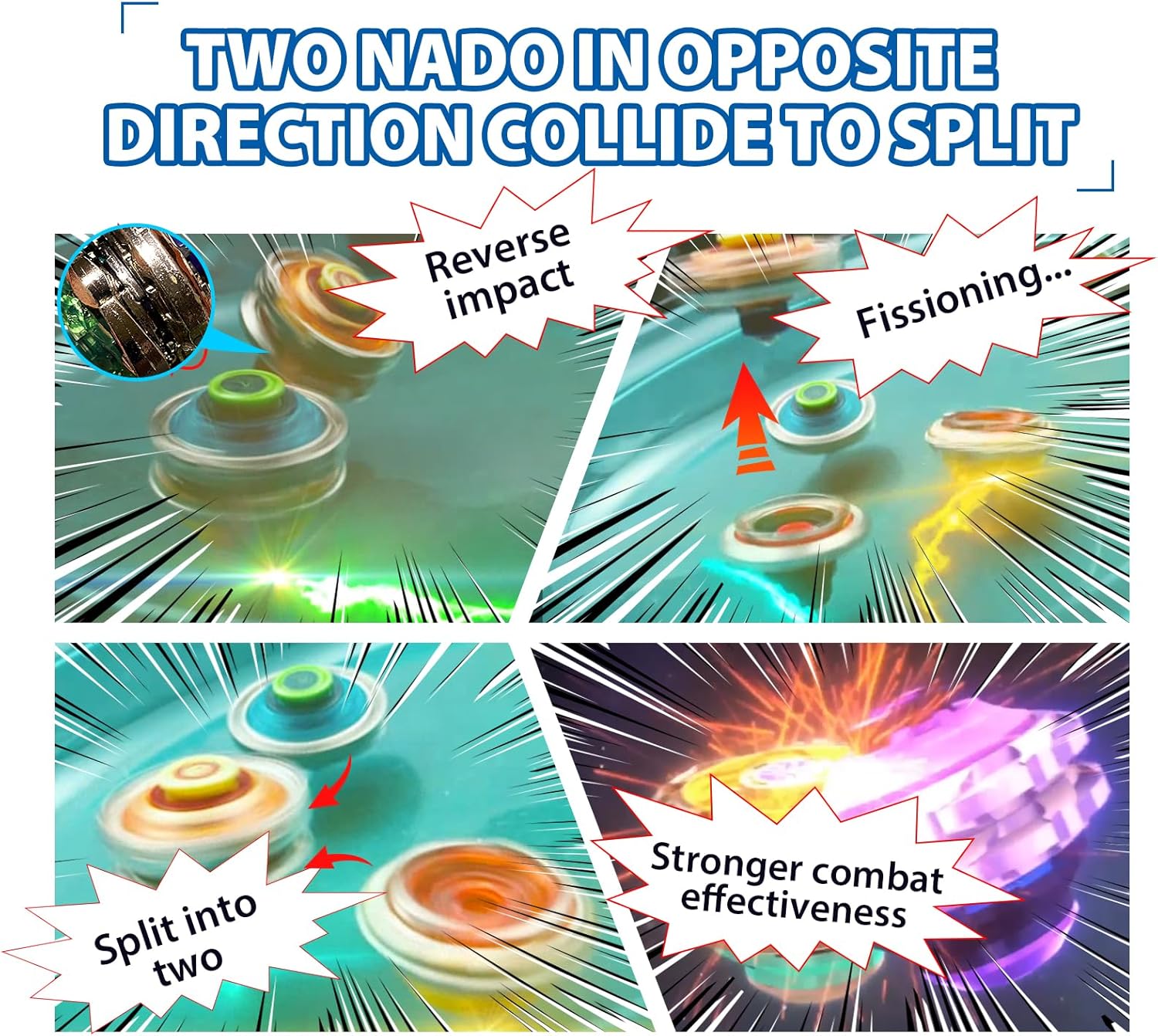 Trottole Infinity Nado, chi sarà il più forte? Affronta i tuoi amici in accese battaglie con le trottole Infinity Nado Serie SPLIT 2 in 1! L’anello di attacco in metallo ne accresce la potenza e la velocità per combattere e vincere i duelli! 2 MODALITÀ DI GIOCO POSSIBILI - In modalità Split la trottola si divide a metà in modo casuale durante il duello, per sorprendere l’avversario e attaccarlo da più lati. In modalità fusione le due parti della trottola restano unite, per un attacco più compatto. GIOCATTOLI A PARTIRE DA 5 ANNI IN SU - I giroscopi Nado e i relativi accessori sono adatti a bambini dai 5 anni in su. I giroscopi Nado sono giocattoli per bambini facili da impugnare che possono essere utilizzati innumerevoli volte in battaglia. Coinvolgete il vostro bambino nel gioco e fategli imparare diverse tecniche di gioco basate sull'attacco e/o sulla difesa per migliorare le prestazioni del giroscopio su ogni campo. REGALO PER BAMBINI - Come regalo di compleanno o di Natale, regalate questo set con Infinity Nado 2-in-1 Gyro ai vostri bambini e fategli vivere l'emozionante duello con i potenti avversari. IL KIT CONTIENE: una trottola Infinity Nado SPLIT 2 in 1, 2 lanciatori di trottole con porta-ingranaggi e un attrezzo di montaggio. Questo prodotto è una trottola 2 in 1: solo la parte superiore della trottola si aggancia al lanciatore di trottole.