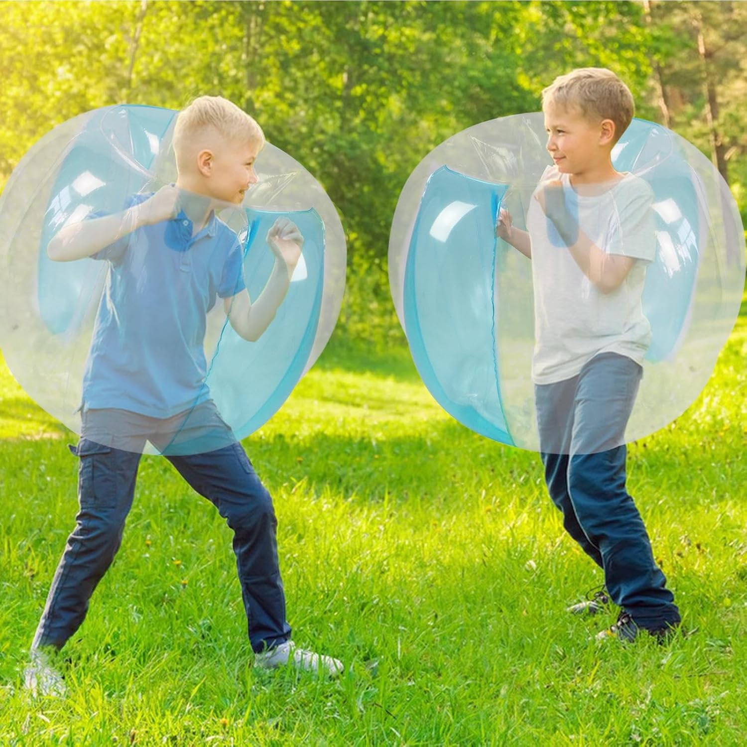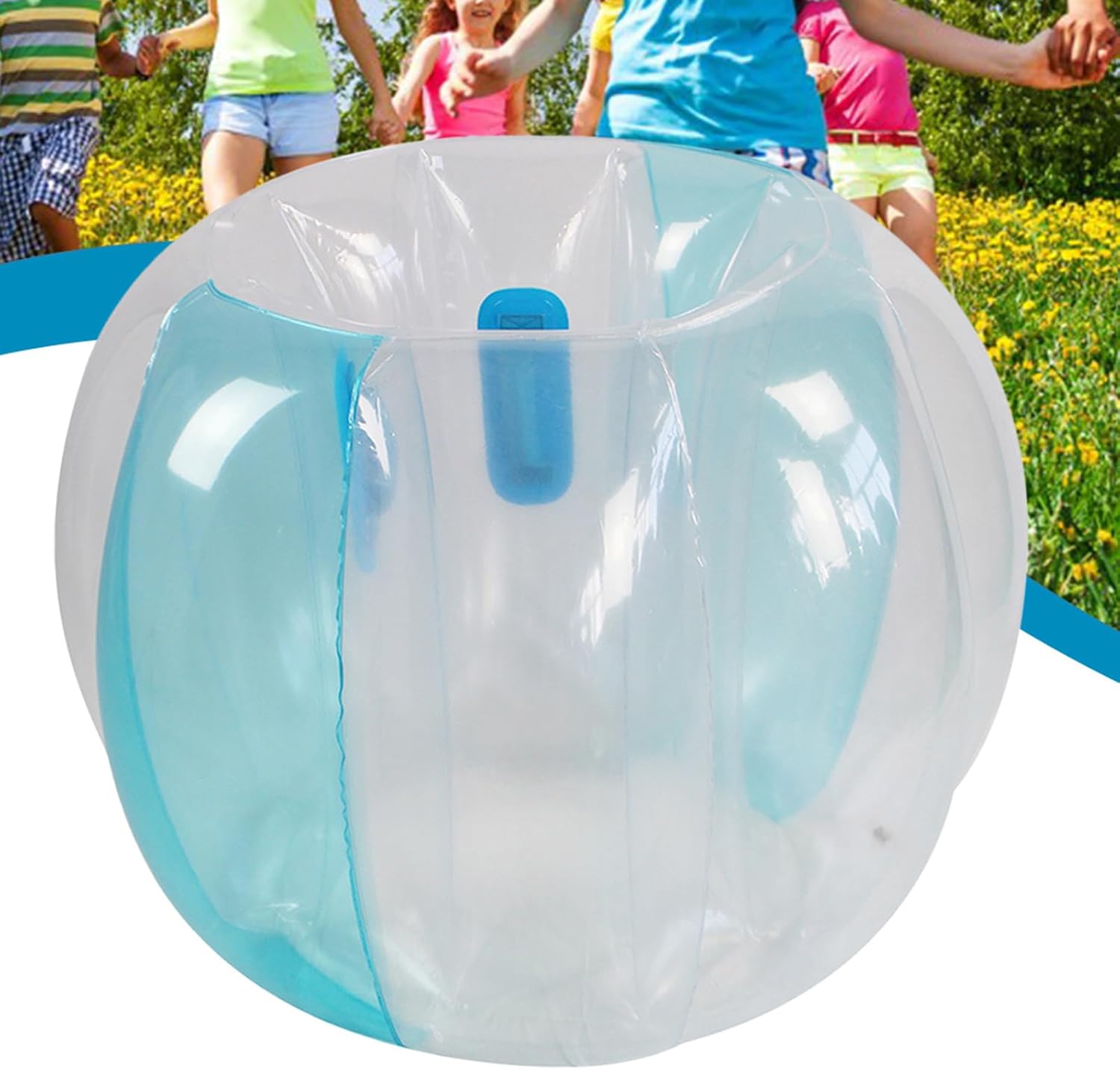 Leak-Proof and Tear-Resistant: Crafted from 0.3mm thick PVC, these Bumper Balls are not only tear-resistant but also safe, waterproof, and leak-proof, ensuring a sturdy and durability experience with every roll. Unmatched Excitement: Our Bumper Balls are the ideal tool for outdoor fun. With an impressive 3-foot outside diameter, they're especially suited for children ages 6 and up adult supervision required. Integrated Soft Pvc Handle: Our Bumper Balls are perfect for kids who love to move. Integrating soft PVC handles and a durability design provide maximum fun and safety. Watch as they roll, tumble, and bounce their way to an active lifestyle. Experience More Playtime: As children don these inflatable Bumper Balls, they're not just wearing a toy; they're stepping into a world of imaginative play where they can roll, collide, and create new games, fostering teamwork and active outdoor fun. Charming Present: Create a fun-filled adventure with Bumper Balls: a perfect creative gift for boys and girls. Get ready for hours of laughter and excitement with these outdoor toys, good for birthdays, Christmas , and summer joy.
