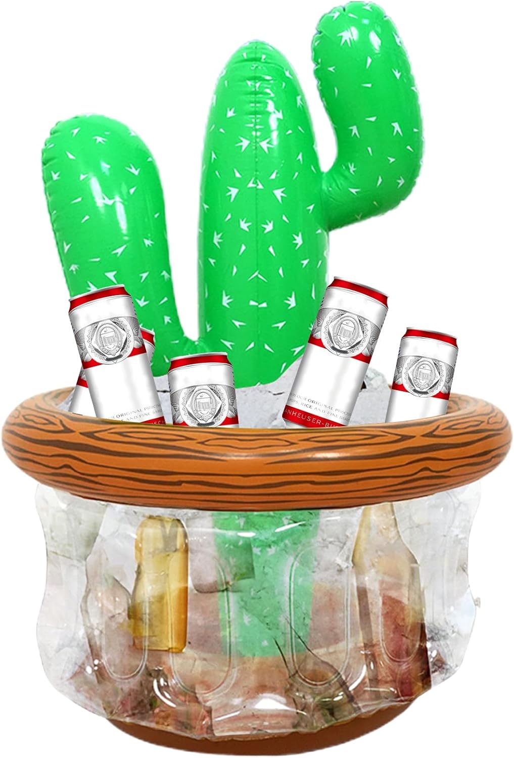 Reusable and Easy to Clean: Wipes clean after use and folds down flat for storage making it a practical and fun solution for both casual and festive occasions Holds Multiple Drinks: Spacious inner compartment accommodates a generous amount of ice and beverages helping to keep the party going without frequent restocking Great for Themed Events: Ideal for Mexican fiestas Hawaiian luaus tropical birthdays or BBQs this cactus cooler becomes a fun centerpiece and photo prop in any setup Lightweight and Easy to Inflate: Quickly inflates using standard air pumps and deflates for compact storage making it easy to transport and reuse for future parties Perfect for Pool and Beach Use: Floats on water for convenient access while swimming or sunbathing and can be placed on tables or patios for ground level entertaining