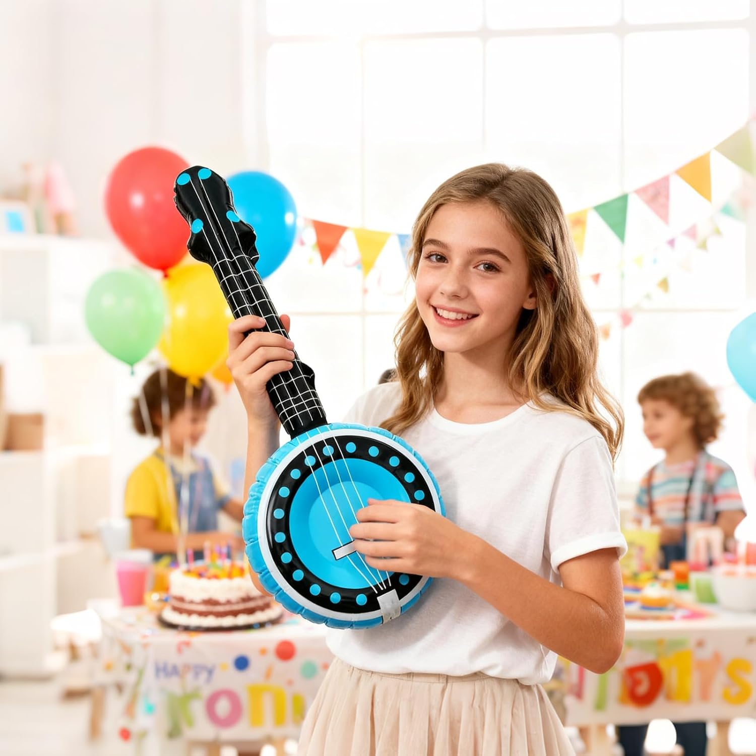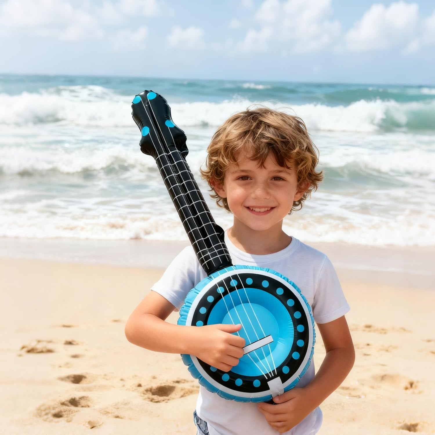 Fun party accessory: Features inflatable banjo instruments made from pvc that add playful charm to birthdays holidays or school events making them perfect props for entertaining kids teens or adults during celebrations indoors or outdoors. Large inflatable size: Measures about 85cm or 33.46 inches when fully inflated with a compact inflatable size of 70x24x6cm making it lightweight portable and easy to carry while still providing eye catching decoration for parties. Durable pvc material: Constructed from pvc these inflatable instruments are reusable sturdy and safe for children ensuring long lasting use while maintaining a polished look that complements party themes or activities. Multi purpose decoration: Suitable for outdoor celebrations backyard games preschool playrooms or holiday gatherings these inflatable props provide versatile use making them practical accessories for families teachers or event organizers. Easy to inflate and store: Designed for quick inflation and deflation these props are convenient to set up and pack away making them reusable and easy to store for future events ensuring reliable fun for multiple occasions.