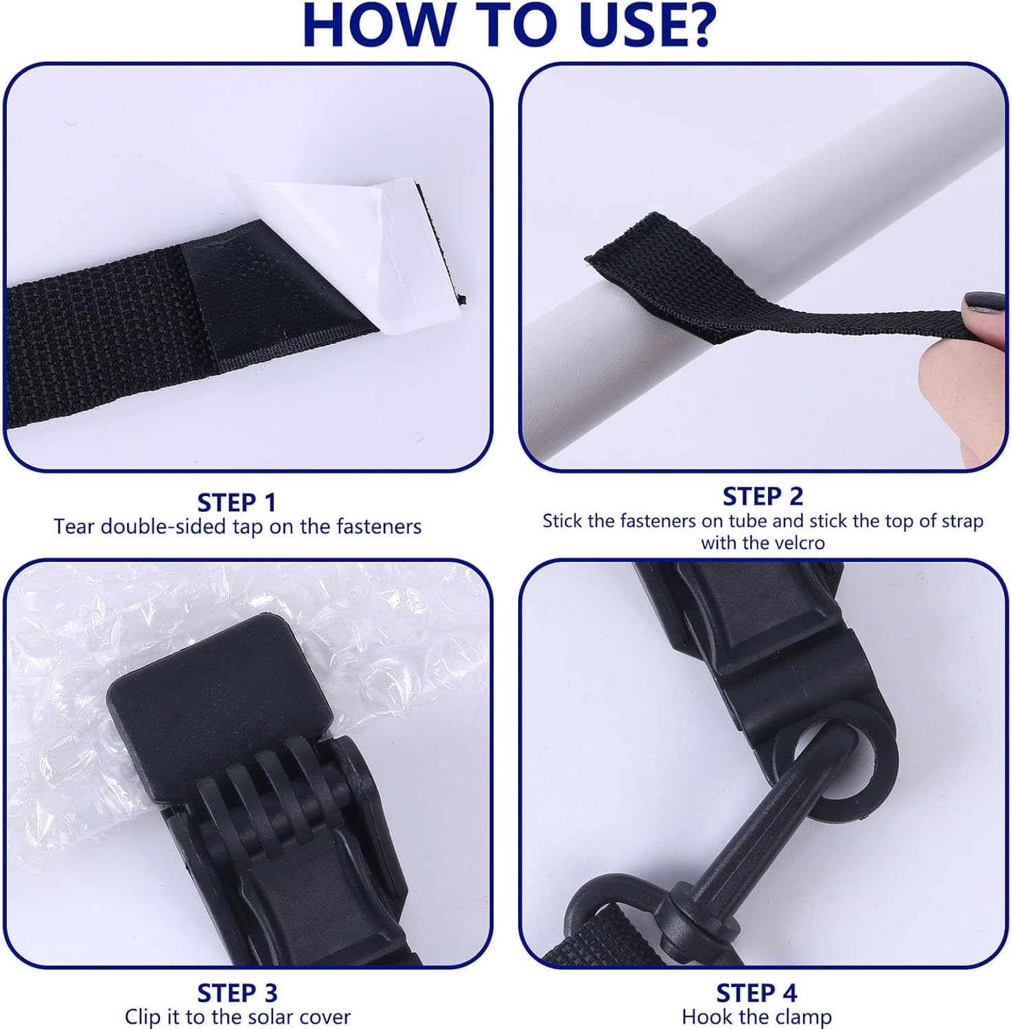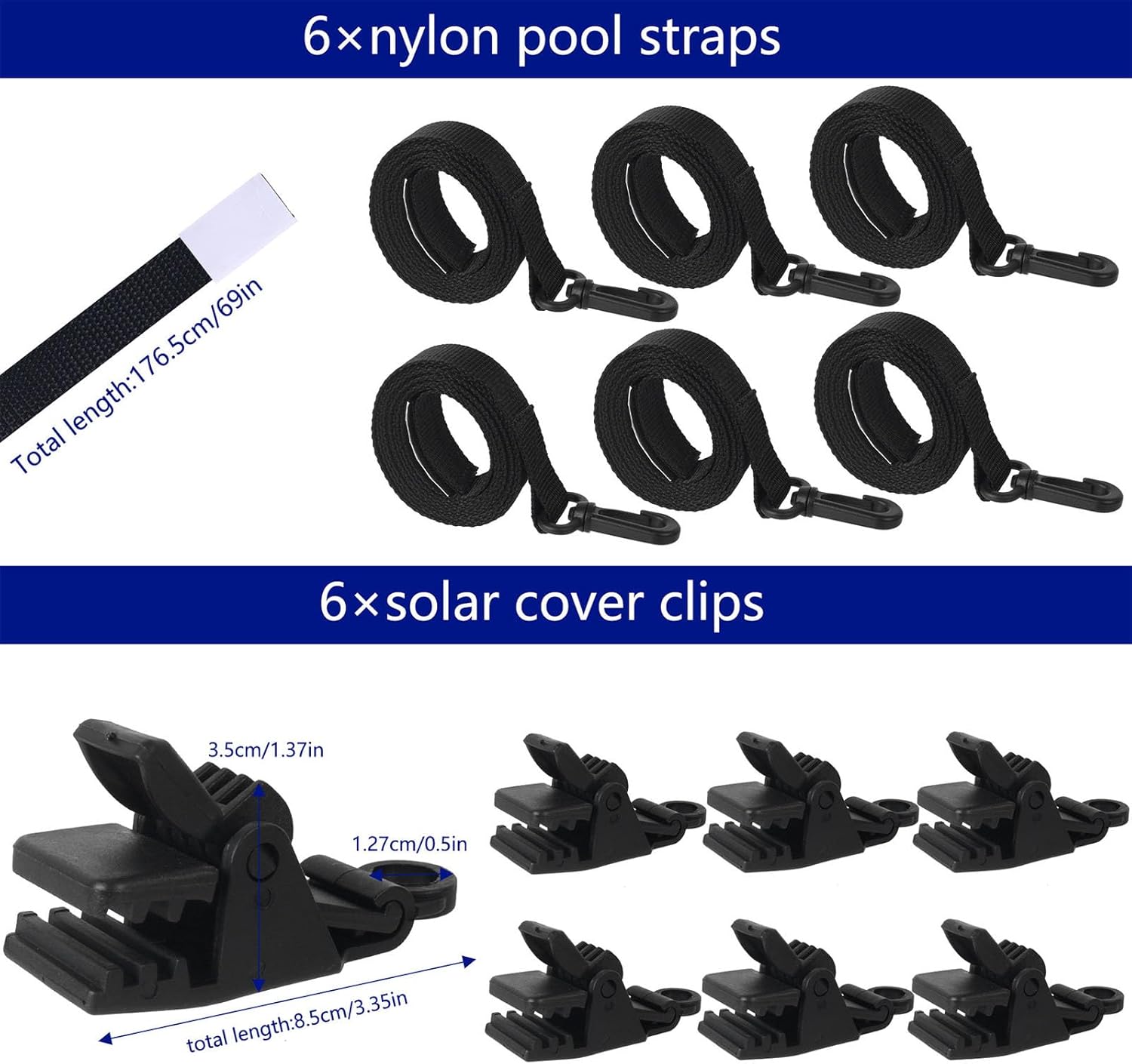 Cinghie di nylon ad alta densità per coperture per piscine sicure e durevoli. Componente resistente al calore per flessibilità e resistenza ai danni del sole. Sutura rinforzata per una maggiore durata e un uso a lungo termine. Facile installazione senza attrezzi. La confezione include: 1 set di coperture per piscina