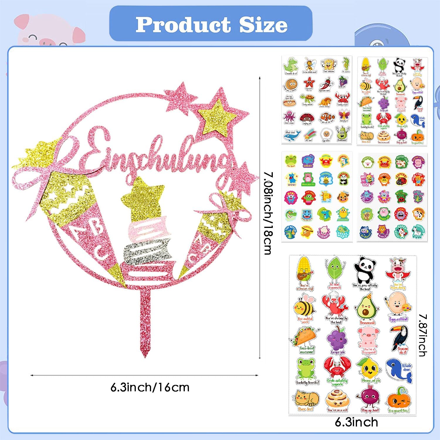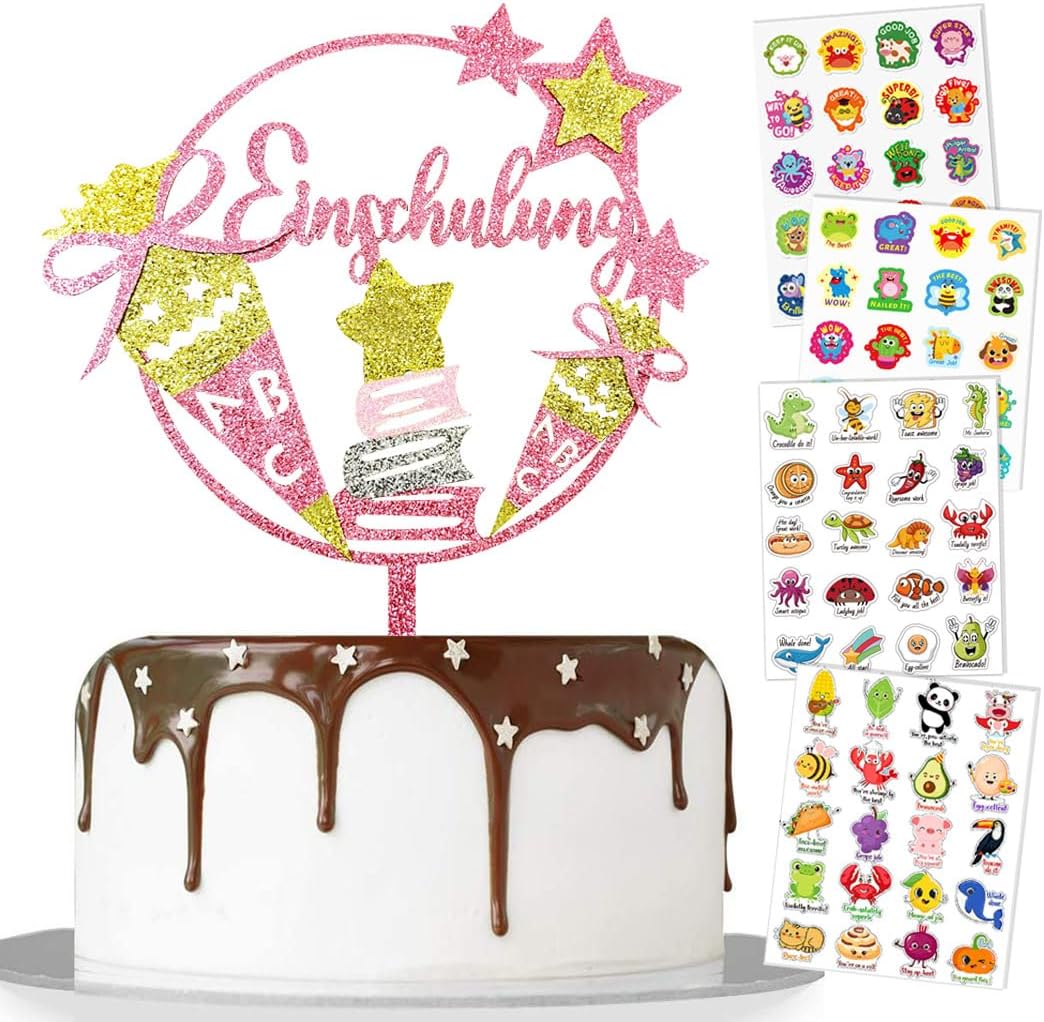 Contenuto della confezione: 1 decorazione per torta rosa glitterata, 4 adesivi di incoraggiamento per bambini Dimensioni: 16 x 18 cm. Adesivo di incoraggiamento: 16 x 20 cm. Materiale di qualità: il topper per torta per l'inizio della scuola è realizzato in cartone flash di alta qualità, sicuro ed ecologico e non richiede montaggio. Basta metterlo sulla torta per ottenere una torta iridescente. Decorazione semplice per torte: perfetta per l'inizio della scuola o per le feste. Perfetto per ragazzi e ragazze per l'inizio della scuola. Presenta 4 simpatici adesivi per bambini come regalo. Consigli: non mangiare! Non mettere in forno o nel microonde. Se qualsiasi danno è causato durante il trasporto, si prega di contattarci in tempo.