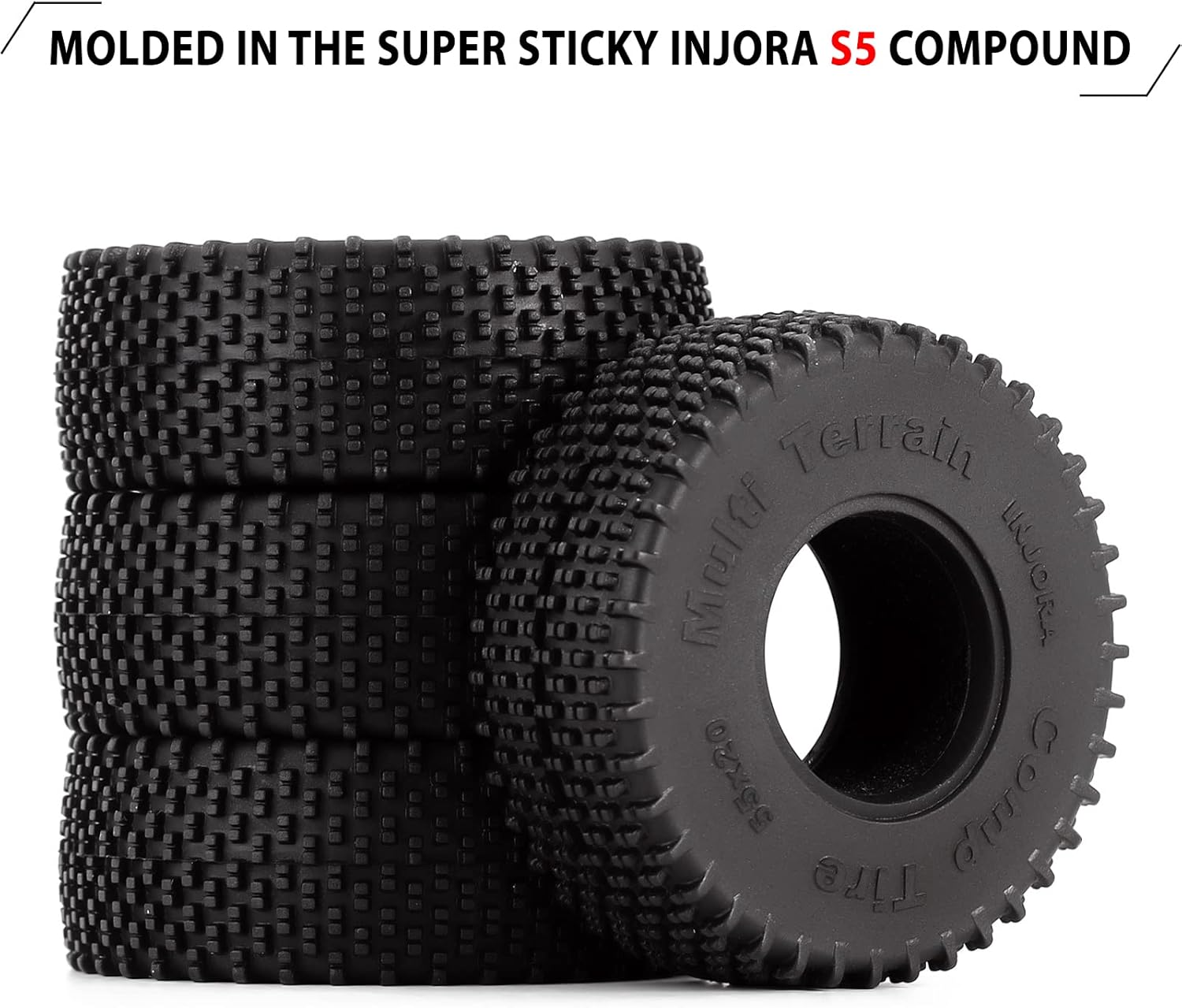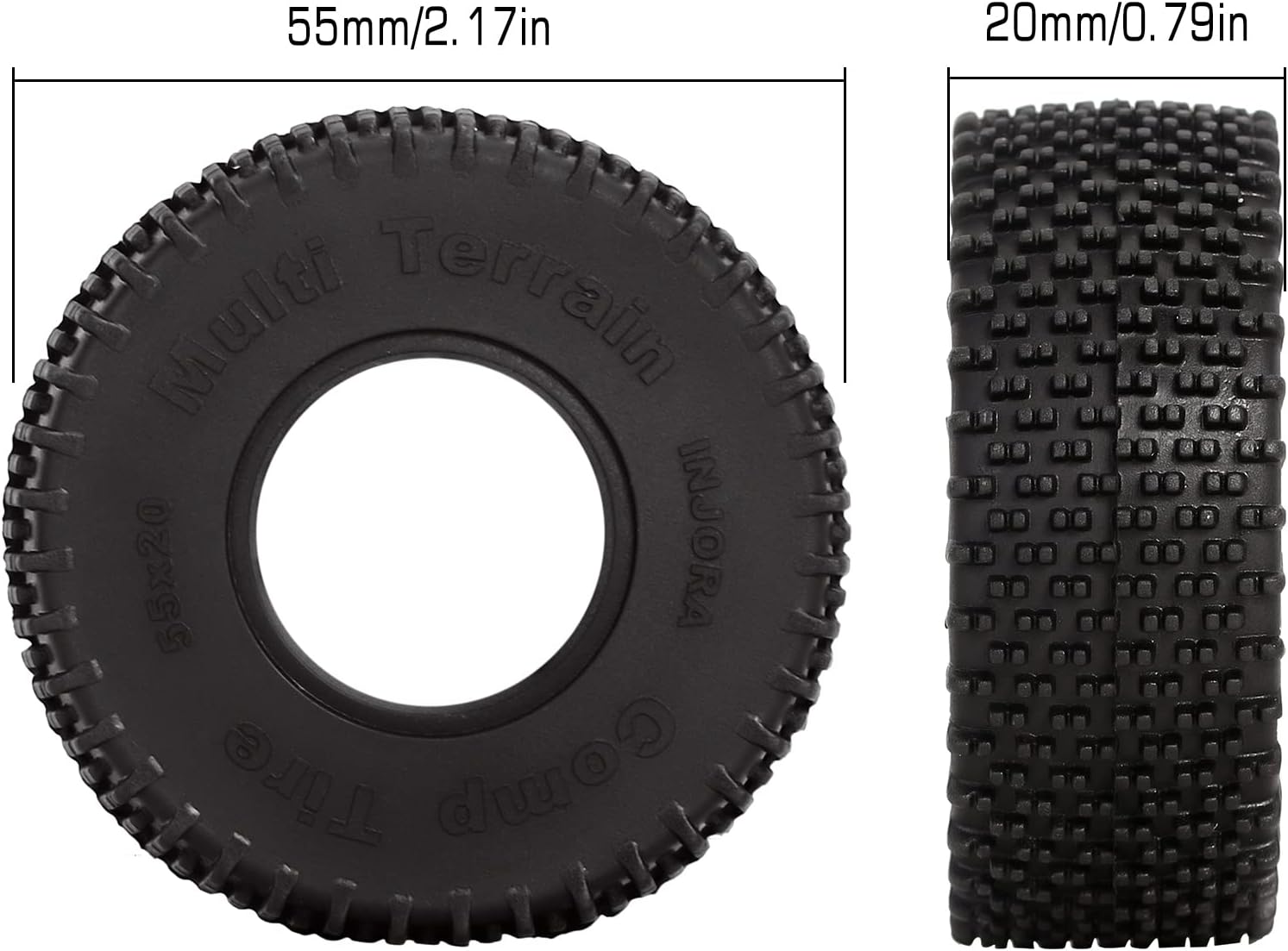 INJORA 1.0 pollici comp perni pneumatici multipli terreni, estremamente alta qualità e la super durata. I pin multi-step perfettamente distanziati scavano in qualsiasi superficie, creano una presa impareggiabile e impressionante. Realizzato nella mescola Super Soft & Sticky INJORA S5, vi porta un miglioramento straordinario delle prestazioni. Questi pneumatici da 55 * 20mm formato 1.0 comp pins progettati per la nostra concorrenza crawler e buggy rock. Abito per 1/18 1/24 RC Auto Axial SCX24 Gladiatore Bronco C10 Deadbolt JLU e l'altra Macchina Cingolata.