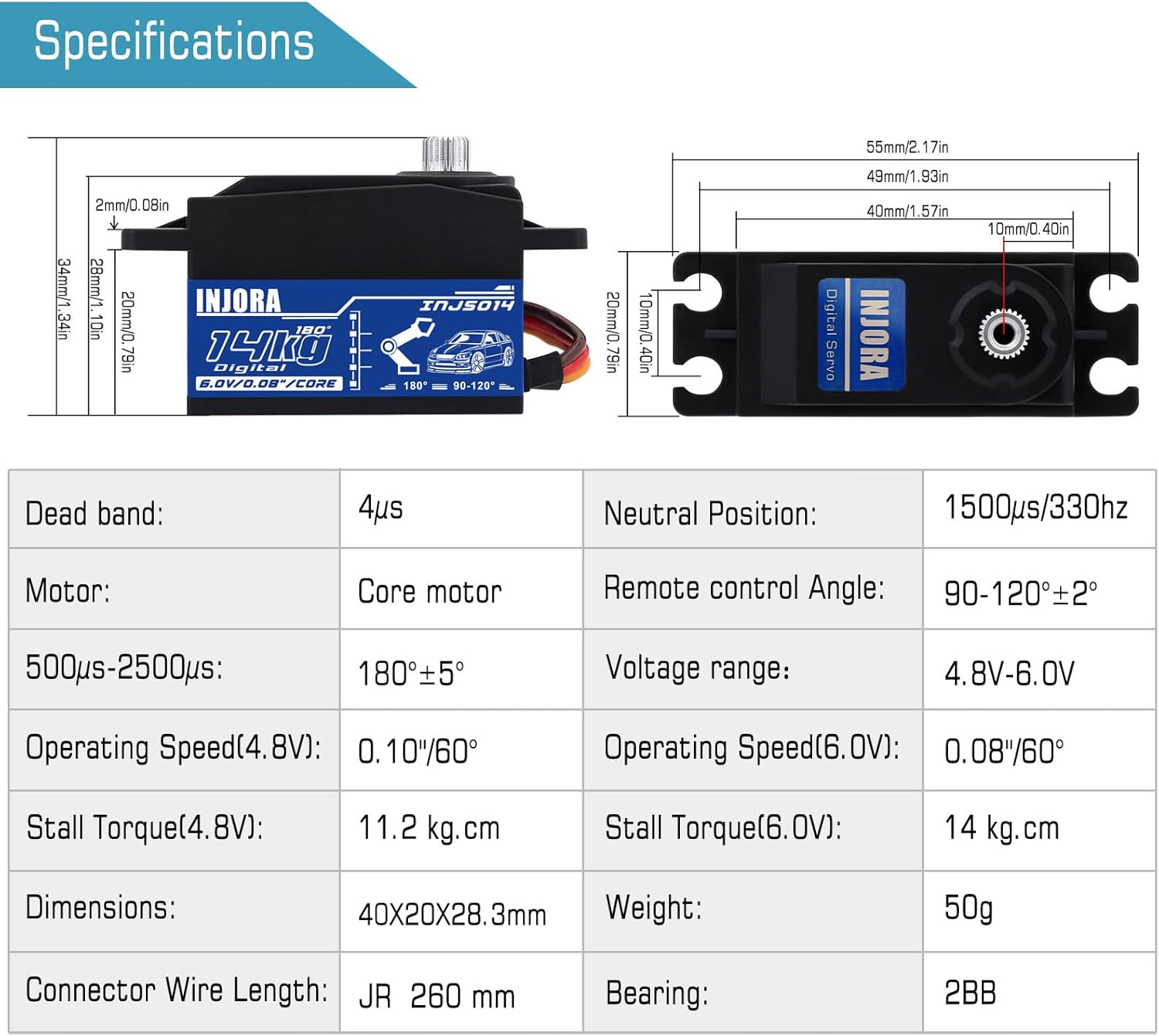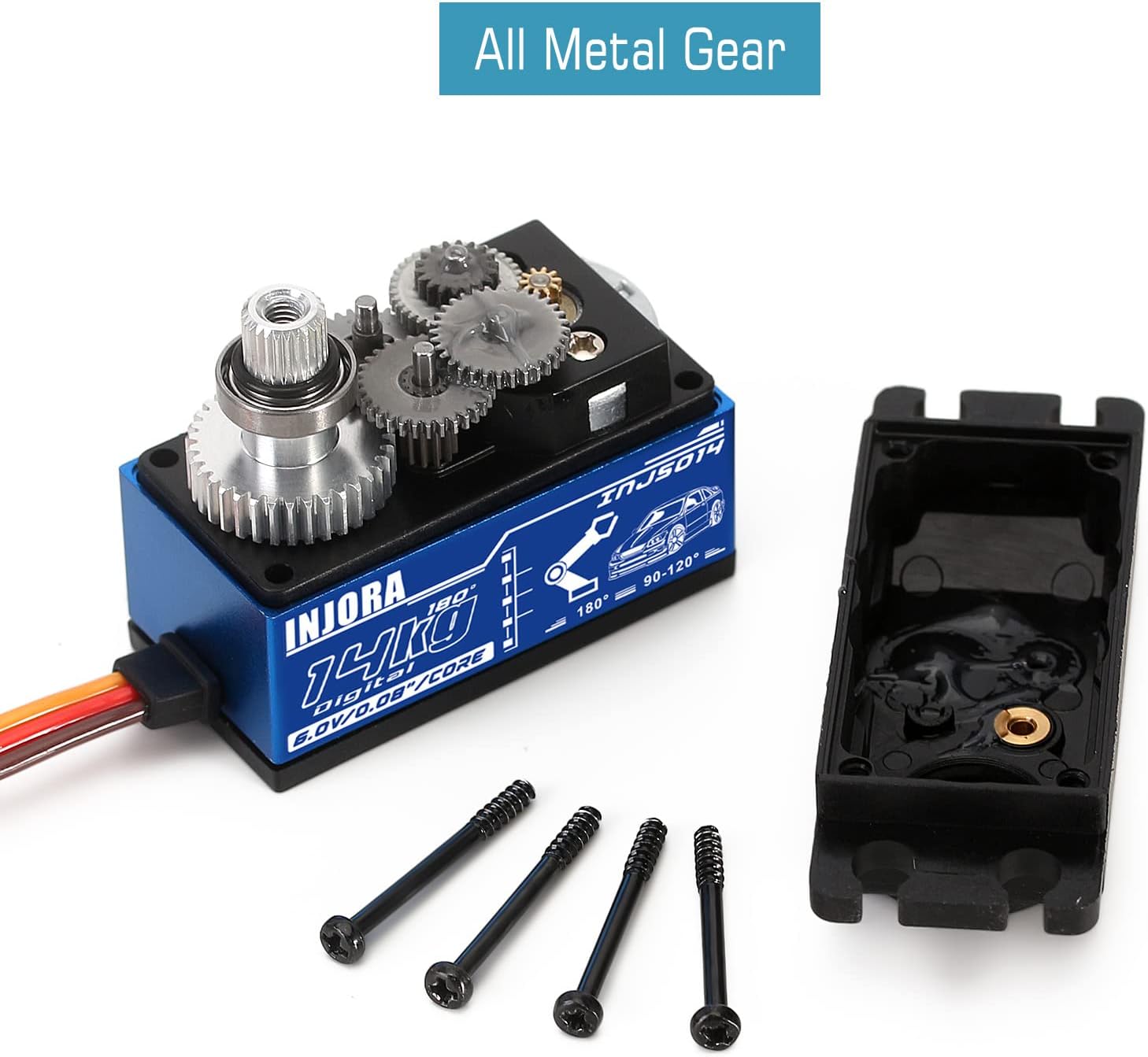 【Qualità Premium】 Realizzato con materiali di alta qualità, ingranaggi completamente in metallo e doppi cuscinetti a sfera, alta sensibilità, stabile e a basso rumore. 【Forma Unica】La forma della cassa a basso profilo risparmia spazio e peso. Il design della cassa completamente in alluminio non solo ha un aspetto elegante ma permette anche temperature di funzionamento più fredde e più fluide. 【Coppia Elevata e Velocità Elevata】Fornisce una coppia impressionante di 11.2kg e una velocità di trasferimento di 0.10" a 4.8V; quando si aumenta la tensione a 6.0V, la specifica aumenta a 14KG e una velocità di trasferimento di 0.08"! 【Alta Prestazione】 Servocomando digitale standard ad alte prestazioni stabile, alta precisione e basso rumore, una grande sostituzione per il vecchio o danneggiato componente RC. 【Ampia Applicabilità】Parti di aggiornamento di alta qualità non solo adatte per qualsiasi veicolo in scala da 1/12 a 1/10, ma perfette anche per robot RC, auto da drift, elicotteri RC e aeroplani a ala fissa. NOTA: Questo servo non può essere utilizzato come servo di scavo/cambio per auto crawler RC.