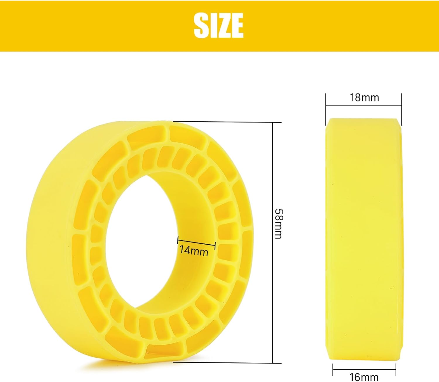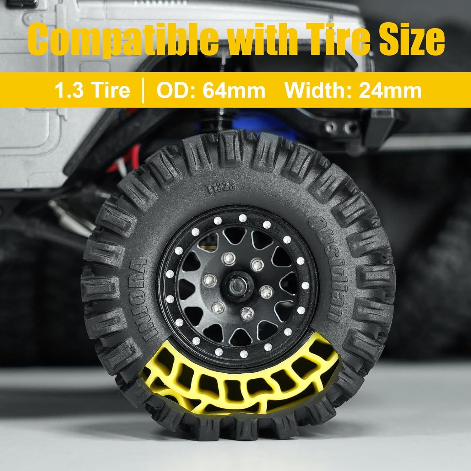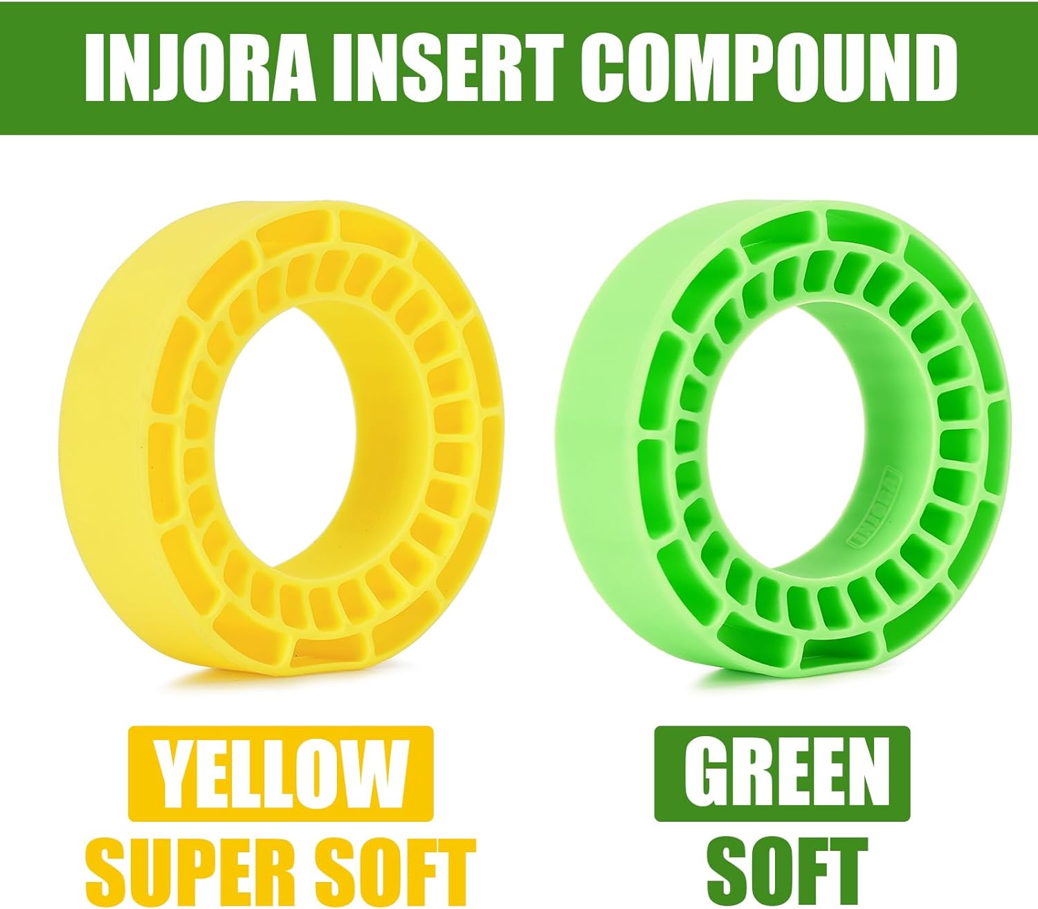 Realizzati in materiali di gomma siliconica, impermeabili e resistenti alle temperature. Supporto del fianco più eccellente rispetto alla schiuma normale per mantenere la forma degli pneumatici. Inserti verdi: morbidi, inserti gialli: super morbidi. Lista del Pacchetto: 4 * Inserti in Gomma Siliconica, peso: 12g/pezzo, dimensioni: 5818mm (2.280.71in). Compatibili con questi pneumatici INJORA: 64*24mm Obsidian YQT-1323/Mud Paw YQT-1324.