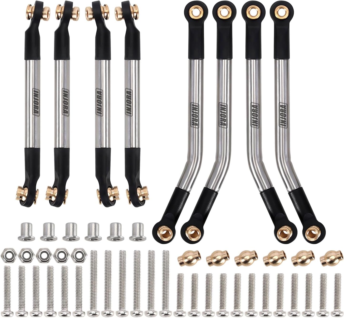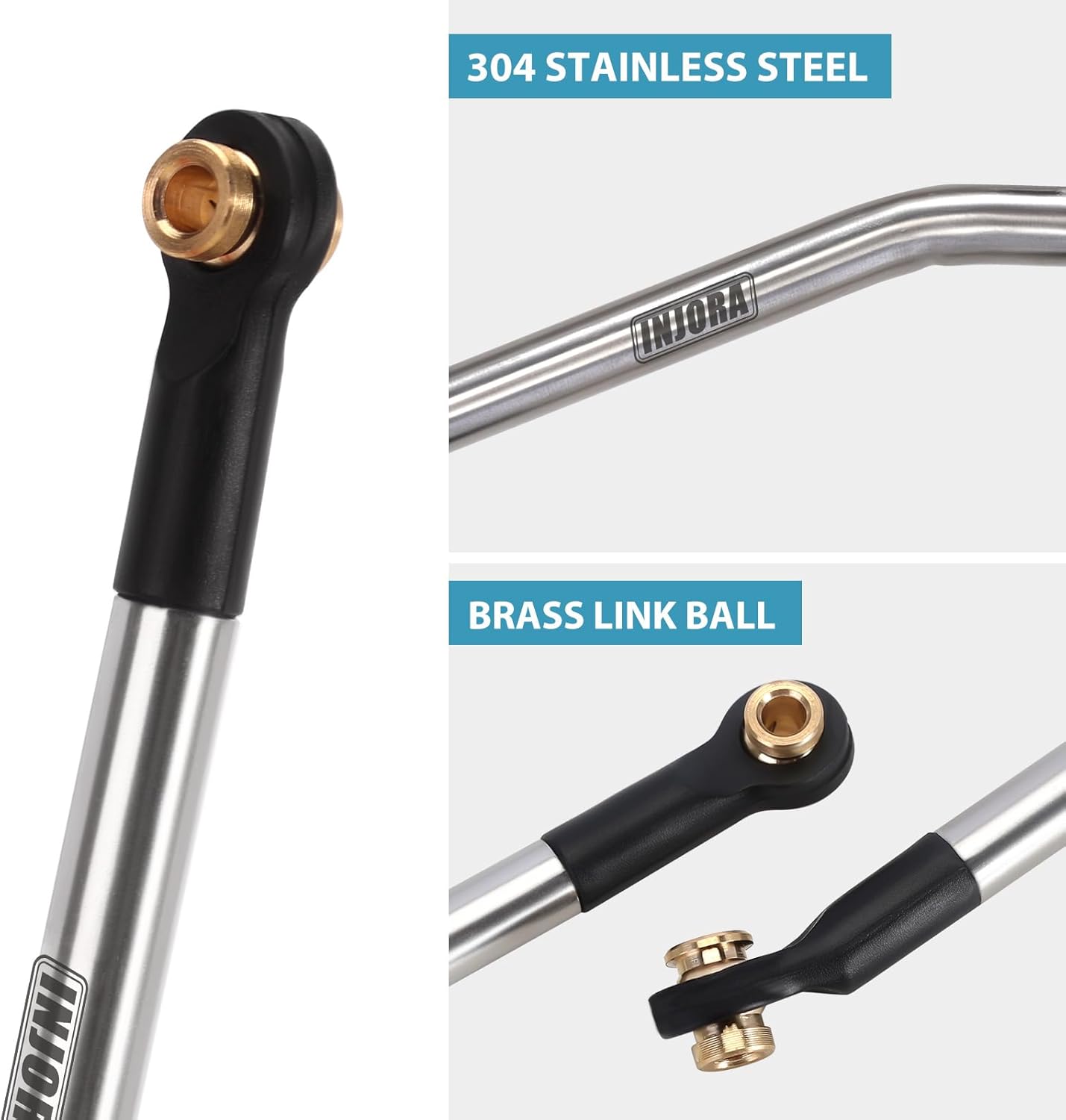 Costruzione Resistente: Realizzato in acciaio inossidabile 304, garantisce prestazioni durature. Prestazioni Migliorate: Sostituisce i collegamenti in plastica FCX18 LC80 , offrendo un movimento più fluido per il tuo 1/18 RC Crawler. Eliminazione dell'Avvolgimento dell'Assale: I Collegamenti di Dispersione Elevata impediscono l'avvolgimento dell'assale e la sgradita sterzata dell'assale durante il funzionamento. Migliorata Altezza da Terra: Offre una maggiore altezza da terra per una migliore performance in arrampicata su terreni impegnativi. Installazione Versatile: Fornito con due dimensioni di sfere di collegamento, facilita l'installazione con la parte originale o ammortizzatori aggiornati da INJORA.