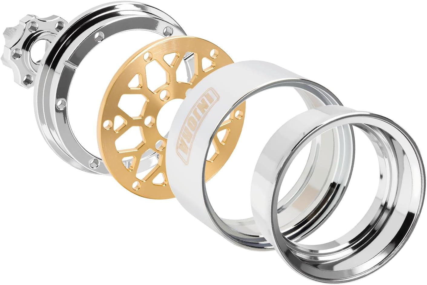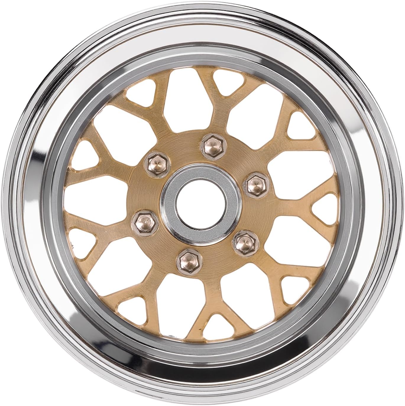 Realizzati con precisione mediante lavorazione CNC. Design modulare con facce del cerchio sostituibili. La designazione a offset negativo aumenta la larghezza della carreggiata per una maggiore stabilità. Realizzati in lega di alluminio e ottone per un bilanciamento ottimale tra peso e prestazioni. Peso per unità: 84,6g.