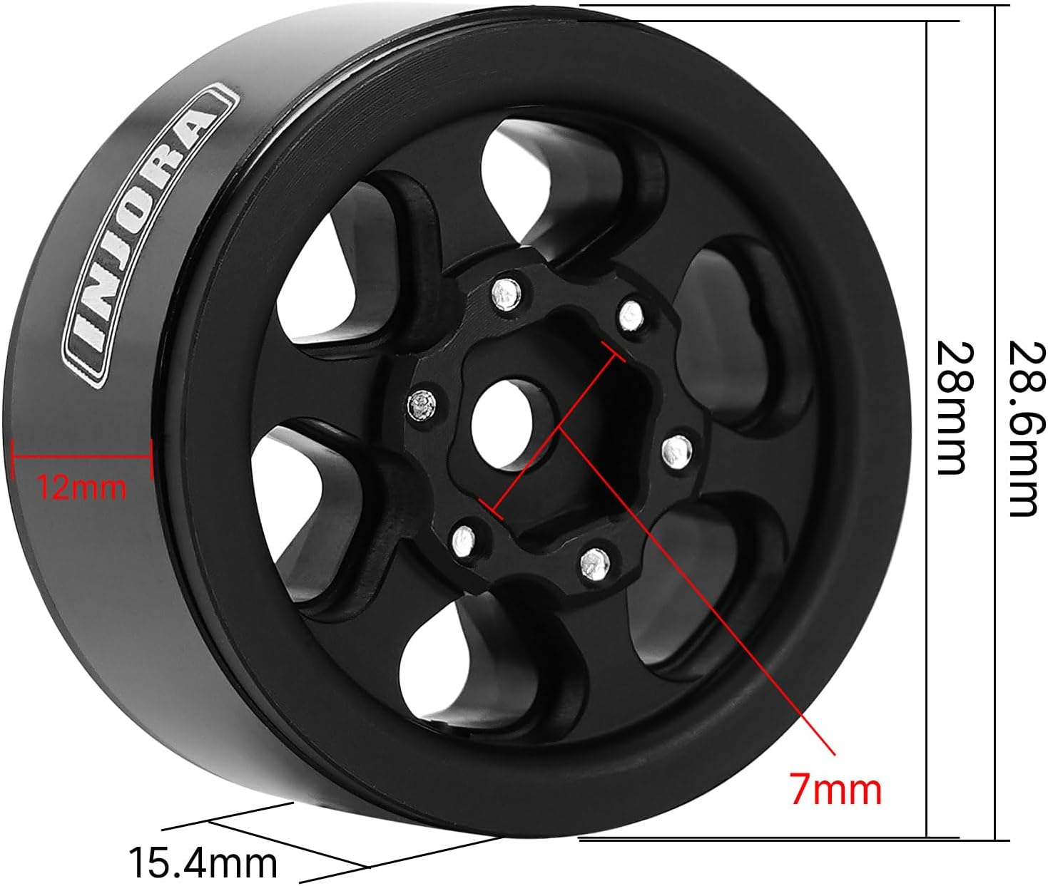 Realizzato in alluminio CNC per garantire durata e precisione. Compatibile con la maggior parte degli pneumatici da 1.0", progettato per migliorare le prestazioni del tuo modellino RC con stile. Design a offset negativo (-4.7mm) per una maggiore stabilità su terreni accidentati. Finitura nera opaca che dona un look elegante e sportivo al tuo crawler. Adatto per TRX4M Ascent18 SCX24 FCX24 1/24 1/18 RC Crawler.