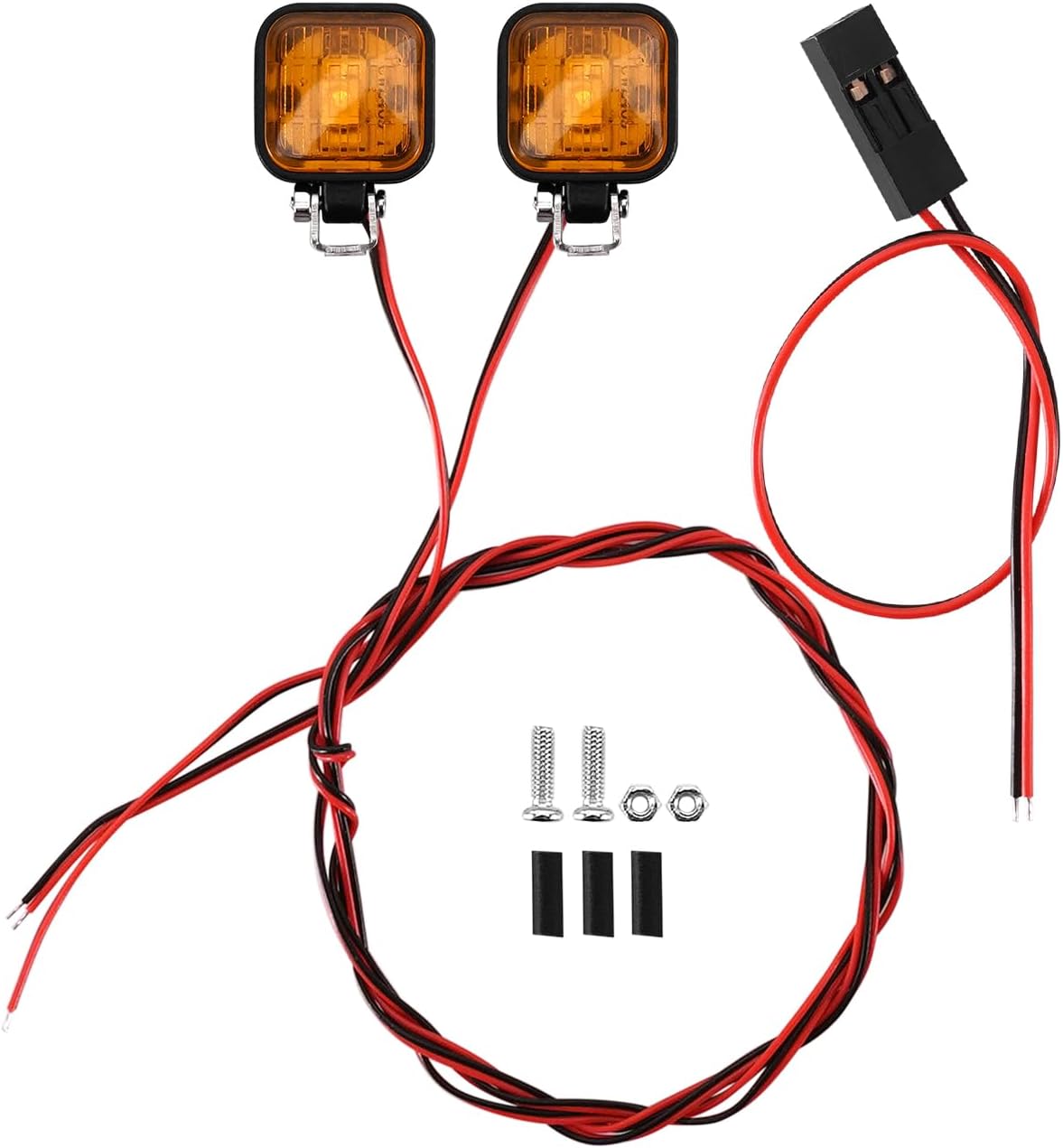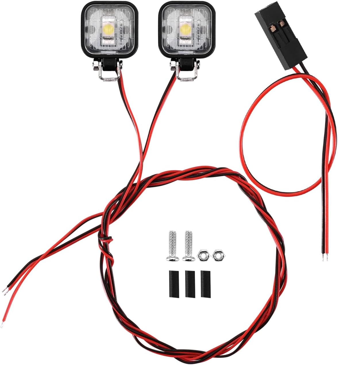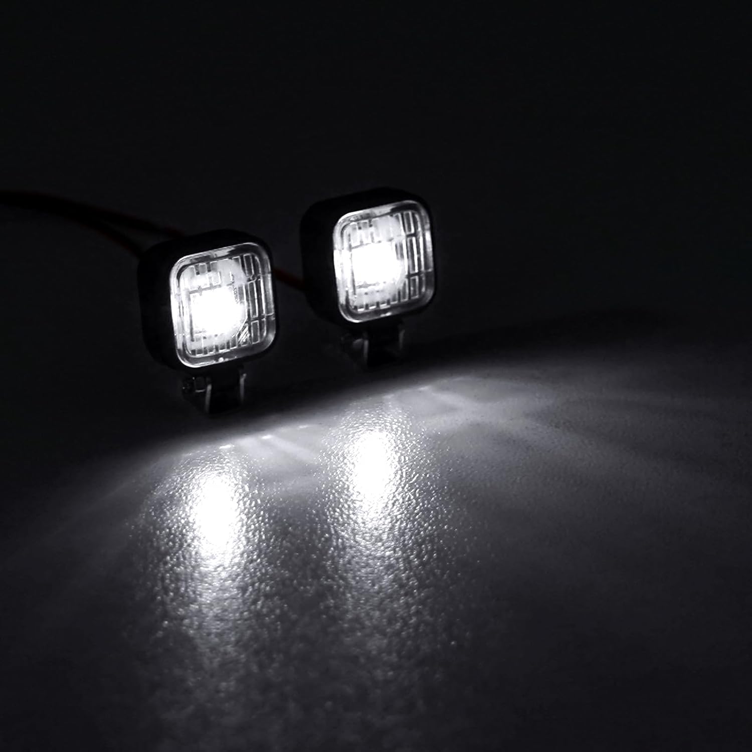 Alloggiamento delle luci in plastica con supporto metallico regolabile. Cavi delle luci sottili e non collegati, facili da far passare attraverso il corpo dell'auto. Include tubi termorestringenti per una soluzione di cablaggio ordinata e sicura. Aggiungi queste luci LED alle tue auto RC per un effetto di illuminazione realistico. Disponibile in due colori: bianco e giallo.