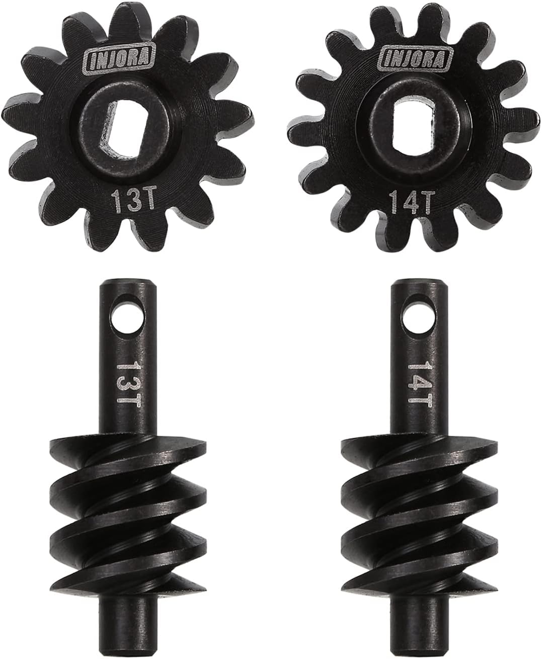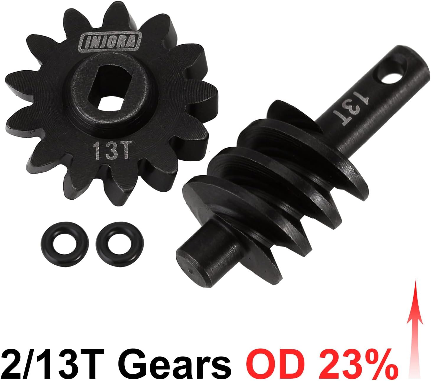 Ampia Applicazione-- tuta per camion della serie intera Axial SCX24, come C10 JLU Gladiator Bronco Deadbolt. Qualità Premium-- gli ingranaggi di aggiornamento in acciaio sono più durevoli, solidi e resistenti all'abrasione. Stile Libero -- sono disponibili tre tipi di ingranaggi, il conteggio dei denti è inciso sul pignone per una facile identificazione. Nuovi Aggiornamenti-- rispetto all'originale SCX24 16T, gli ingranaggi overdrive 2/12T possono aumentare la velocità di circa il 33%, gli ingranaggi overdrive 2/13T possono aumentare la velocità di circa il 23%, gli ingranaggi overdrive 2/14T possono aumentare la velocità di circa il 14%. Prestazioni Eccellenti-- i differenziali anteriore e posteriore ospitano ciascuno una vite senza fine e una configurazione a vite senza fine per trasferire la potenza agli assi e creare una maggiore altezza da terra.