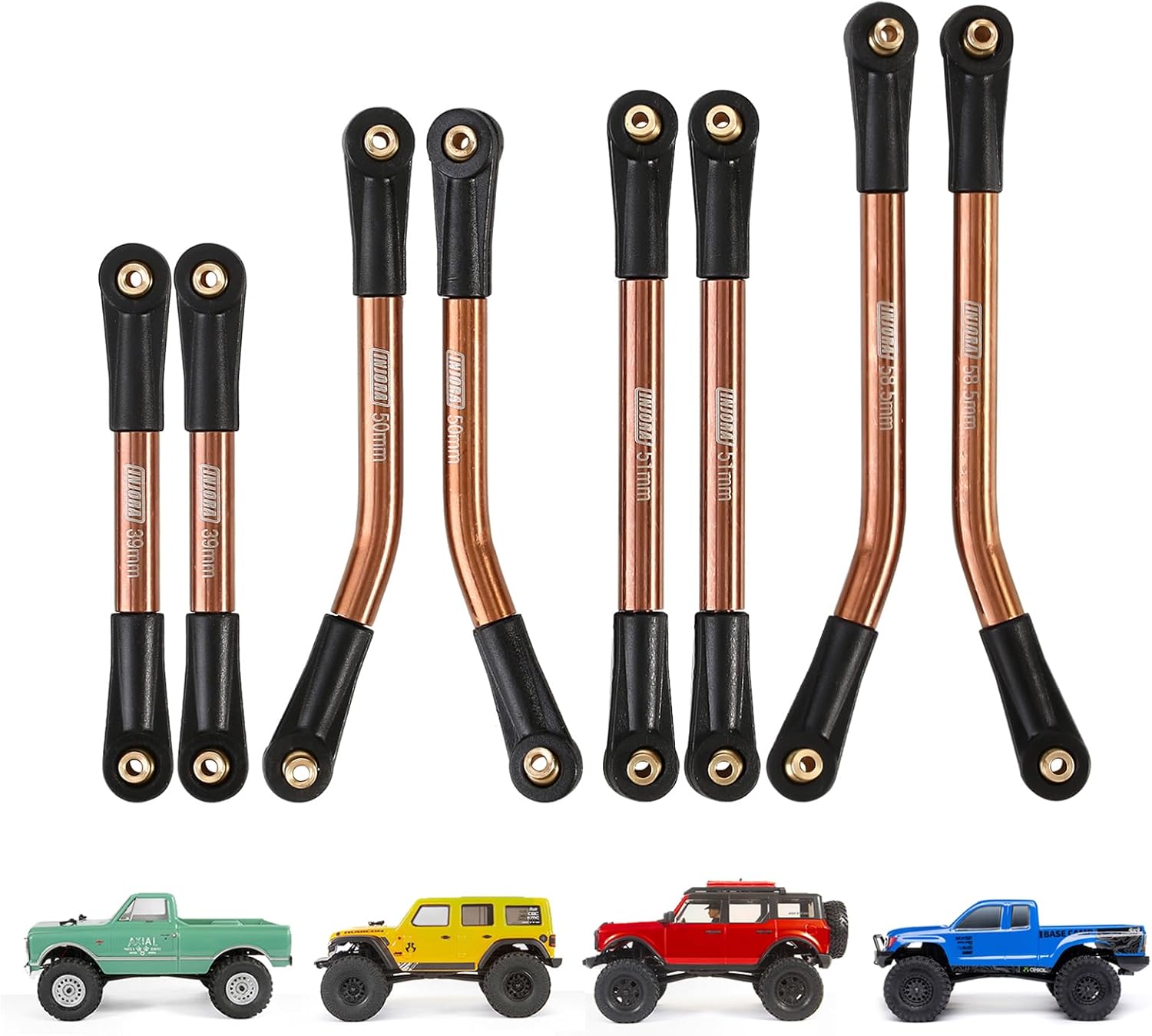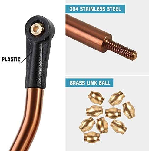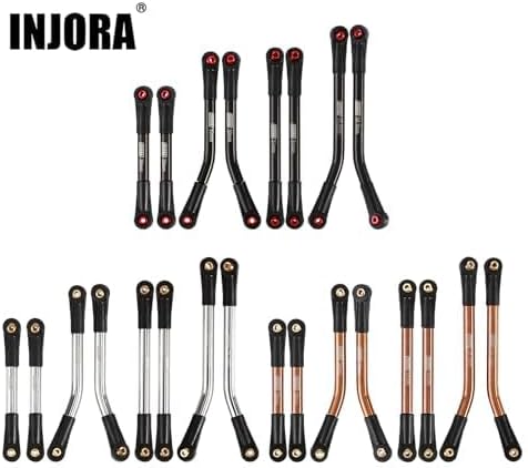 Estremità stelo in plastica, sfere girevoli in ottone/alluminio, realizzate in acciaio inossidabile 304, di alta qualità e resistenti, migliorano i dettagli dell'asta ma hanno comunque un prezzo accessibile. Inciso con il logo INJORA per uno stile cool, anche con una garanzia di qualità esclusiva. Sostituire la biella di tipo Y originale dell'SCX24 per evitare l'attrito con l'albero di trasmissione e fornire una potenza di funzionamento più fluida. Un set di leveraggi ad alto gioco elimina l'avvolgimento dell'assale e l'inutile sterzatura dell'assale e fornisce maggiore spazio libero in salita Modelli applicabili: 1/24 RC Car Axial SCX24 C10 JLU Bronco