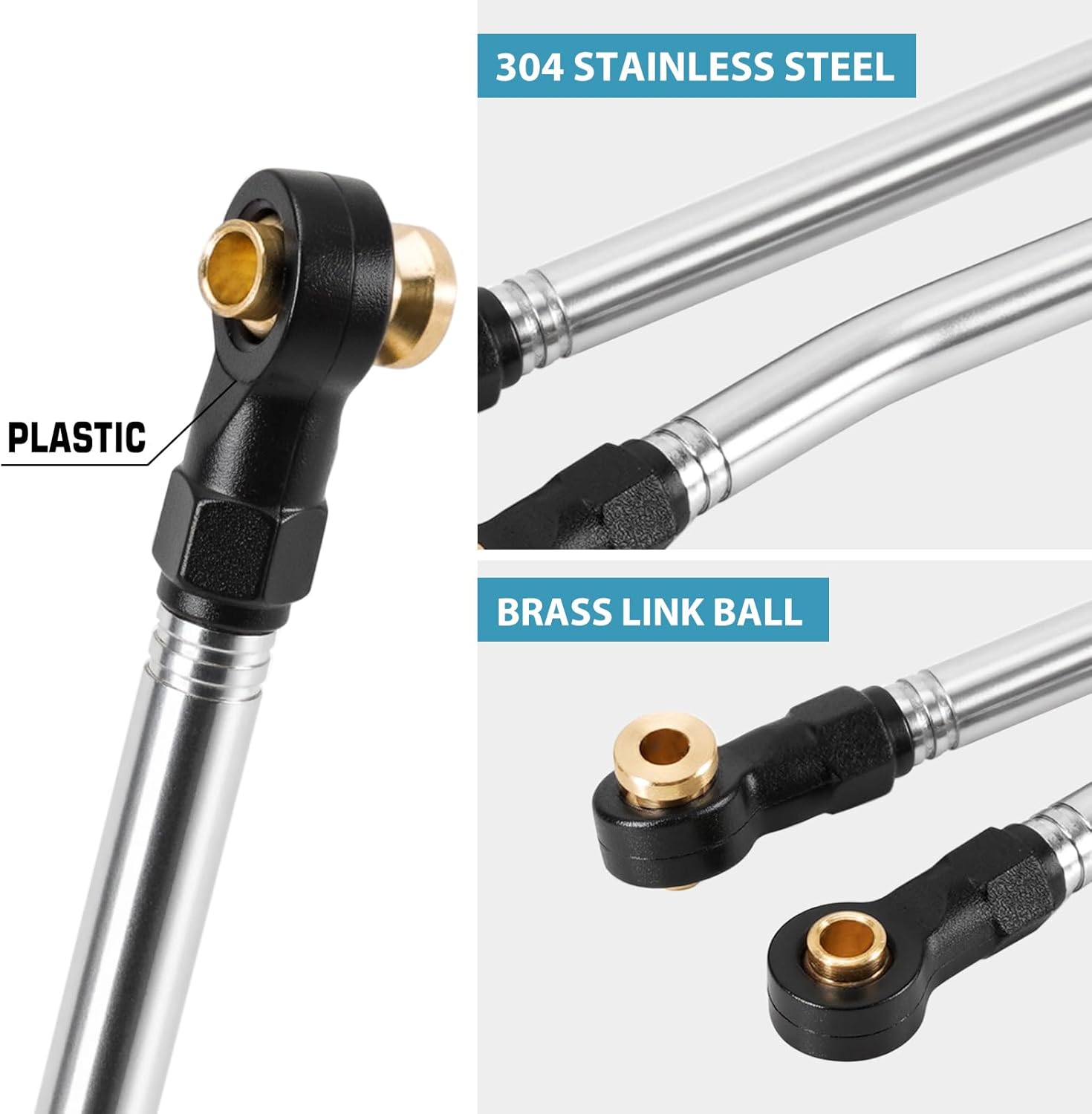 Le maglie piegate hanno una maggiore distanza nell'arrampicata. Realizzato in acciaio inossidabile 304 per una migliore durata. Estremità asta in plastica e sfere in ottone. Contenuto della confezione: 8 collegamenti ad alta distanza e 2 collegamenti dello sterzo. Vestito per aggiornamento 1/18 HPI Venture18.