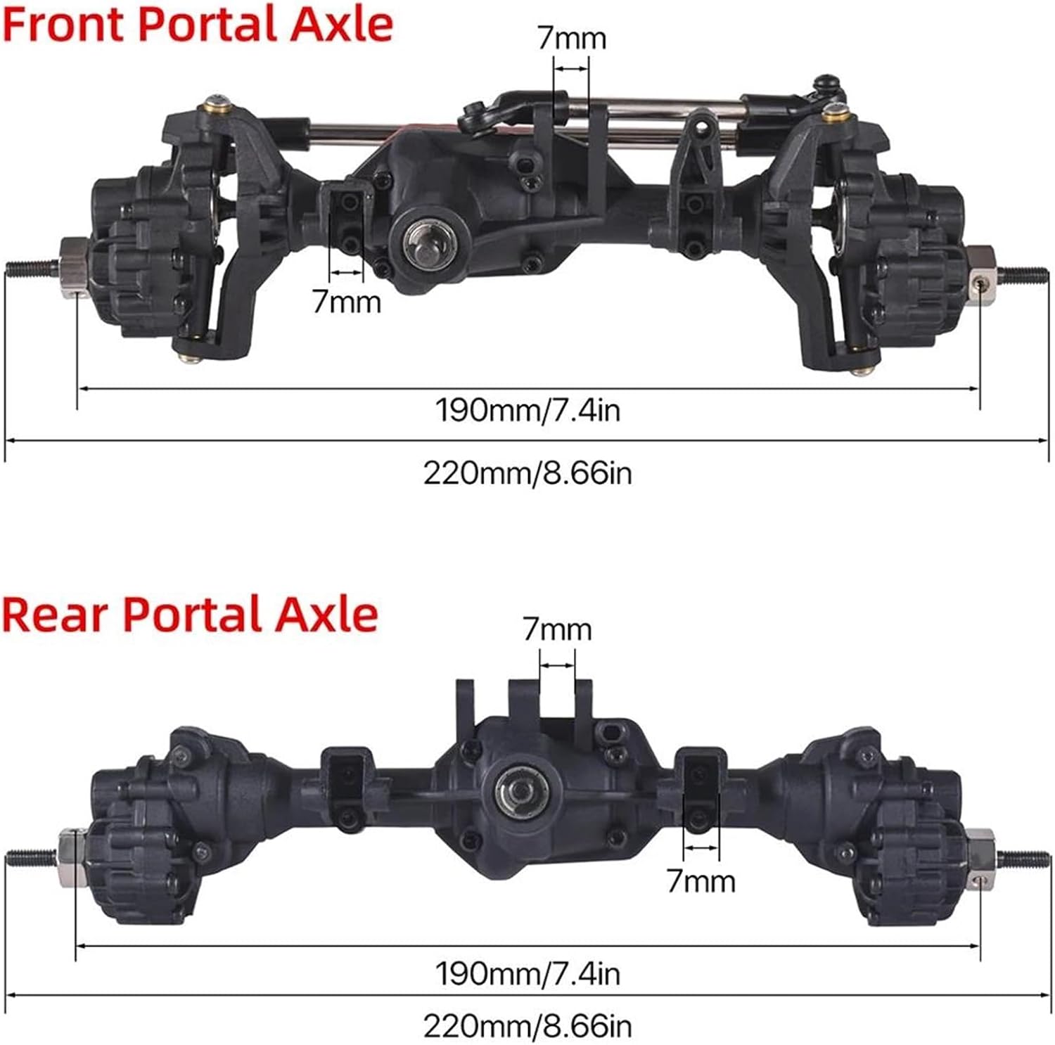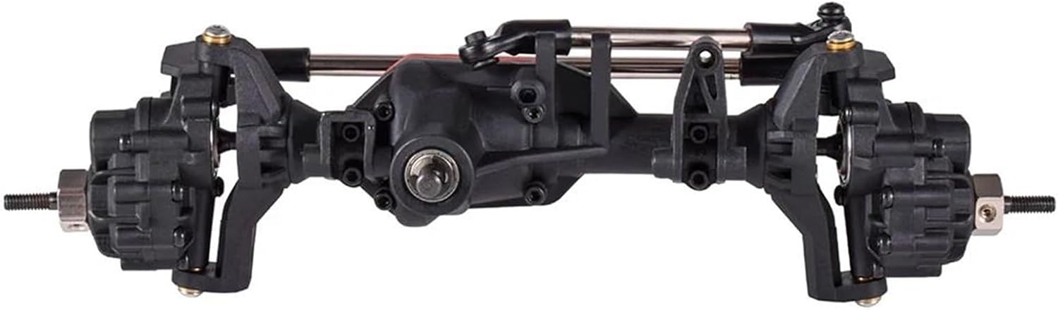 Per 1/10 RC Rock Crawler Car Sostituisci le parti di aggiornamento Assi portale anteriore e posteriore in metallo Ingranaggi interni e albero di trasmissione in metallo, cuscinetti di carico più grandi utilizzati attorno al set di ingranaggi per ridurre la flessibilità e creare una trasmissione più forte. permette di salire meglio e di ridurre il ribaltamento. Hanno anche un effetto drag break più forte in discesa. È un meraviglioso sostituto per l'aggiornamento di pezzi vecchi o rotti e può anche contribuire a garantire la conformità alle specifiche dell'attrezzatura originale. L'asse a portale anteriore e posteriore crea una grande altezza da terra sotto il centro dell'asse, che la e la.