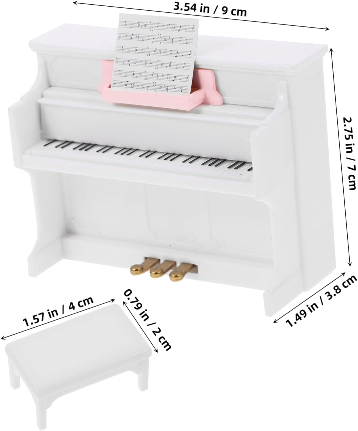 Decorazione per mini-case: puoi averne una visione confortevole, che può aggiungere un po' di atmosfera musicale alla stanza della tua casa delle bambole, miniature per case delle bambole Pianoforte per casa delle bambole: può essere utilizzato come oggetto di scena per scattare delle foto, mini strumento decorativo e bello Mini pianoforte: il design tradizionale con lavorazione eccellente rende il mini strumento musicale attraente, pianoforte da casa in miniatura Pianoforte per mini casa: realizzato con cura e delicato, con un alto grado di riproduzione realistica, impossibile da mettere giù, di mini strumento Di sgabello in miniatura: di strumento musicale classico in miniatura, creativo e realistico, superficie liscia, strumento per casa delle bambole