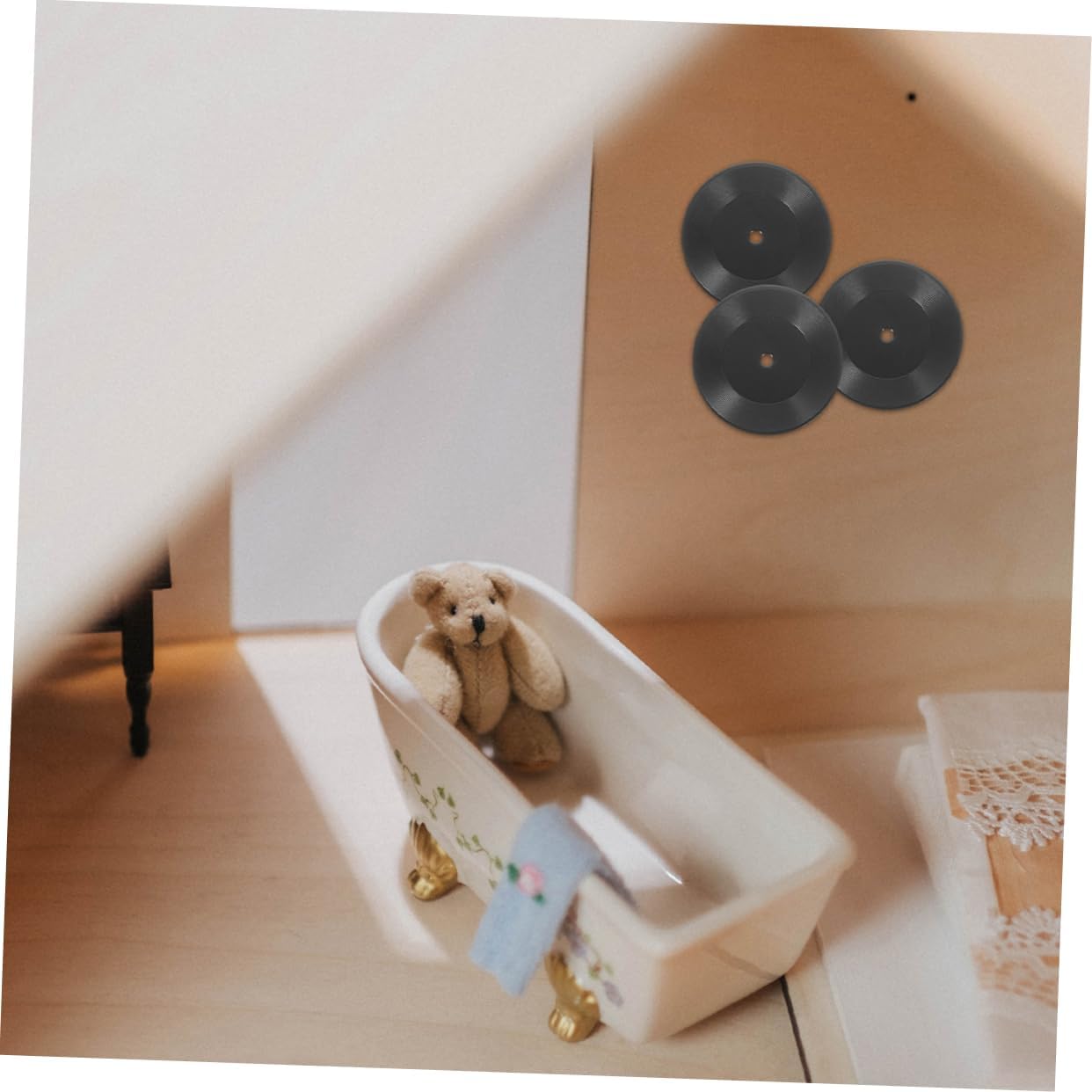 Pezzo da collezione unico: adatto a gusti diversi, questo aggiunge un tocco fai da te alla tua collezione per l'arredamento della casa e come , in miniatura per case delle bambole, decorazione per case delle bambole Portatile e compatto: le sue dimensioni ridotte consentono una facile trasportabilità, consentendoti di goderti la bellezza della musica ovunque tu vada, senza la necessità di attrezzature ingombranti, forniture per case delle bambole, accessori per case in miniatura Decorazione d'atmosfera: ideale per vari ambienti come case, uffici e caffè, crea una ricca atmosfera retrò, permettendoti di goderti il fascino della musica e il passare del tempo, mini ornamento da record paesaggistico, accessori per la casa delle bambole in miniatura Artigianato realistico: questo di disco in vinile in miniatura è realizzato con precisione, offrendo un aspetto realistico che cattura l'essenza dei veri in vinile, ideale per gli appassionati di musica, mini disco fonografico, accessori per elettrodomestici Dettagli realistici: questo di disco in vinile in miniatura è progettato con dettagli squisiti, offrendo un aspetto realistico che cattura il fascino dei veri in vinile per gli amanti della musica, giocattolo in miniatura da scrivania, disco fonografico per casa delle bambole