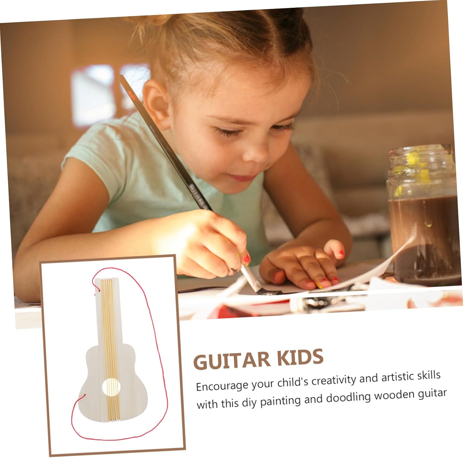Facile da trasportare: le sue dimensioni ridotte e il design leggero lo rendono comodo da trasportare per i , pratico per attività musicali ovunque, artigianato con chitarra in legno, chitarra fai da te Promuove le capacità artistiche: la funzione di pittura fai da te incoraggia i a esplorare il loro lato artistico e a creare chitarre per , instrastamnt musicale fai da te Applicazione versatile: adatta per l'uso in case, asili e altri ambienti, questa chitarra aiuta i ad apprezzare la musica mentre sviluppano le loro abilità, chitarra in legno, chitarra per piccoli A misura di : progettata specificamente per i , questa chitarra è facile da maneggiare e suonare, il che la rende un'ottima introduzione alla musica, ukulele per , chitarra per Educativo e divertente: ideale per l'ambiente domestico che per quello dell'asilo, questa chitarra offre ai un modo divertente per avvicinarsi alla musica, alla pittura per chitarra, alla pittura per chitarra per