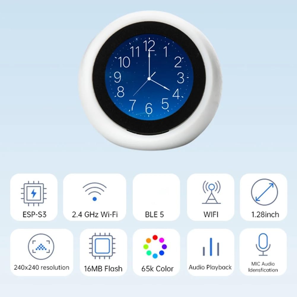 4. Supporto multilingue globale: vocale AI supporta più paesi e regioni, coprendo un'ampia gamma di gruppi di utenti. 1. Processore ad alte prestazioni: adotta un microprocessore dual core con una frequenza di clock massima di 240 MHz, garantendo il funzionamento fluido di attività di intelligenza artificiale complesse. 2. Funzioni diversificate: supporta il dialogo AI con Xiaozhi e può essere utilizzato anche come orologio da tavolo, lettore GIF, con un gameplay ricco per soddisfare diverse esigenze di utilizzo. 3. Schermo di visualizzazione ad alta risoluzione: dotato di schermo da 1,28 pollici con una risoluzione di 240x240, l'effetto di visualizzazione è e delicato. 5. Comunicazione wireless e supporto per modelli dimensioni: supporta Wi-Fi a 2,4 GHz e Bluetooth 5.0 (LE), può eseguire più modelli dimensioni con intelligenza artificiale avanzata e fornire un'esperienza interattiva intelligente e potente; Questo è assistente desktop che utilizza ESP32S3N16R8 e può eseguire l'intelligenza artificiale Xiaozhi per conversazione. È anche un elemento per desktop che può gestire orologi, GIF video e offre diverse opzioni di gioco.