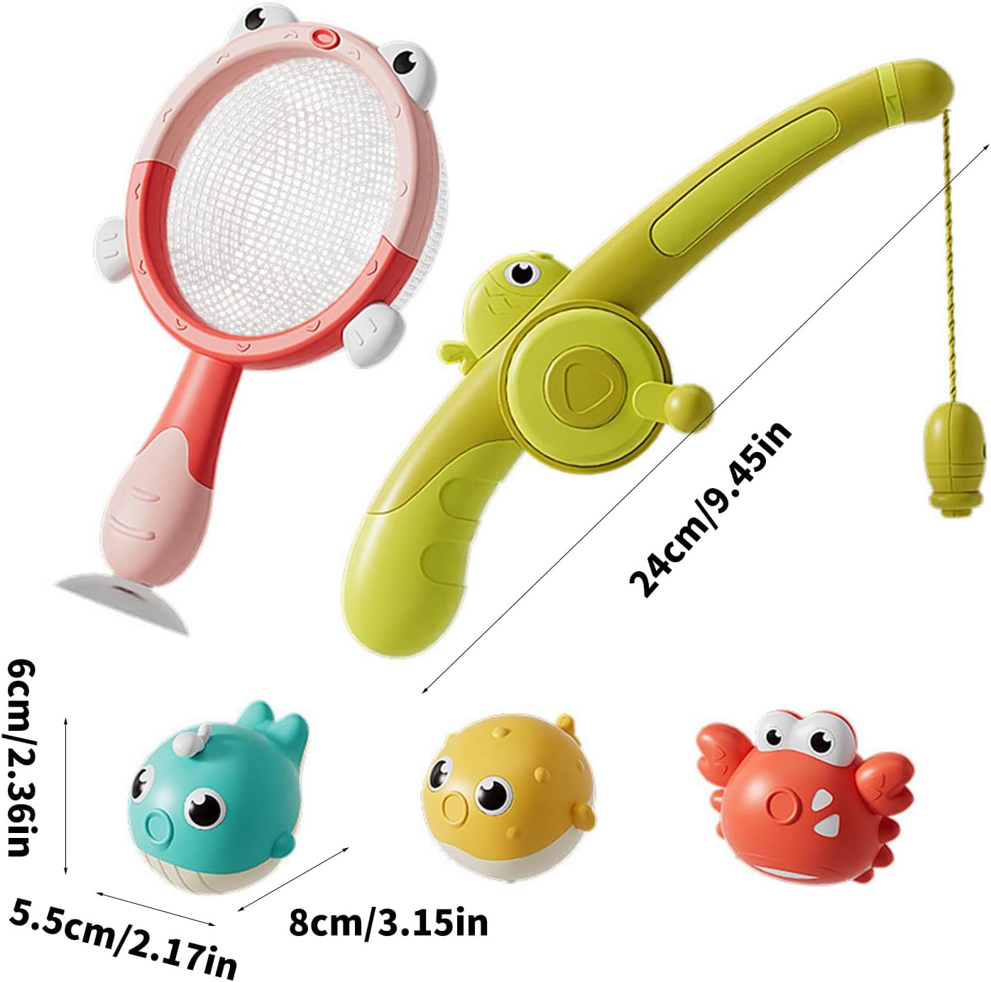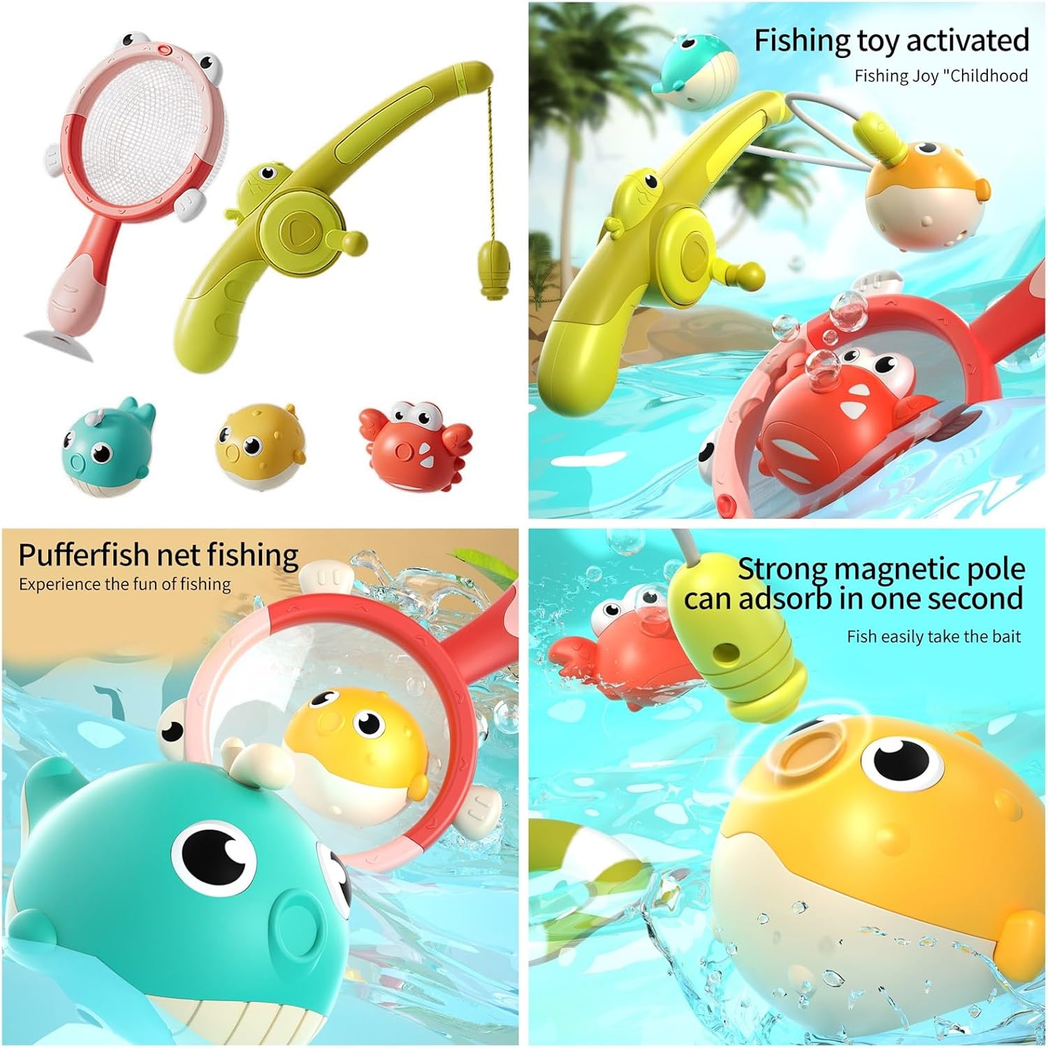 Migliora il divertimento del bagno con canne da pesca e pesci modellanti, stimola la coordinazione occhio-mano dei bambini risolvendo i problemi di avversione al bagno Ideale per giochi d'acqua interattivi della vasca da bagno di casa, piscine gonfiabili o schizzi all'aperto durante il tempo di legame della famiglia Per i genitori che cercano un giocattolo educativo coinvolgente per bambini dai 3 anni in su che amano le tradizionali routine da bagno In primo piano 3 modello di pesce, canna da pesca e bel design utilizzando materiali ABS amichevoli per un uso duraturo Trasforma il tempo del bagno in un'avventura subacquea fantasiosa per bambini e bambini per esercizi di abilità motorie finr