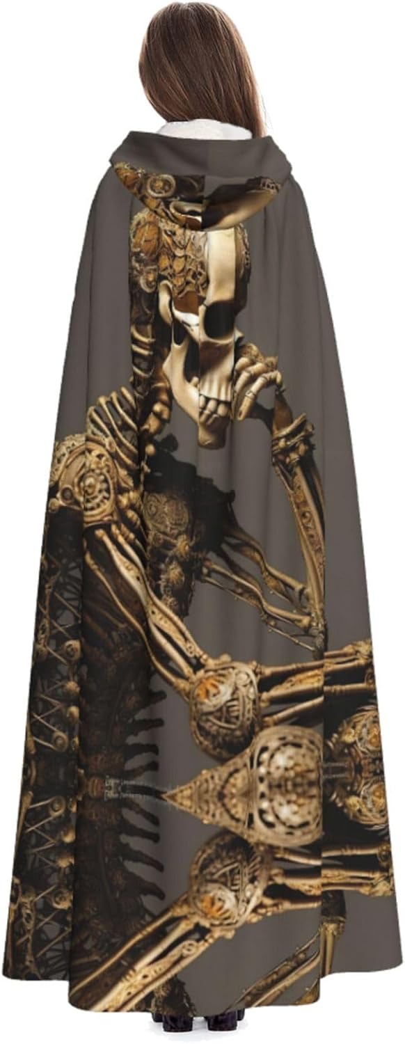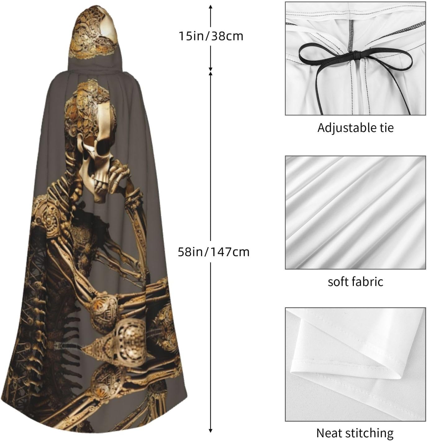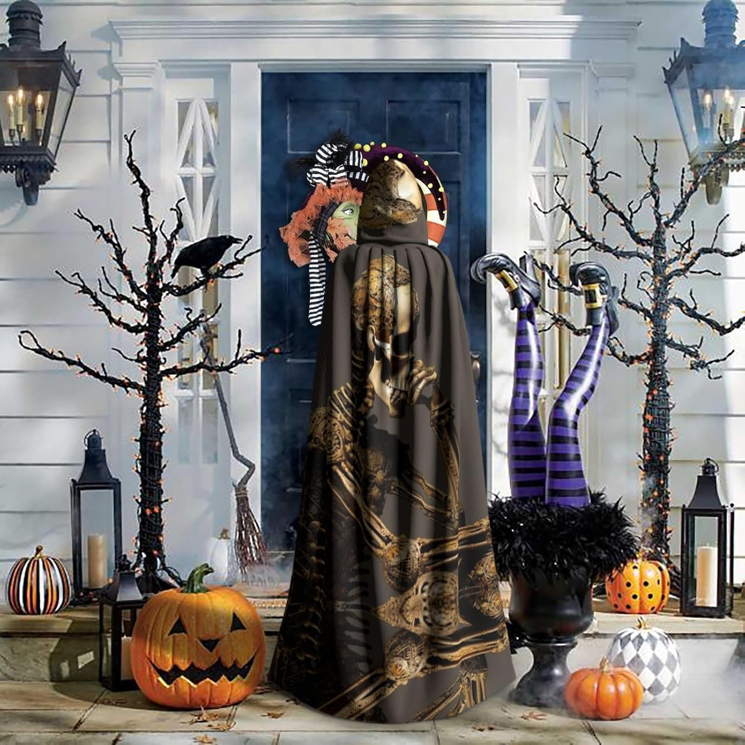 Interessante mantello con cappuccio scheletro unisex Halloween Natale mantello vampiro mago vestaglia costume cosplay