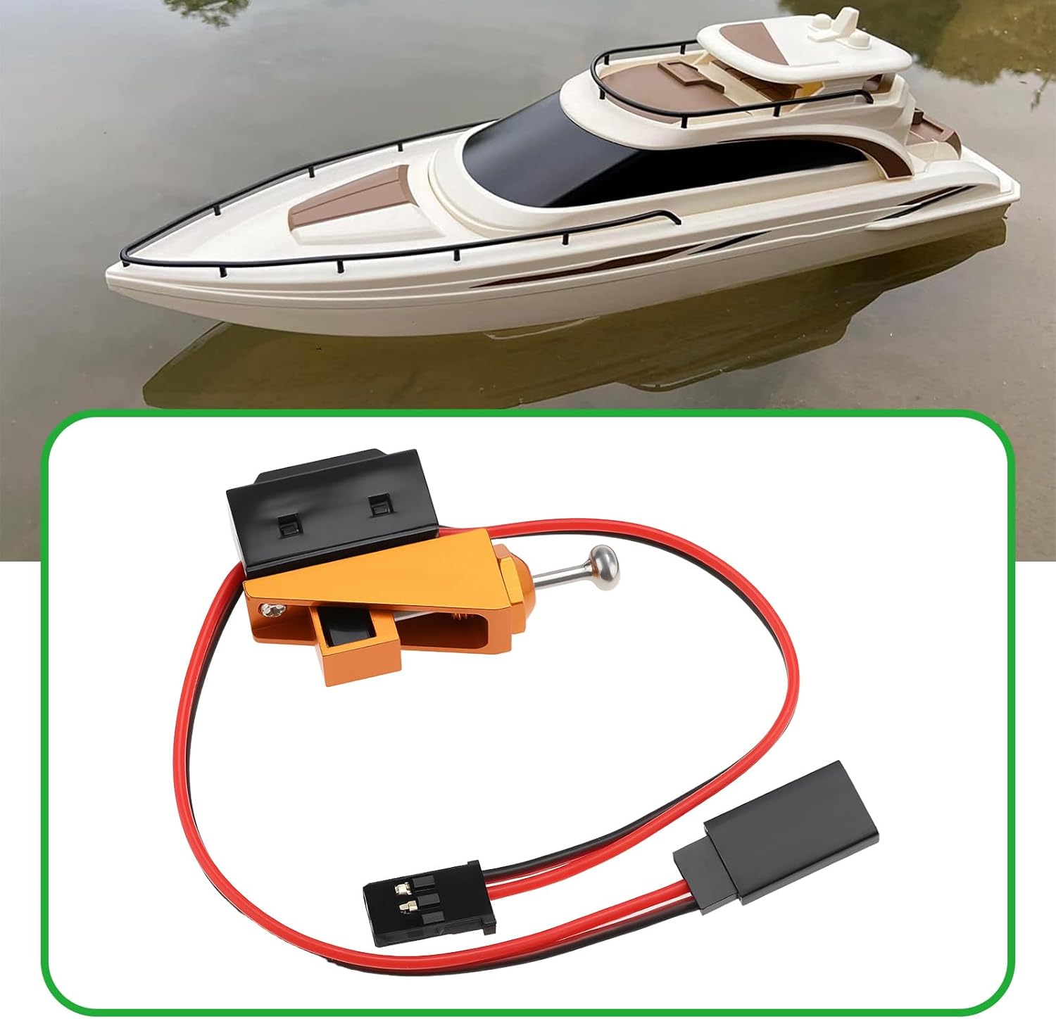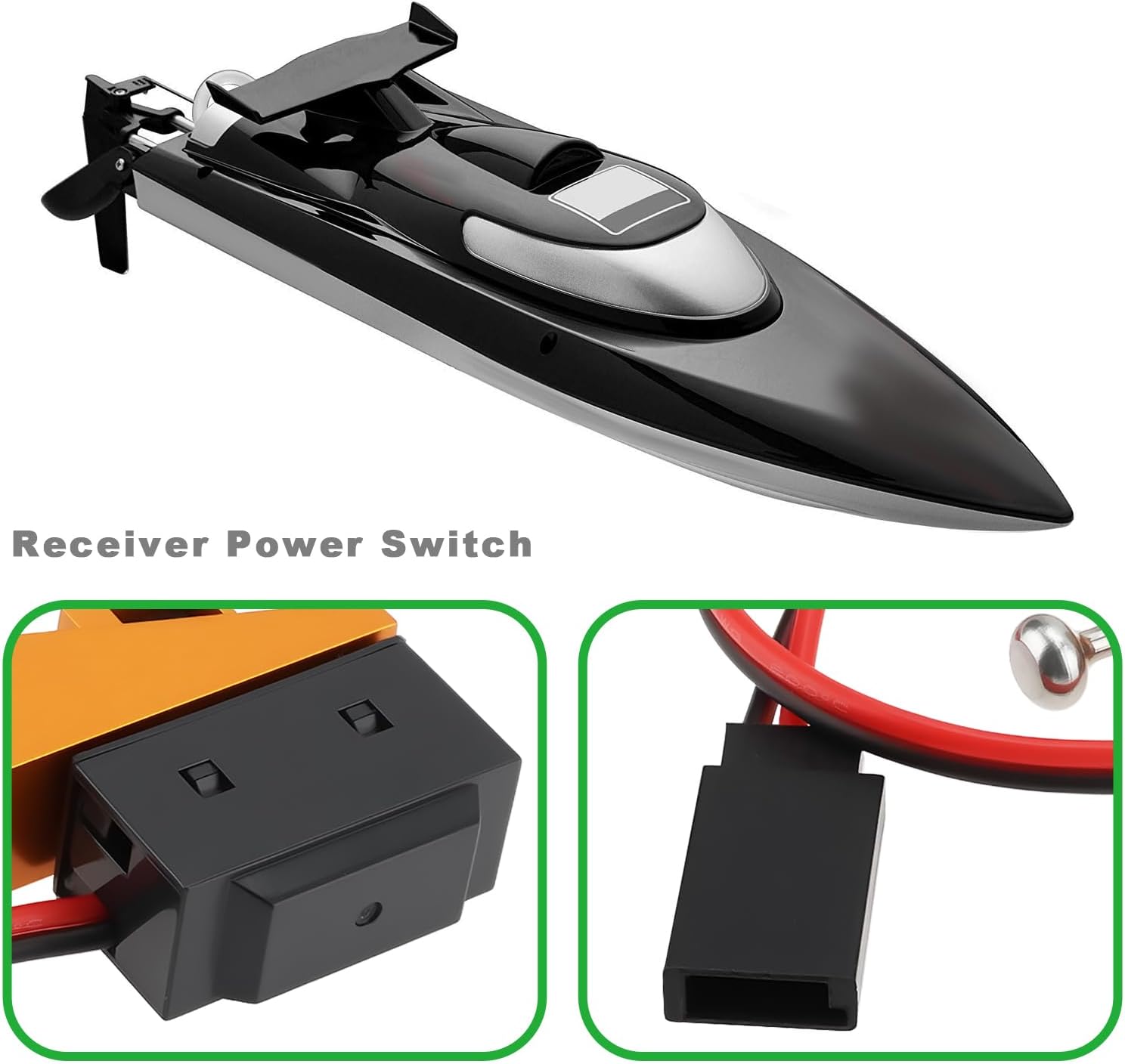 Funzione del prodotto: controllo dell'alimentazione del modello di telecomando, come interruttore on/off, utilizzato per collegare il regolatore elettronico di velocità, la batteria e il ricevitore, per ottenere l'accensione e lo spegnimento del modello con un clic, evitando frequenti collegamenti e scollegamenti delle batterie. Compatibilità: questo prodotto è adatto per imbarcazioni telecomandate a nitro/benzina ed è adatto per modelli con telecomando elettrico/carburante, come barche da corsa, camion corti, macchine da arrampicata, ecc. Supporta una corrente massima di 5 A e una tensione di 12 V, che soddisfa i requisiti di alimentazione della maggior parte dei modelli di telecomando elettrici (come barche da corsa e veicoli fuoristrada) e garantisce una trasmissione stabile del segnale. Gestione semplificata del circuito: interrompe rapidamente l'alimentazione tramite un interruttore esterno, utile per uno spegnimento sicuro durante la manutenzione o il trasporto e protegge il ricevitore da danni accidentali da cortocircuito. Materiale del prodotto: questo prodotto è appositamente progettato con materiali in plastica e alluminio, con una lunga durata e non facile da danneggiare.