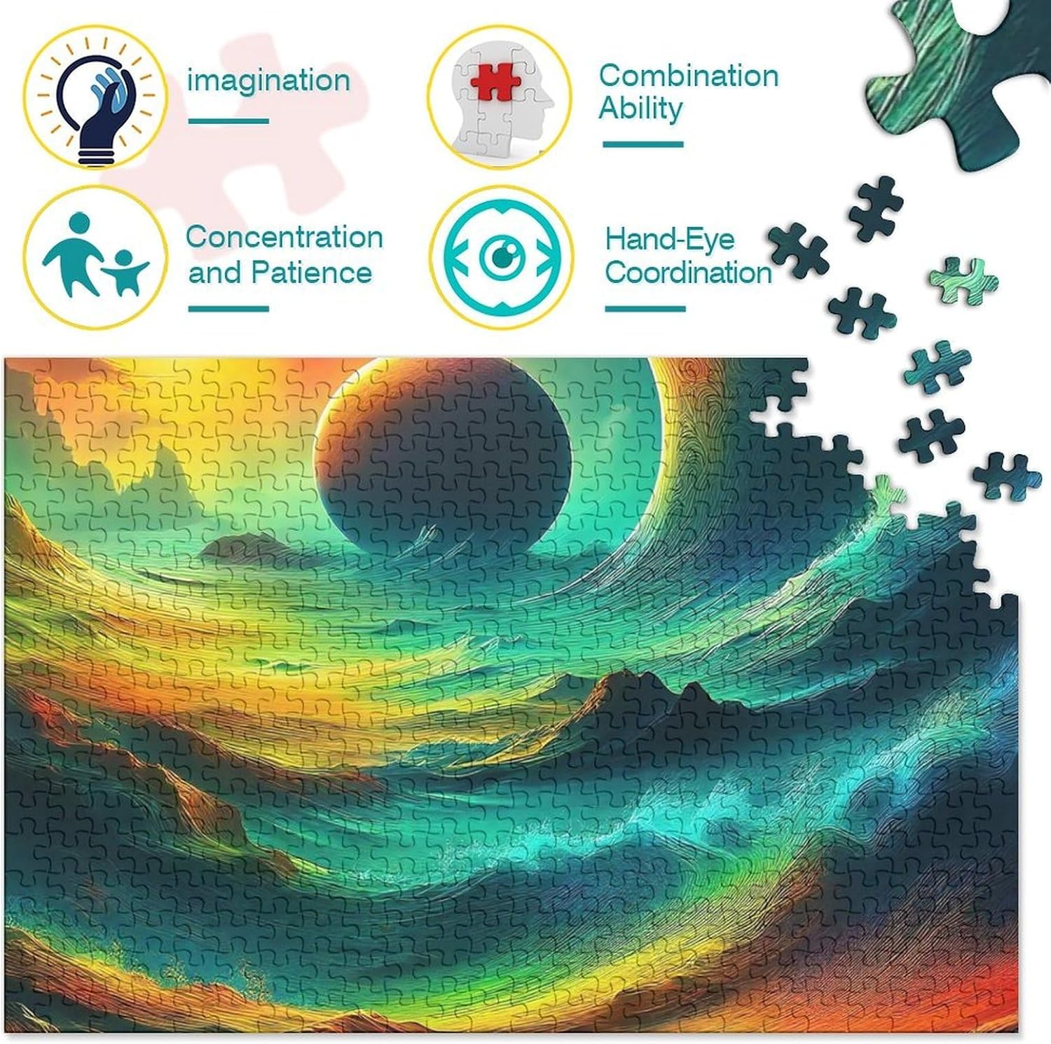 🌸GIOCHI PER ADULTI: una sfida emozionante da regalare a tutti li appassionati di puzzle e amanti dell'arte, ideale per uomo, donna o ragazzi; i puzzle aiutano a esercitare la memoria, migliorano la concentrazione e stimolano l'intuizione 🌸QUALITÀ PREMIUM: il massimo del divertimento con prodotti di altissima qualità in termini di materiali, motivi e design; realizzati in legno tagliati con fustelle fatte a mano, per un risultato impeccabile 🌸Buon regalo: il science fiction puzzle finito misura 70x50cm/1000pcs una volta completato. I migliori regali per ragazzi e ragazze dai 14 anni in su per compleanni o festività (Natale, Halloween, Ringraziamento, ecc.) 🌸Concediti una piacevole pausa relax! La nostra linea di puzzle da Interstellar Ocean 1000 pezzi è il regalo perfetto per chi ama ritagliarsi un momento di svago e di relax mettendo alla prova le proprie abilità logiche e di concentrazione 🌸I nostri Puzzle ti offrono un'ampia scelta d'immagini capace di soddisfare i gusti di tutti: grazie alla qualità dei materiali riciclati, la robustezza e resistenza dei singoli pezzi insieme alla brillantezza dei colori, ti garantiamo un risultato impeccabile e privo di riflessi