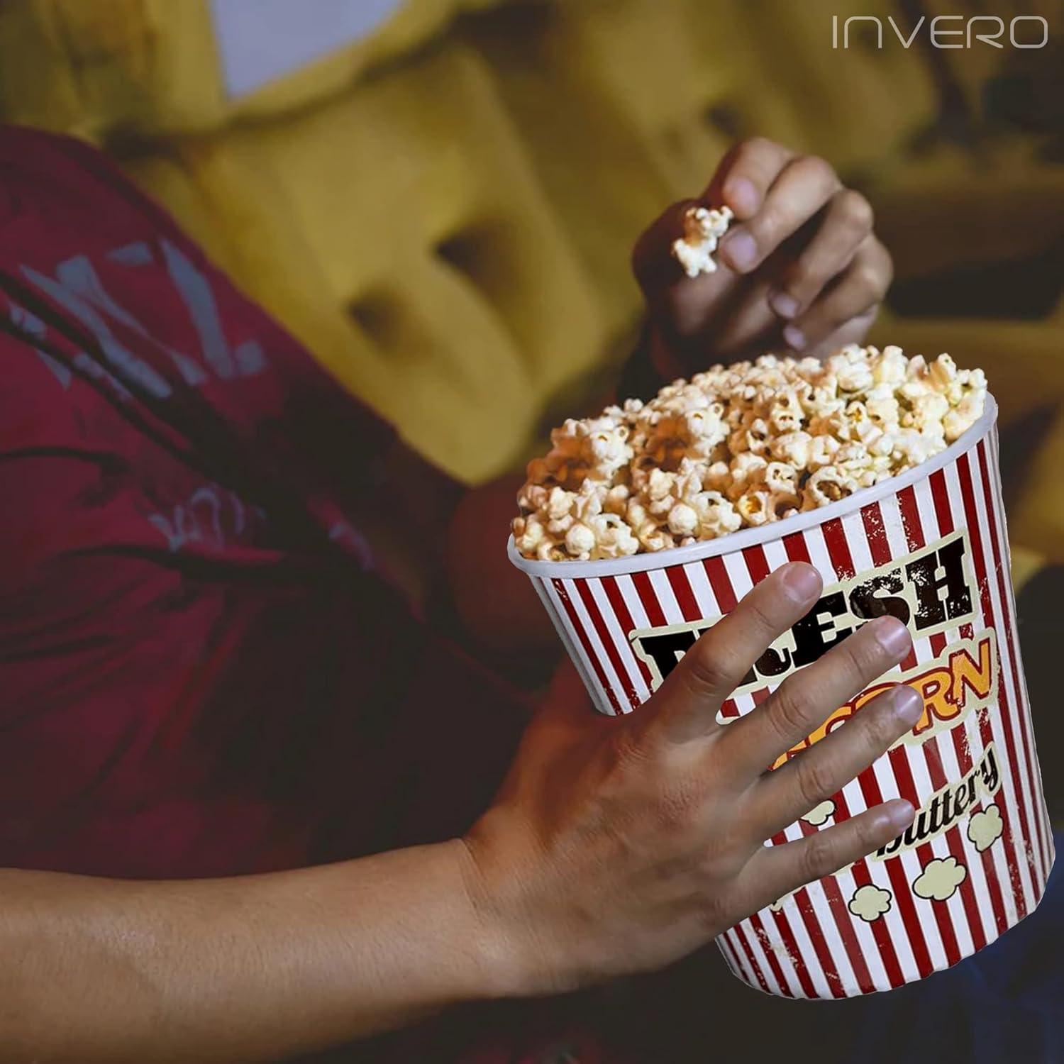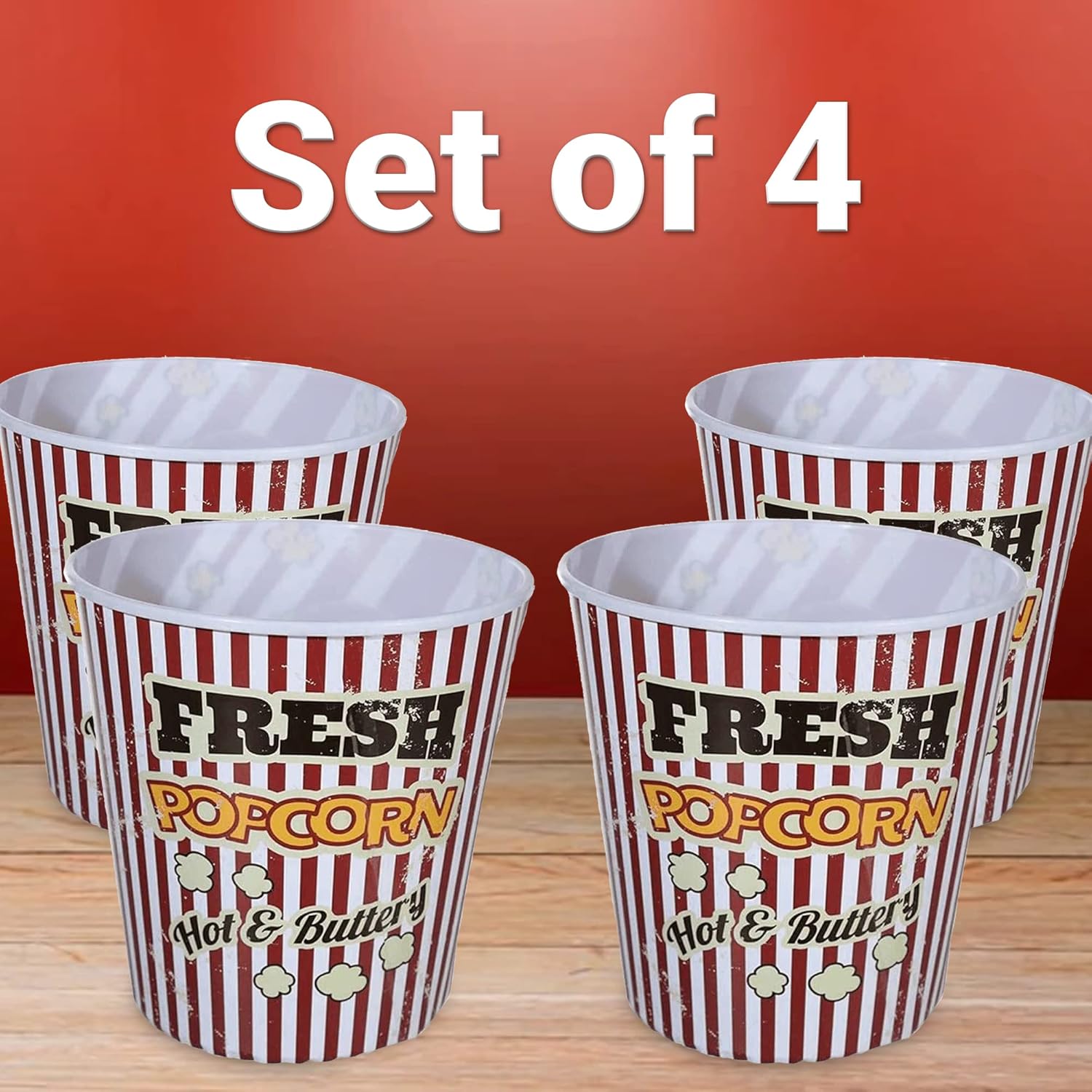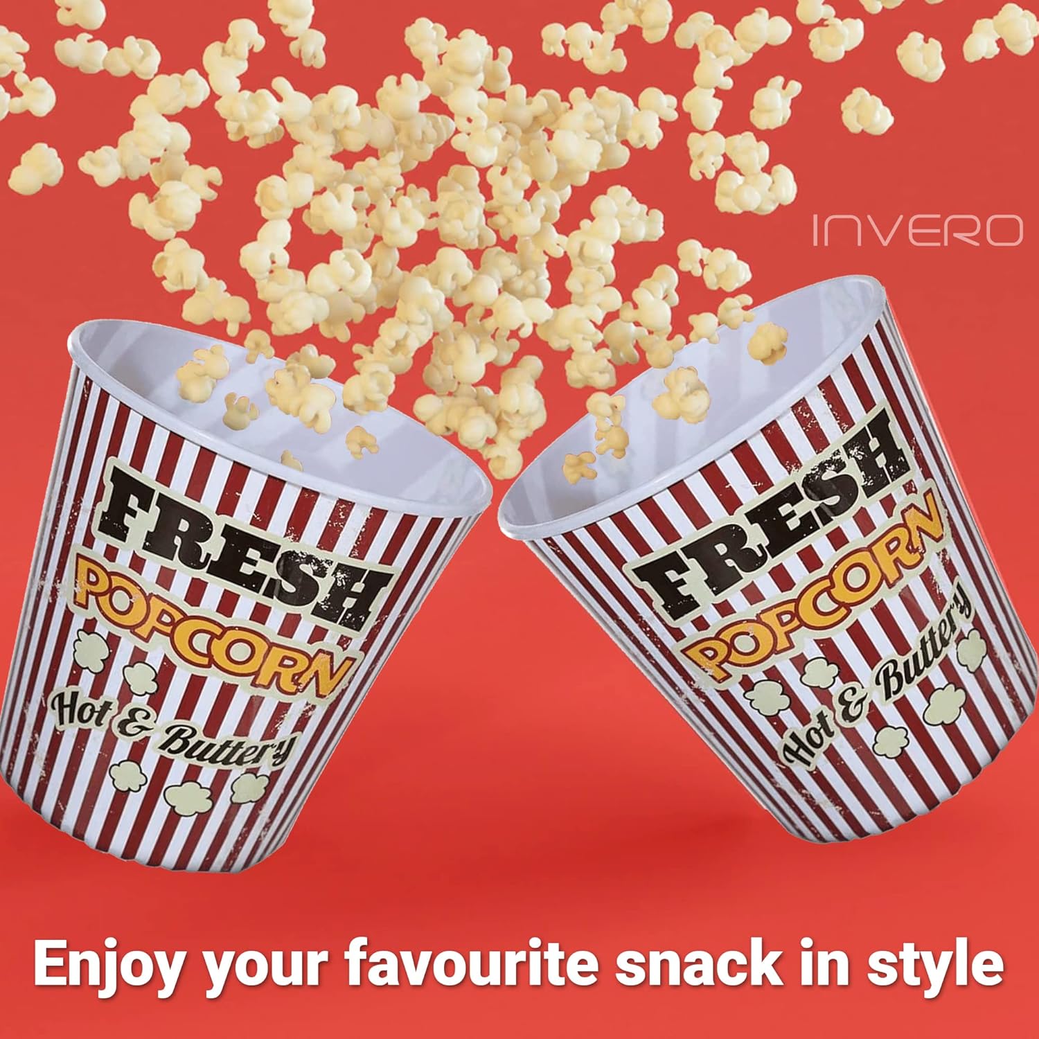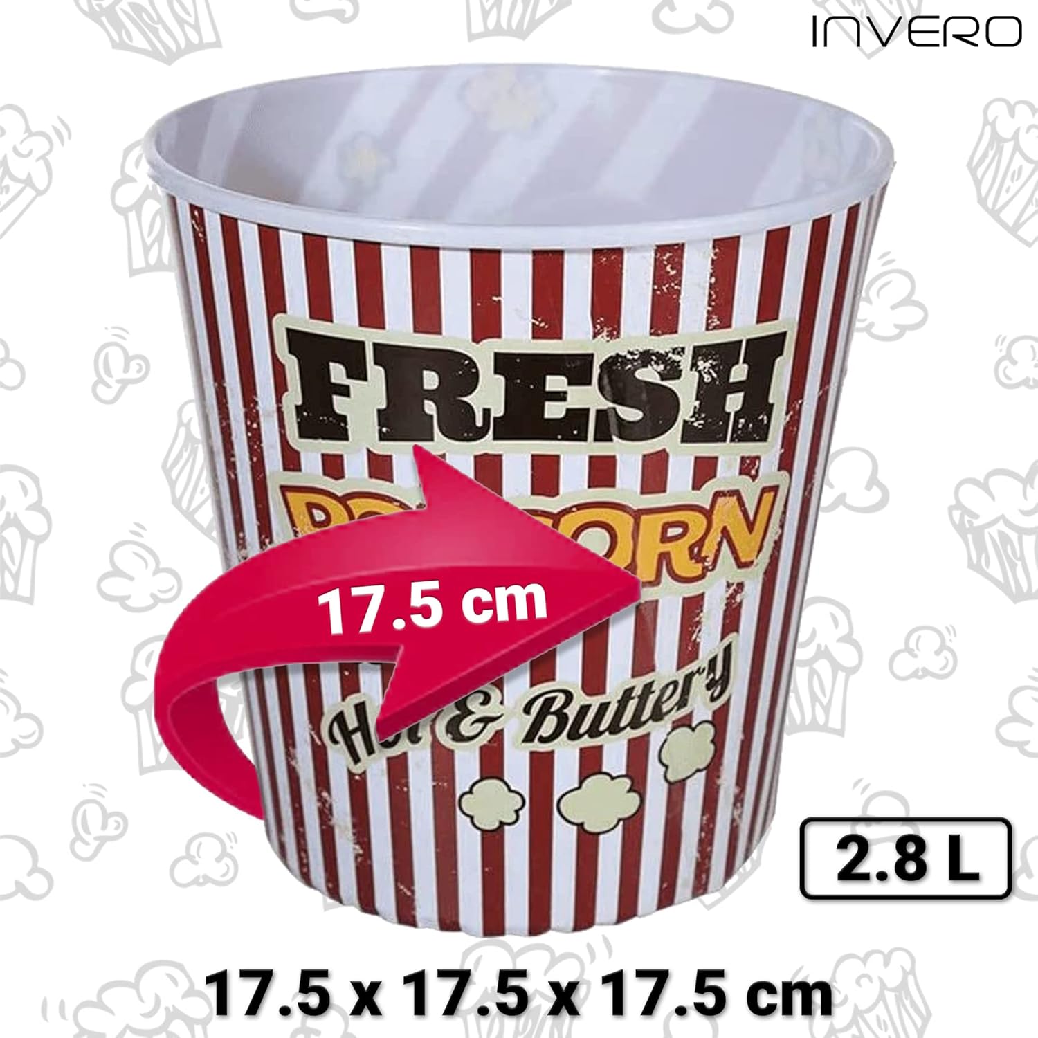 Perfetto per ogni amante dei popcorn. Ideale per tutta la famiglia e gli amici quando sono finiti. Il set include 4 secchi per popcorn. Accessorio indispensabile per gli amanti del cinema. Un buon film e una ciotola di popcorn appena fatti Essere verdi e smettere di usare prodotti usa e Questi contenitori sono realizzati in plastica resistente, progettati per essere riutilizzabili. Evita il fastidioso rumore delle borse per snack con questo guscio di materiale leggero. Materiale: plastica. Dimensioni: 17,5 x 17,5 x 17,5 cm.