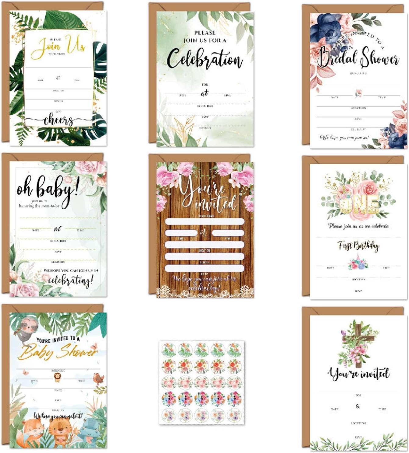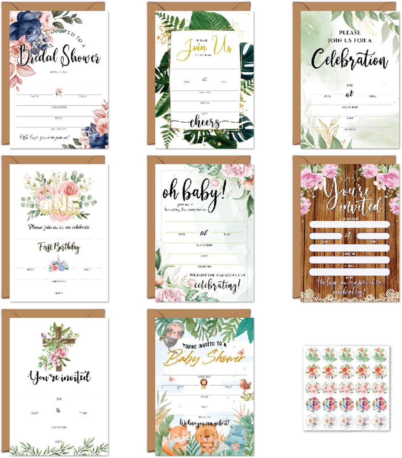 Adorable and Versatile Design: these invittation cards feature colorful and festive designs adatti per varie occasioni, including holidays, parties, gatherings, and events, adding charm and joy to any celebration Kit completo di invito: ogni set è dotato di buste abbinate e adesivi divertenti, rendendolo un pacchetto completo per invito e aggiungere un tocco personalizzato ai tuoi inviti Materiali di alta qualità: realizzati con cardstock di alta qualità, queste carte di invito durevoli resistono alla piegatura o all'insegnamento, ensuring a professional and polished presentation for your events Perfect for All Occasions: Whether it's a birthday, holiday parties, family gathering, or formal event, these cards are versatile and stylish enough to complement any celebre theme Incoraggia la connessione personale: The blank inside offer large space for writing heartfelt messages, fostering meaningful connections with guests through thoughtful and customized invitations