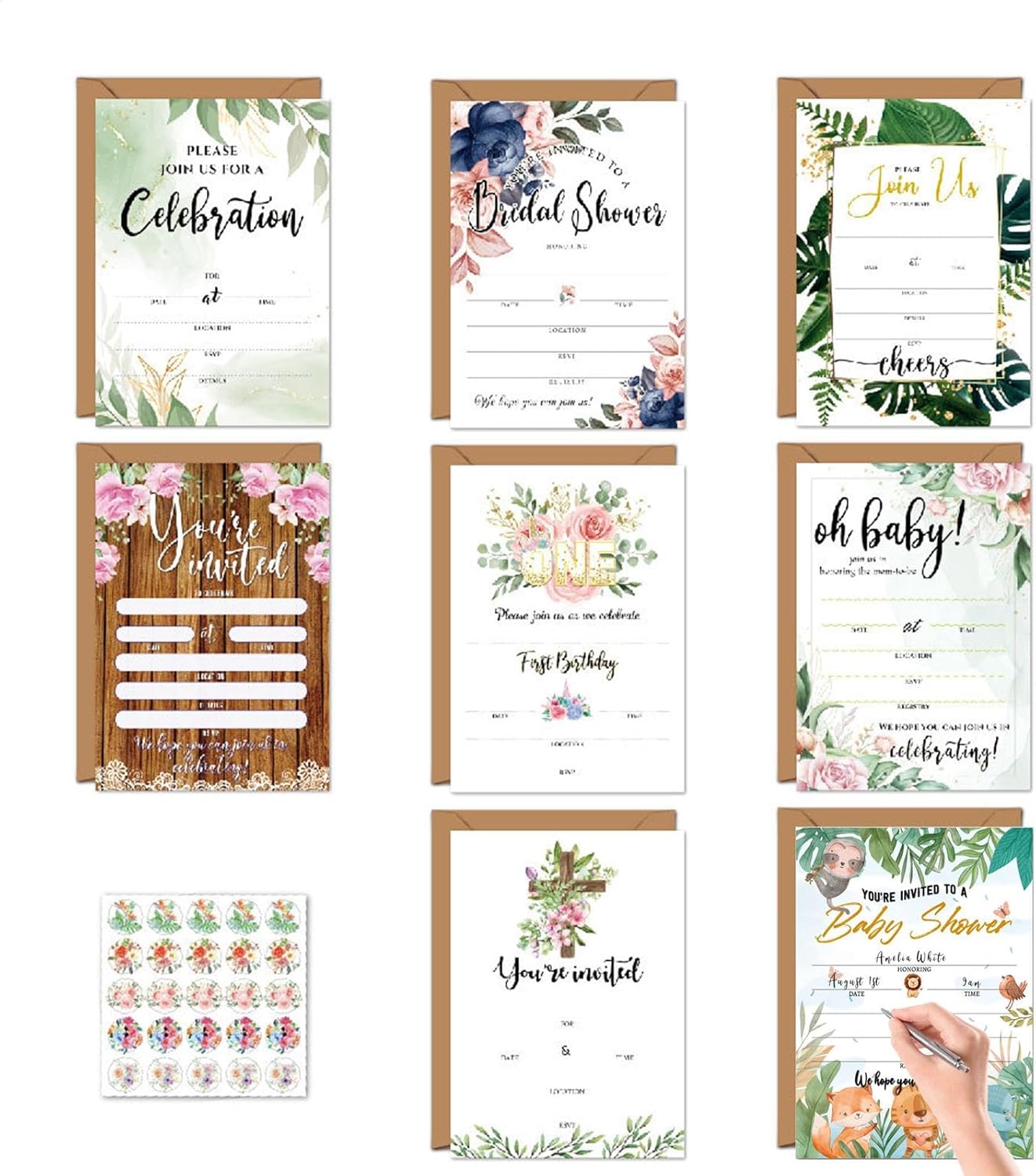Multipurpose Invitation Card Set: This invitation card set is perfect for any occasion, including holidays, parties, and gatherings Its versatile design suits a wide variety of celebrations, offering functionality and style Vibrant and Festive Designs: Featuring colorful and eye-catching patterns, these holiday invitation cards add a cheerful touch to your event invitations, making every recipient feel special and welcomed Complete with Envelopes & Stickers: Each set includes matching envelopes and decorative stickers, ensuring a polished and elegant presentation for your invitations while keeping them secure during delivery Premium Quality Material: Made from high-quality, durable cardstock, these multipurpose invitation cards are easy to write on and maintain their shape and texture, ensuring your invitations look impeccable Ideal for Personalization: With ample space for writing, these cute invitation cards allow you to customize messages, making each invitation personal and unique for your guests