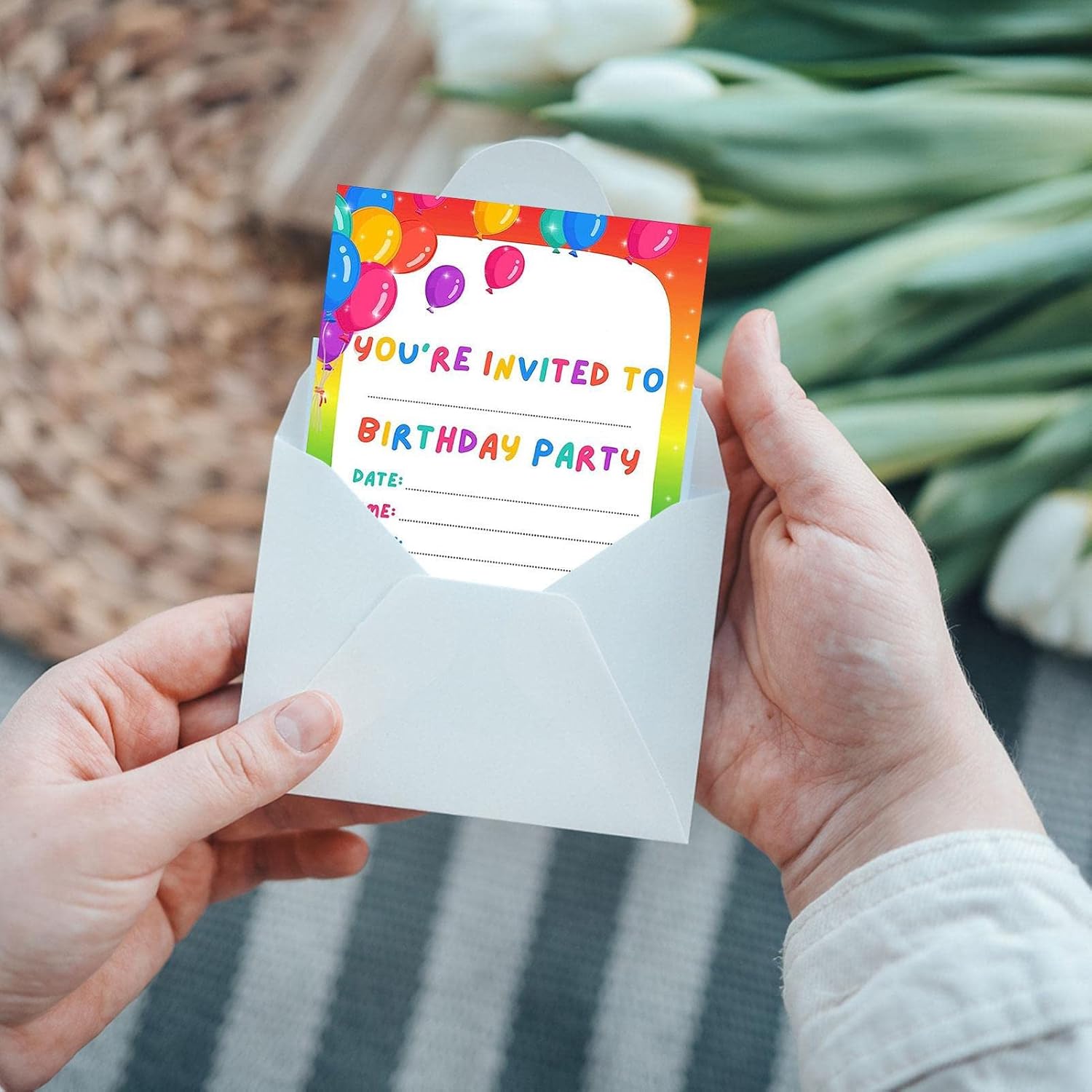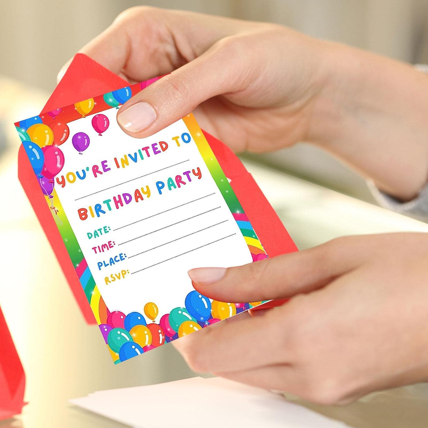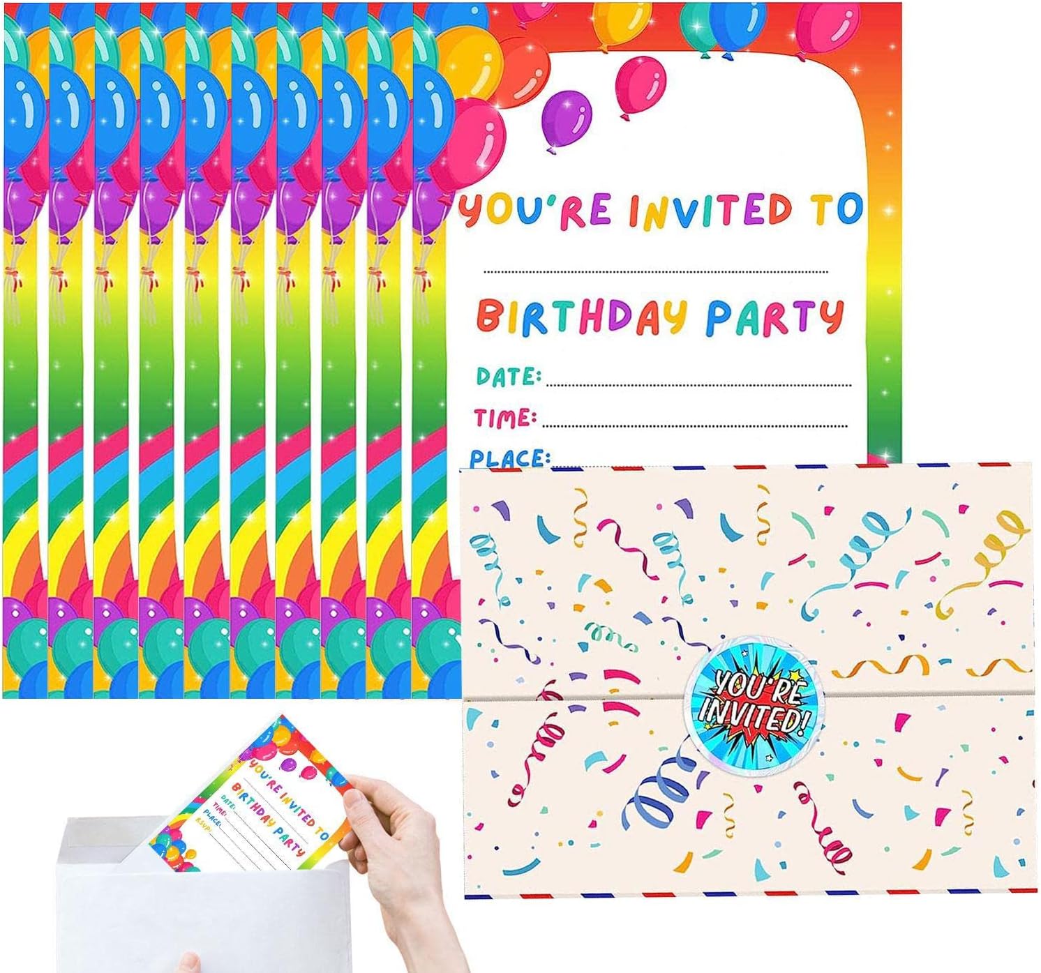 ⊕[Facile da usare] Molto comodo e pratico, la dimensione degli inviti alla festa è A5 e misura 145 x 105 mm, compreso lo spazio per scrivere il nome dell'ospite, la data, l'ora, il luogo e chi è il VP. ⊕[Design pieghevole] Possono essere piegati per sembrare una busta, gli inviti per feste di compleanno sono perfetti come inviti per feste di compleanno, design intelligente, stampa fronte-retro. ⊕[Artigianato eccezionale] Progettati nel fantastico stile "posta aerea", inviti di compleanno con design di coriandoli sul retro per una vera atmosfera di festa, i tuoi ospiti saranno felici quando riceveranno questi inviti. ⊕[Con adesivo sigillante] I biglietti d'invito includono l'adesivo olografico "SEI INVITATO", possono essere sigillati dopo la scrittura, includono 3 colori diversi, blu, arancione e giallo. ⊕[Design riutilizzabile] Gli inviti di compleanno per bambini sono facili da scrivere e piegare, il modo perfetto per invitare amici e parenti alla tua festa di compleanno speciale può essere riciclato.