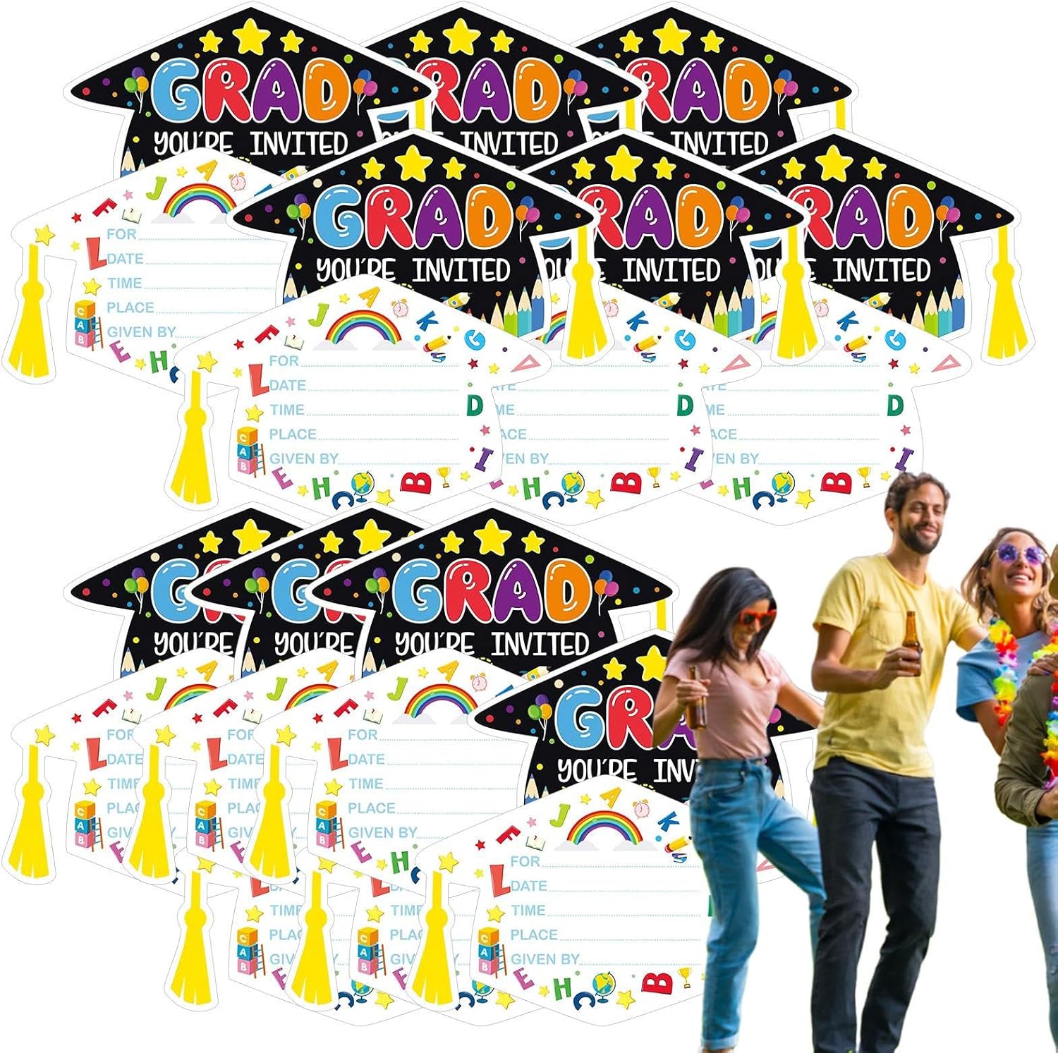 Design straordinario: presenta un modello squisito che crea un'atmosfera di festa allegra, appositamente progettata per i diplomi della scuola materna e primaria. Ideale per quelle occasioni speciali per rendere i festeggiamenti un'esperienza indimenticabile. Gli inviti sono progettati per essere funzionali ed esteticamente gradevoli. PRESENTAZIONE ECCELLENTE: Questi inviti combinano carta di alta qualità con una trama elegante, offrendo una sensazione delicata e un aspetto sofisticato. Garantiscono che la tua festa di laurea si distingua e venga ricordata con colori vivaci e un design accurato. Set di biglietti per occasioni speciali: contiene ventiquattro inviti pensati appositamente per lauree ed eventi simili. Il set semplifica il processo di invito degli ospiti e offre una soluzione flessibile per le diverse esigenze. Perfetto per rendere speciali le tue celebrazioni del 2025. Archiviazione rapida: gli inviti di laurea 2025 sono progettati per essere facili da usare e veloci da archiviare e distribuire. Offrono una dimensione media che è allo stesso tempo funzionale e facile da trasportare. Grazie alle loro pratiche dimensioni, puoi scrivere facilmente su questi inviti e portarli con te. Perfetto per celebrazioni indimenticabili nel 2025. Ideale per la diversità: perfetti per feste di laurea, cene di apprezzamento degli insegnanti e riunioni di compagni di classe, questi inviti offrono soluzioni pratiche che si adattano facilmente alle diverse esigenze degli eventi, rendendoli la scelta ideale per qualsiasi evento