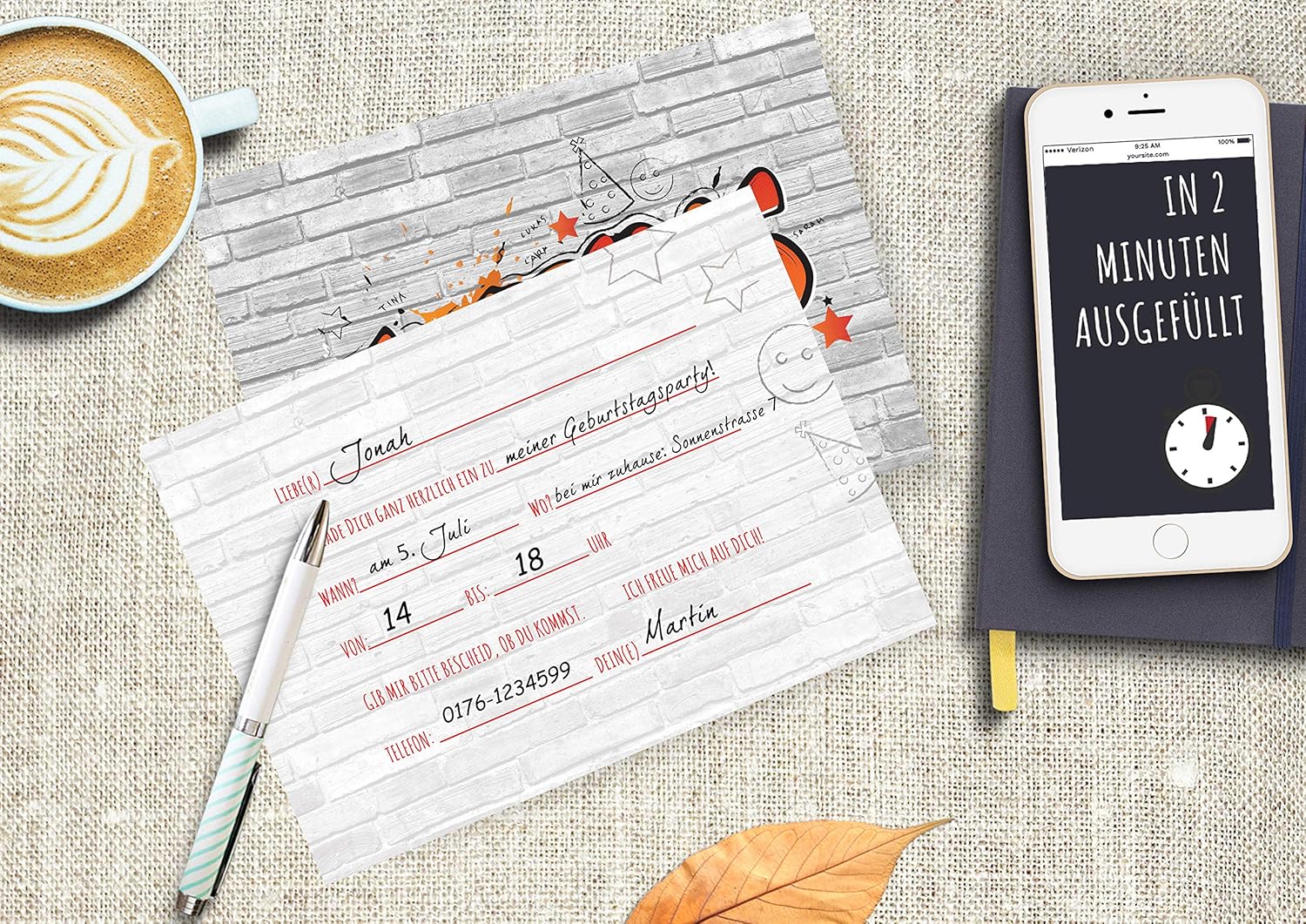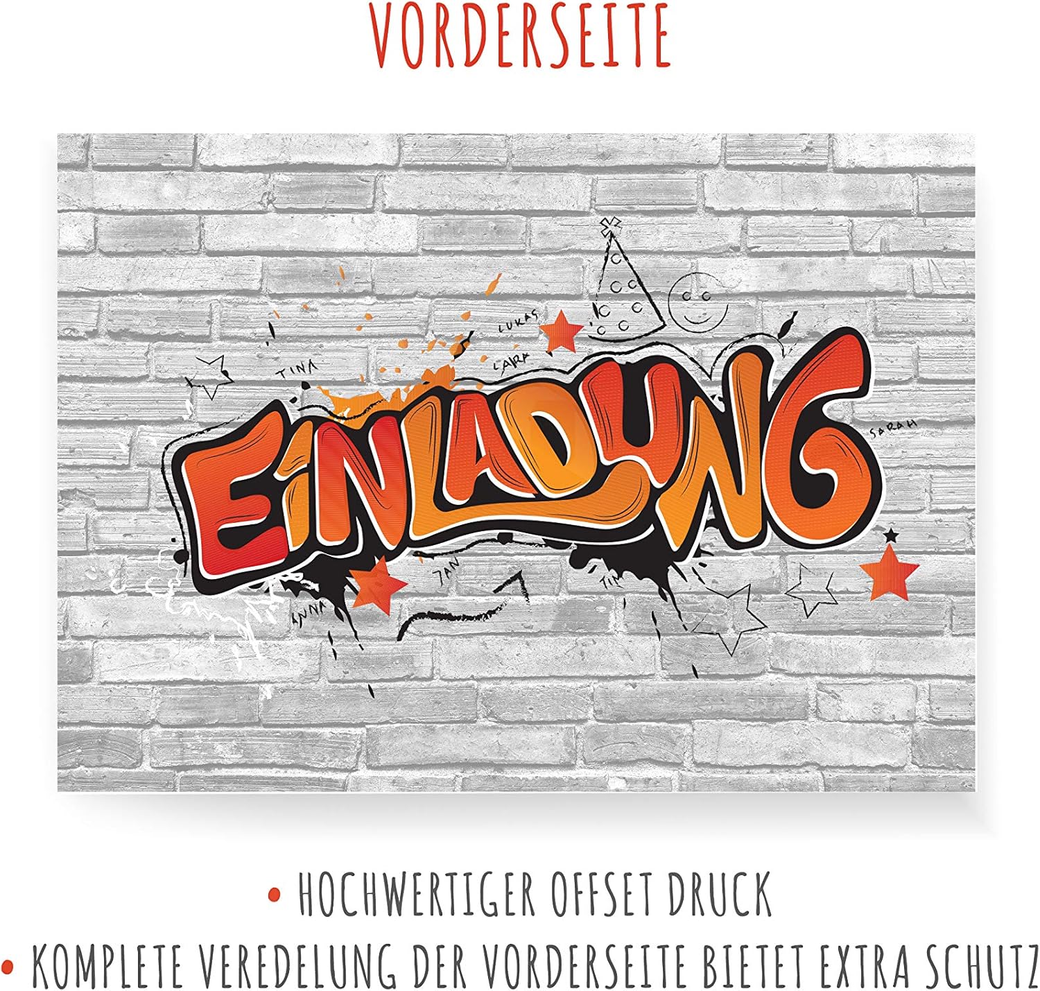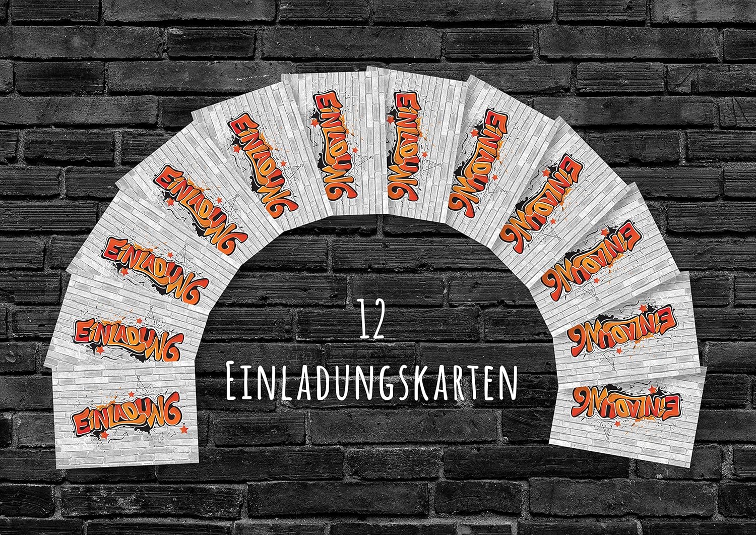 INVITO ALLA FESTA - Affinché la tua festa possa iniziare presto, abbiamo messo insieme un fantastico set di biglietti d'invito con graffiti. 12 BIGLIETTI D'INVITO - Con i biglietti d'invito alla moda in formato DIN A6 puoi invitare fino a 12 amici in un batter d'occhio. RISPARMIA TEMPO: nessuna creazione e progettazione di inviti dispendiose in termini di tempo. Nessun errore di ortografia. Grazie al testo da compilare già preparato, dovrai inserire solo i dati chiave più importanti. USI VERSATILI - Gli inviti con graffiti non sono adatti solo per i compleanni, ma anche per feste in discoteca, feste a tema, pigiama party, feste di laurea e molto altro ancora. AMBITO DI CONSEGNA - La fornitura comprende 12 biglietti d'invito con motivo graffiti.
