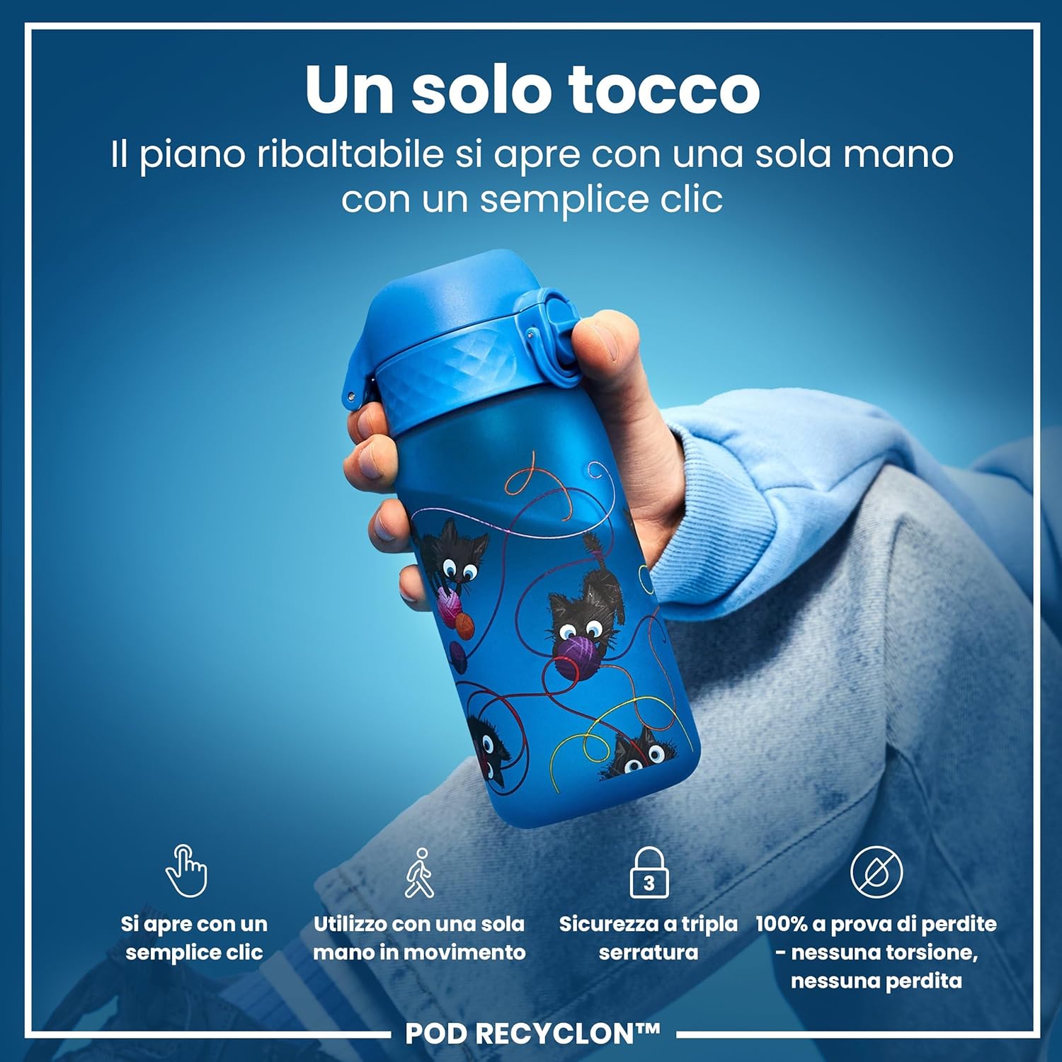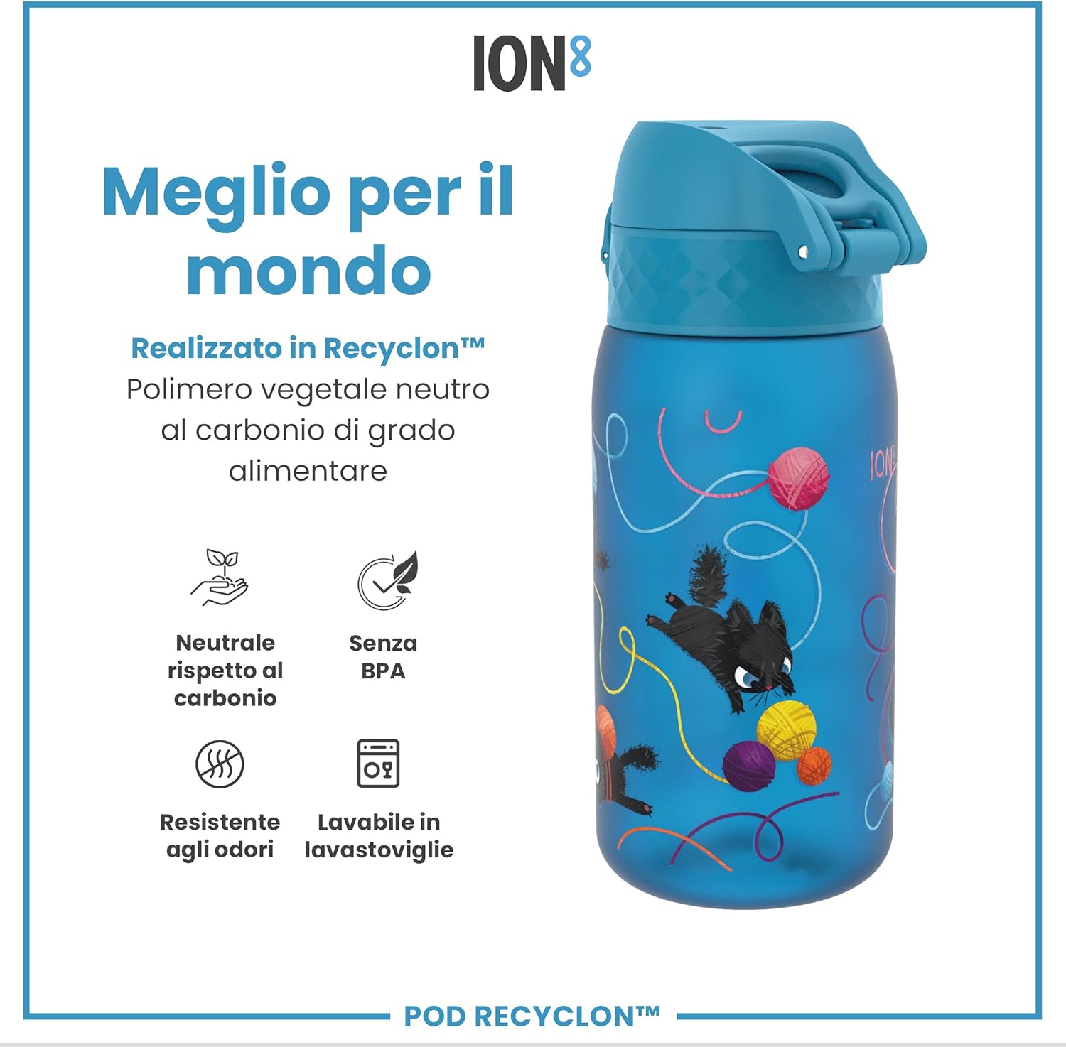 BORRACCE PREMIATE PER BAMBINI – Vincitrice di 3 premi, la borraccia ION8 è perfetta per l’idratazione fuori casa. Senza BPA, con tripla chiusura e design colorati—niente zaini o lunchbox bagnati. RIEMPIMENTO ANCORA PIÙ FACILE – Il tappo flip si apre completamente e resta indietro. L’ampia apertura permette di ricaricare, pulire o aggiungere ghiaccio in un attimo. PER MANI PICCOLE – Pensata per i bambini, è leggera, facile da afferrare e si apre con un clic. Perfetta per insegnare ai più piccoli a fare da soli con sicurezza. ROBUSTA E FACILE DA PULIRE – Lavabile in lavastoviglie, senza parti mobili e resistente agli odori. Perfetta per le avventure e per i genitori sempre in movimento. PRODOTTO A IMPATTO ZERO – Realizzata in Recyclon, una plastica trasparente in parte vegetale e totalmente carbon neutral. Ogni sorso aiuta a proteggere il pianeta.