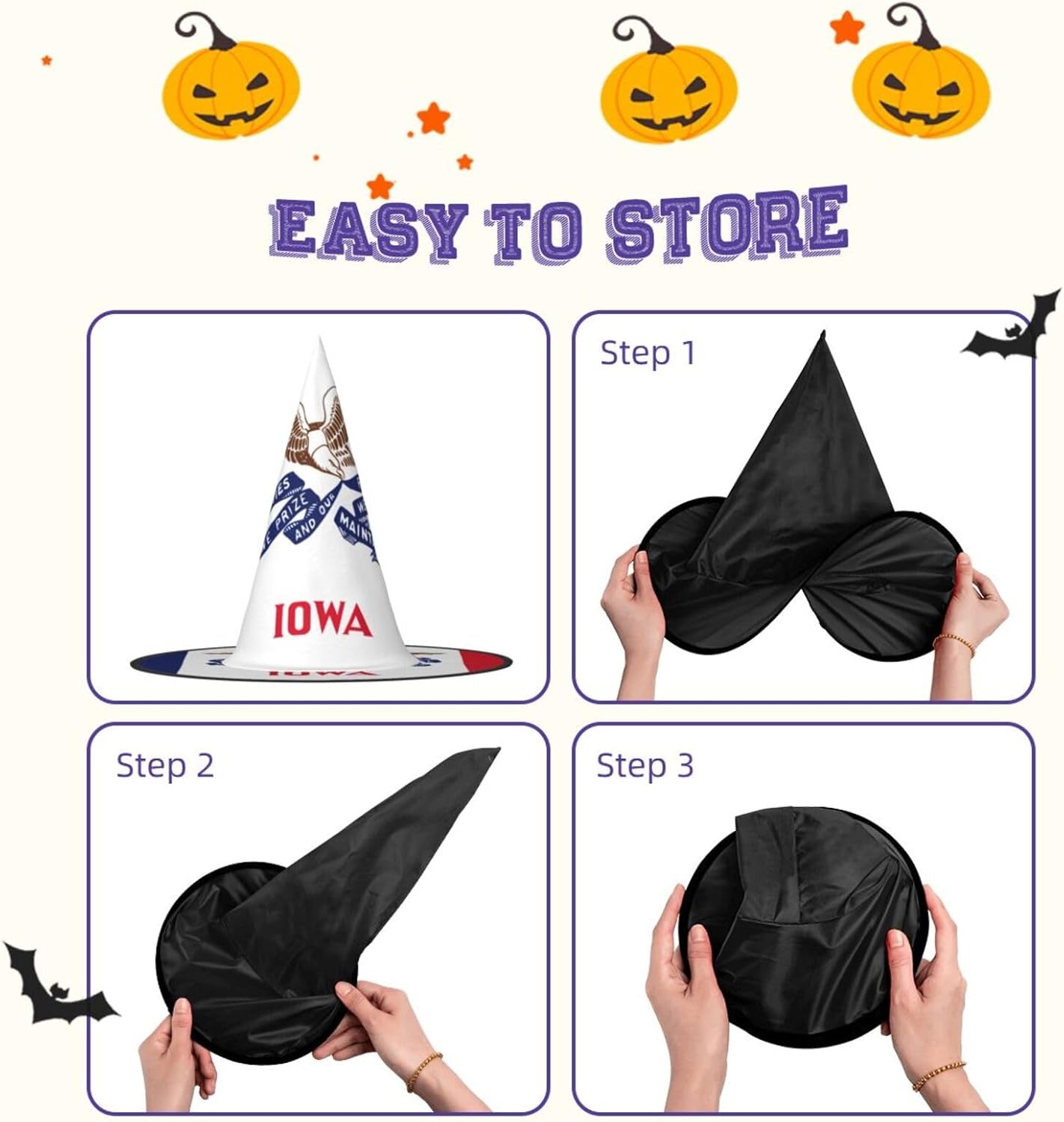 Realizzati in tessuto Oxford superiore, i nostri cappelli con stampa bandiera dello stato dell'Iowa garantiscono durata e longevità. Il design unico consente di ridurre al minimo la parte superiore del cappello e i bordi di essere attorcigliati e piegati, rendendo i cappelli salvaspazio e facilmente portatili. Ogni cappello con stampa bandiera dello stato dell'Iowa è di dimensioni generose per adattarsi alla maggior parte delle persone ed è leggero per un uso confortevole. Si prega di leggere la tabella delle taglie prima di effettuare l'ordine. Il design versatile dei nostri cappelli da strega di Halloween con stampa bandiera dello stato dell'Iowa li rende perfetti per varie occasioni. Sono lavabili in lavatrice e ad asciugatura rapida per una facile manutenzione.