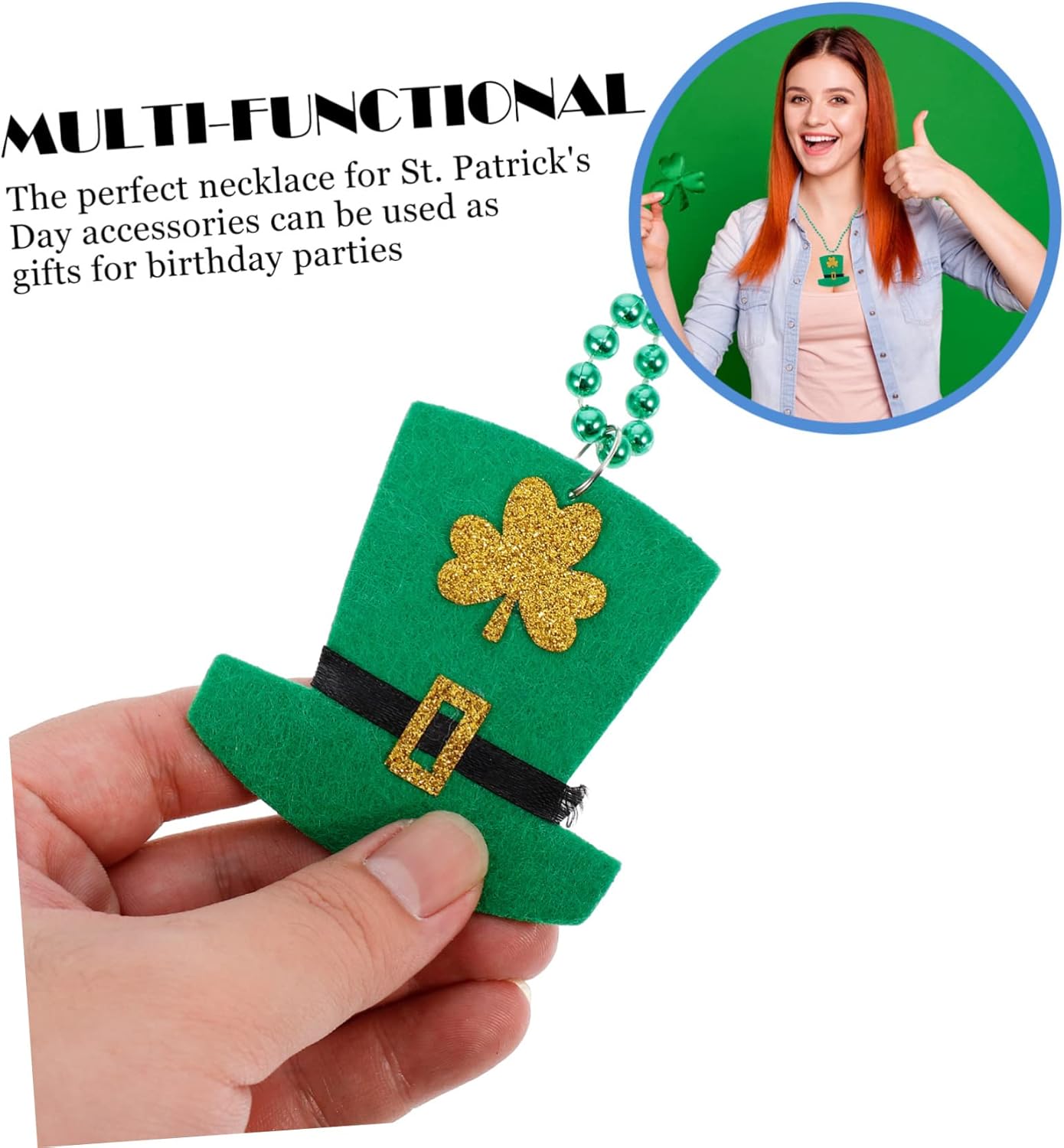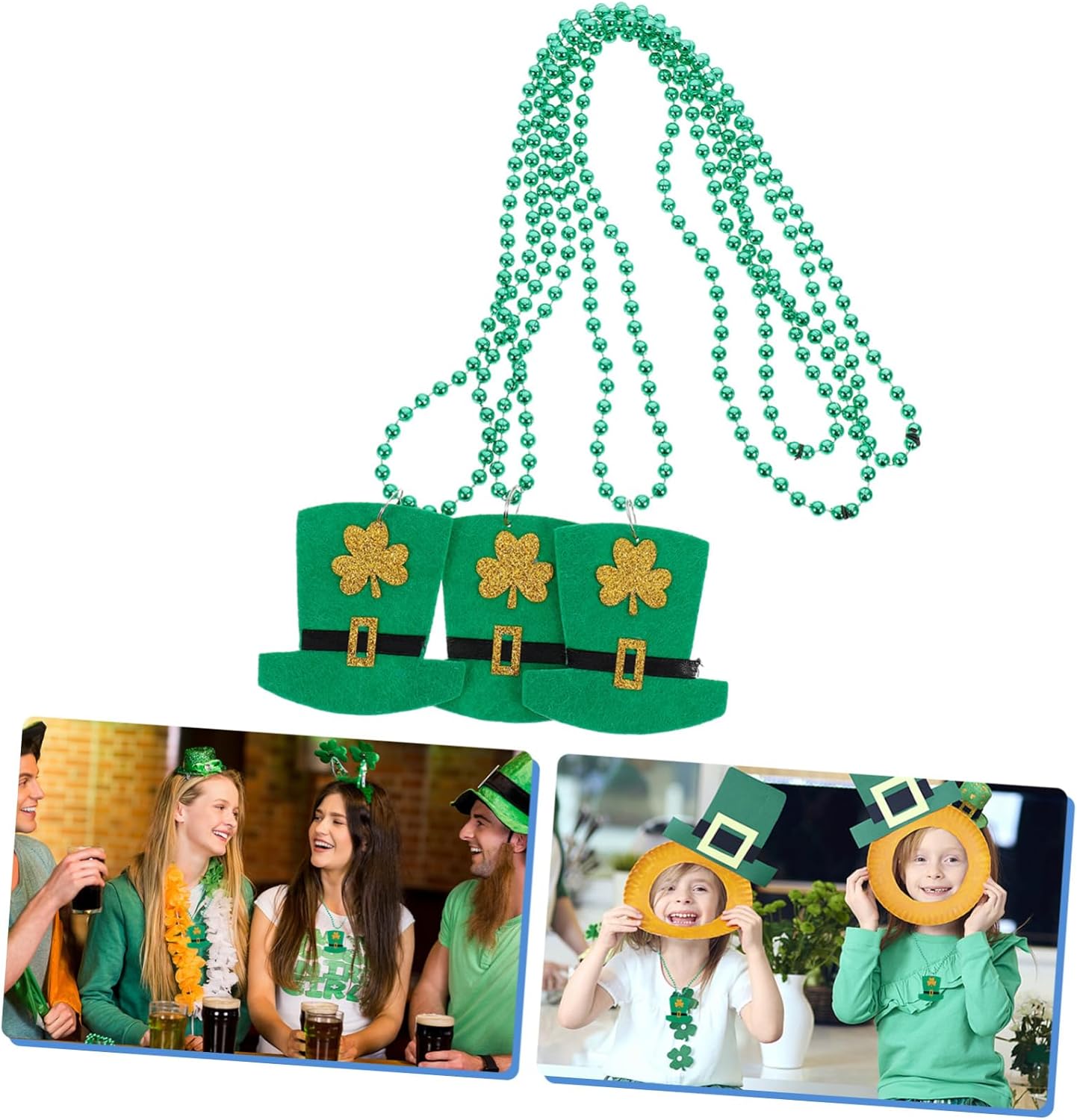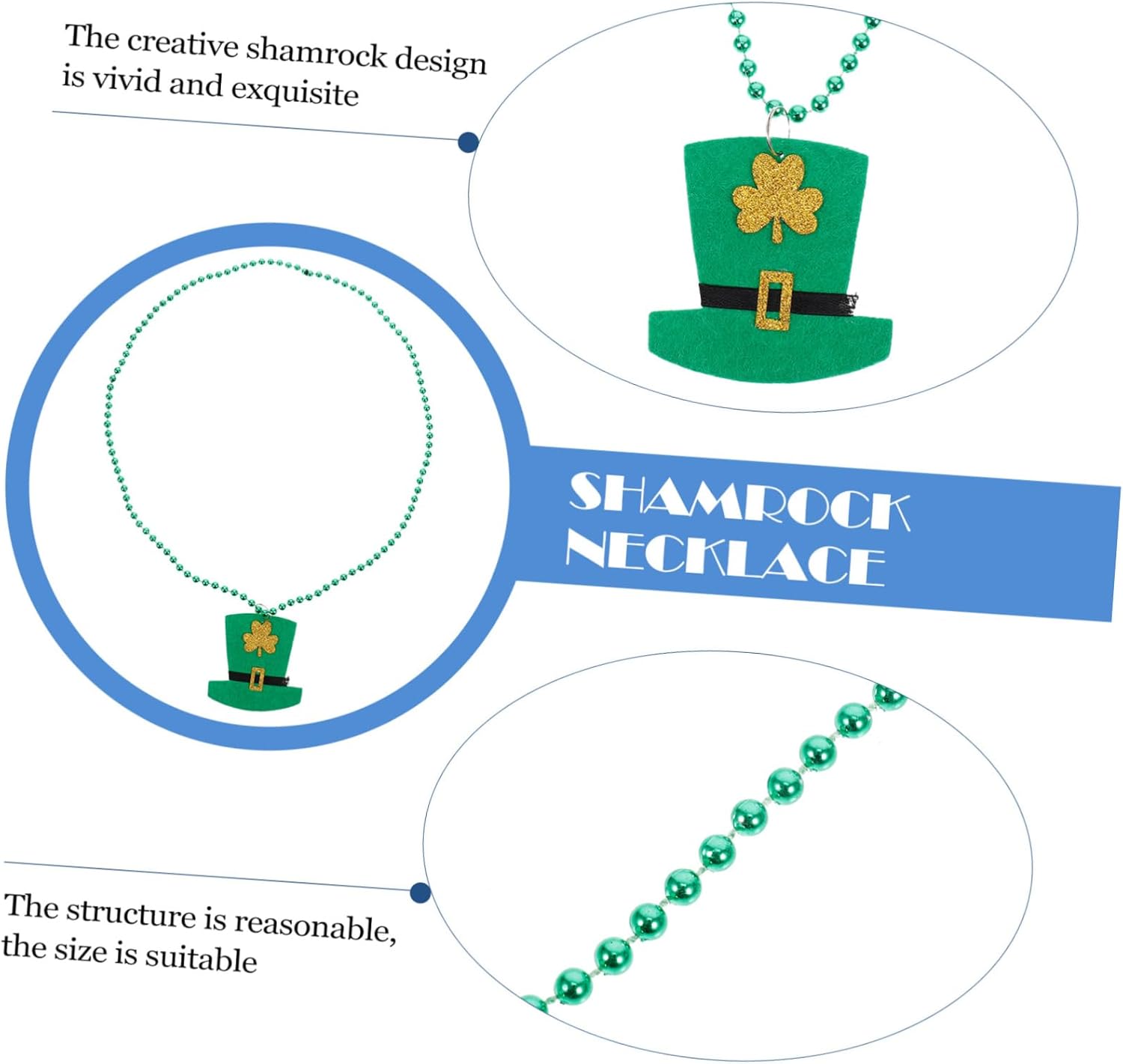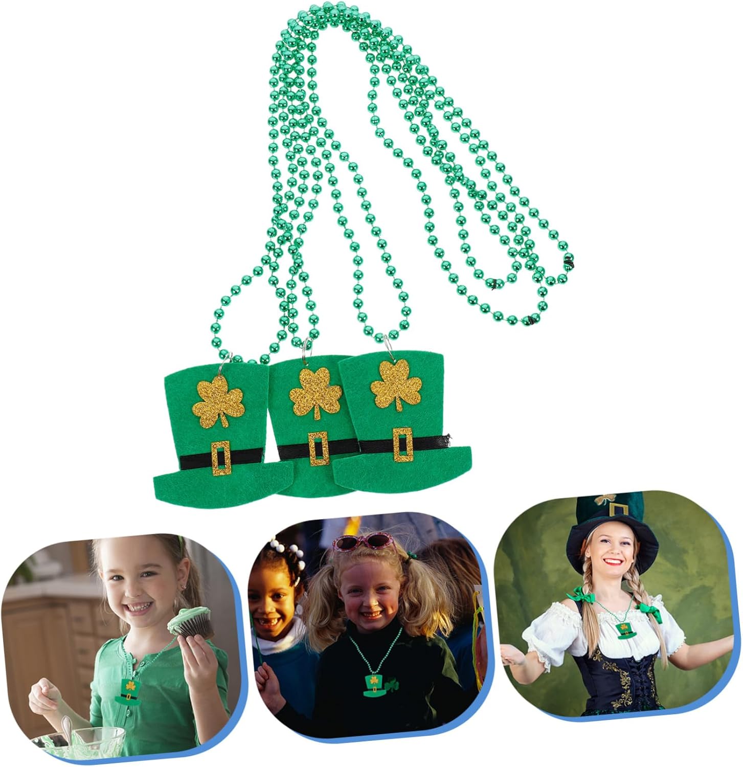 dei pacchetti 3 x Collane Caratteristiche -Dimensioni: circa 47,00X6,80X0,50 cm/18,47X2,67X0,20 pollici Decorazione del collo. -Materiale: collana creativa in plastica per festival. -Colore: Collana con perle rotonde verdi. -Utilizza questa esclusiva collana a tema festa per immergerti nell'atmosfera festosa del ciondolo con perline per il di San Patrizio. -La collana è a tema verde e trifoglio, perfetta per la collana decorativa del di San Patrizio. -Il design della collana Shamrock è interessante e - , . Collana con trifoglio per la festa di San Patrizio. -Questa collana è facile da indossare, leggera, delicata e comoda e sarà la tua scelta ideale come gioiello decorativo per le feste. -Può essere utilizzato come accessorio per costumi o per le feste di San Patrizio, ed è uno strumento indispensabile per la tua collana a forma di trifoglio. Informazioni sulle merci Collana con perline a forma di trifoglio Questa è una collana con perline a forma di trifoglio, realizzata in materiale plastico leggero e delicato e ti offre un'esperienza di decorazione migliore. Decorazione del collo realizzata artigianalmente, è lucida, liscia e può aggiungere il tuo fascino. Decorazione del festival, per il di San Patrizio. Collana per il di San Patrizio per te